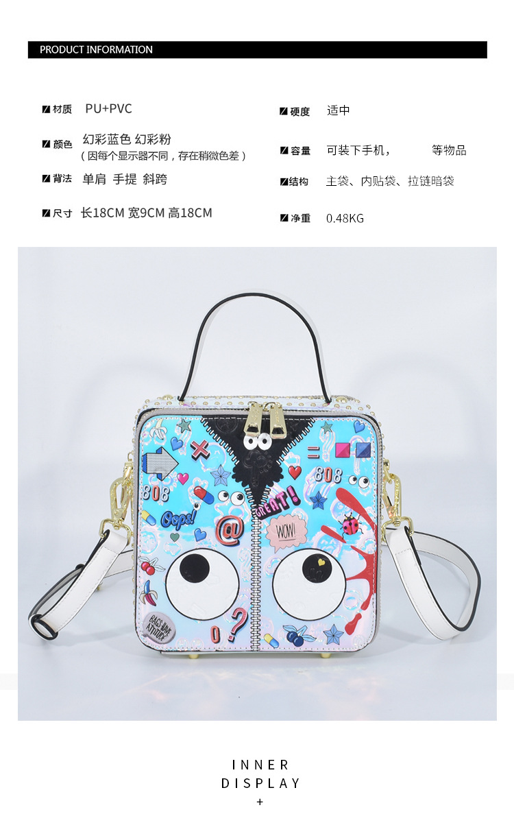 다채로운 특수 소재 레이저 여성용 작은 사각형 가방 지퍼 휴대용 크로스 바디 백 인쇄 양각 귀여운 트렌디 한 가방