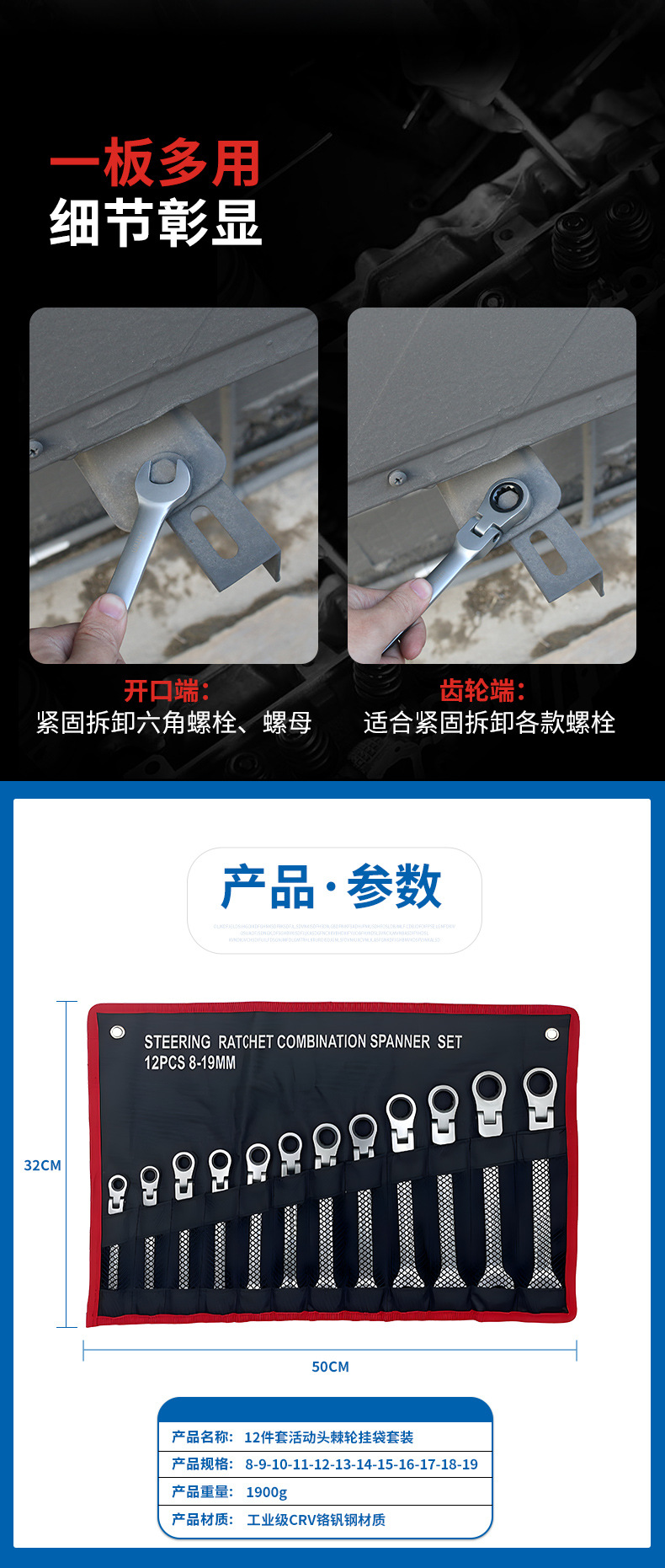 범용 조절 래칫 렌치 12 종 세트 CRV 콤비네이션 세트 스트레이트 핸들 흔들기 헤드 오픈 링 렌치
