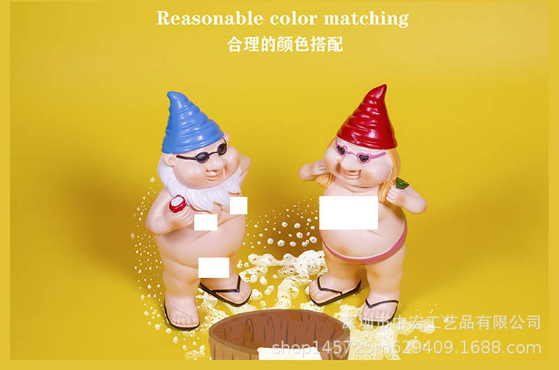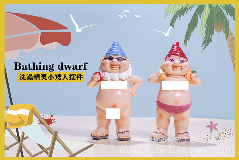 국경 간 난쟁이 입욕 난쟁이 수지 공예 장식품 유럽식 노인과 여성 장식 재미있는 모양