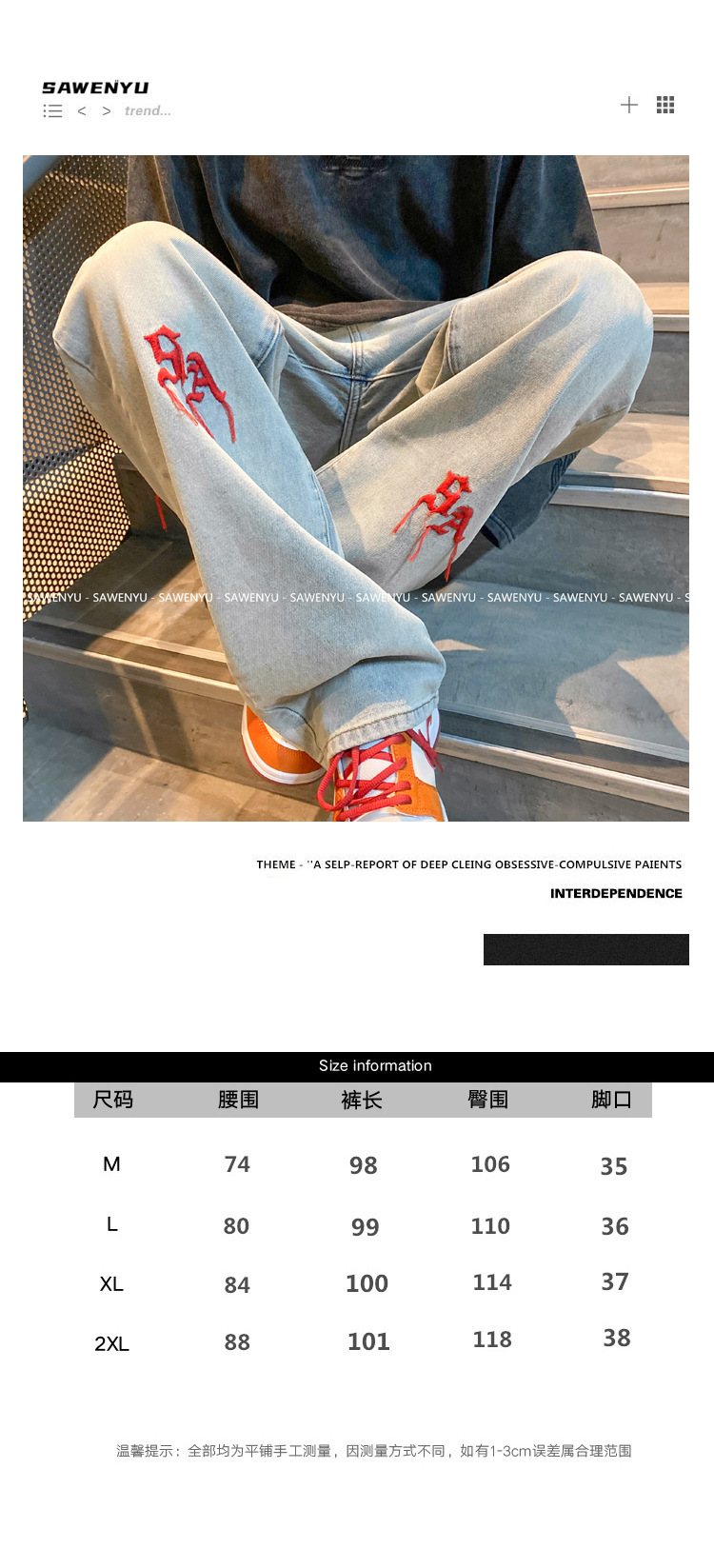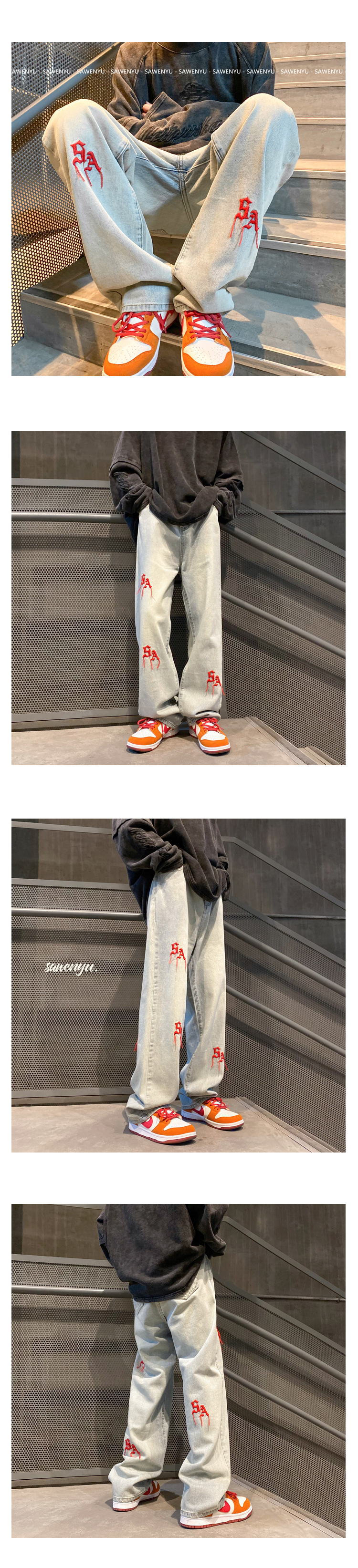 라이트 자수 청바지 남성용 스트레이트 하이 레벨 디자인 센스 틈새 분위기 스타일 조수 브랜드의 내셔널 타이드 하이 스트리트 팬츠스토어 가기
