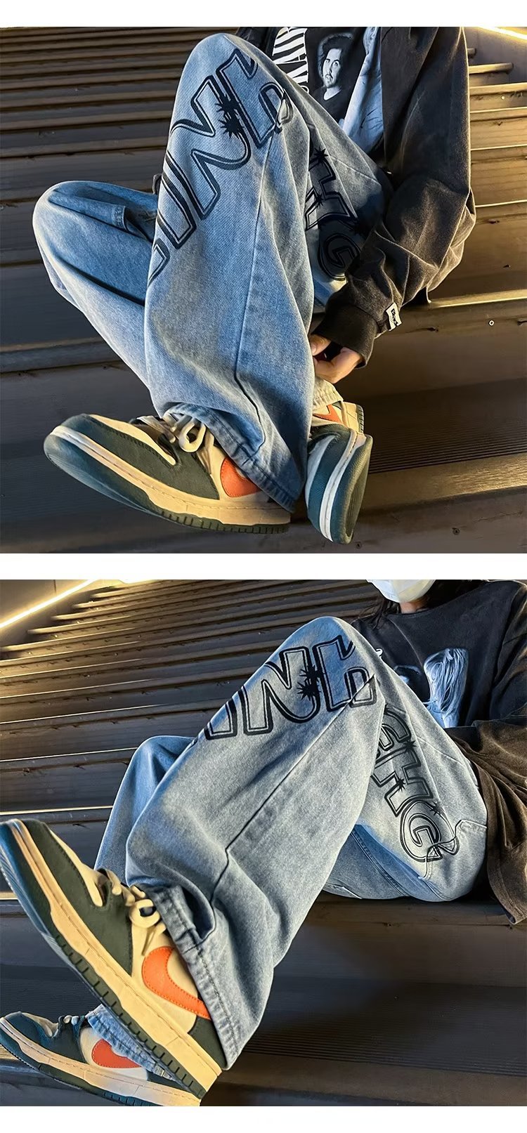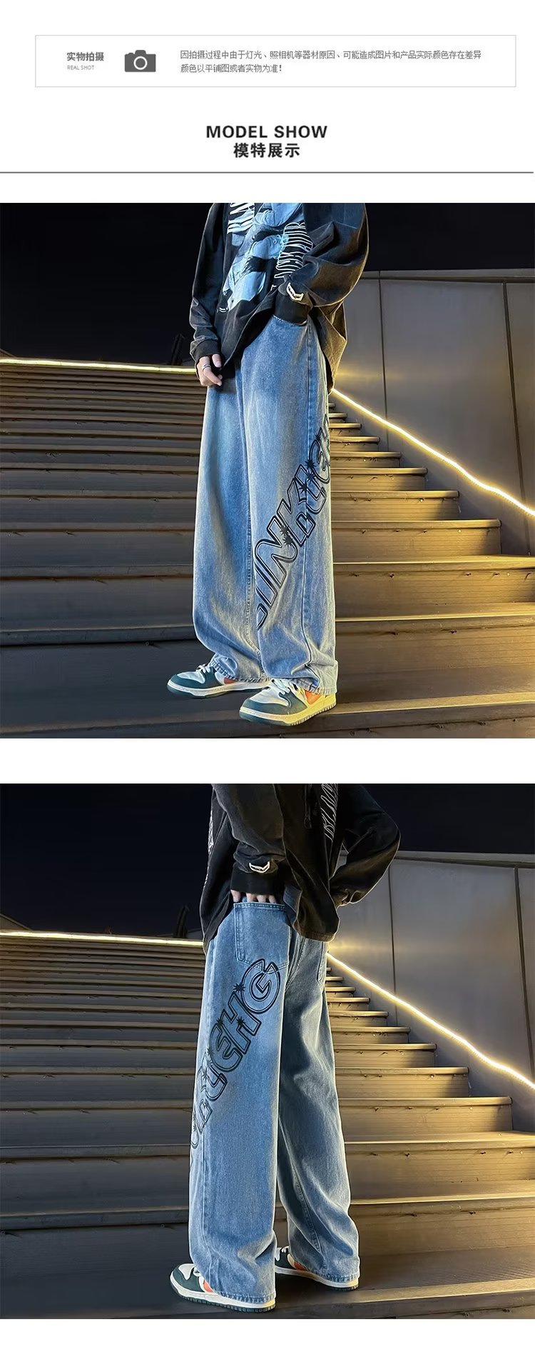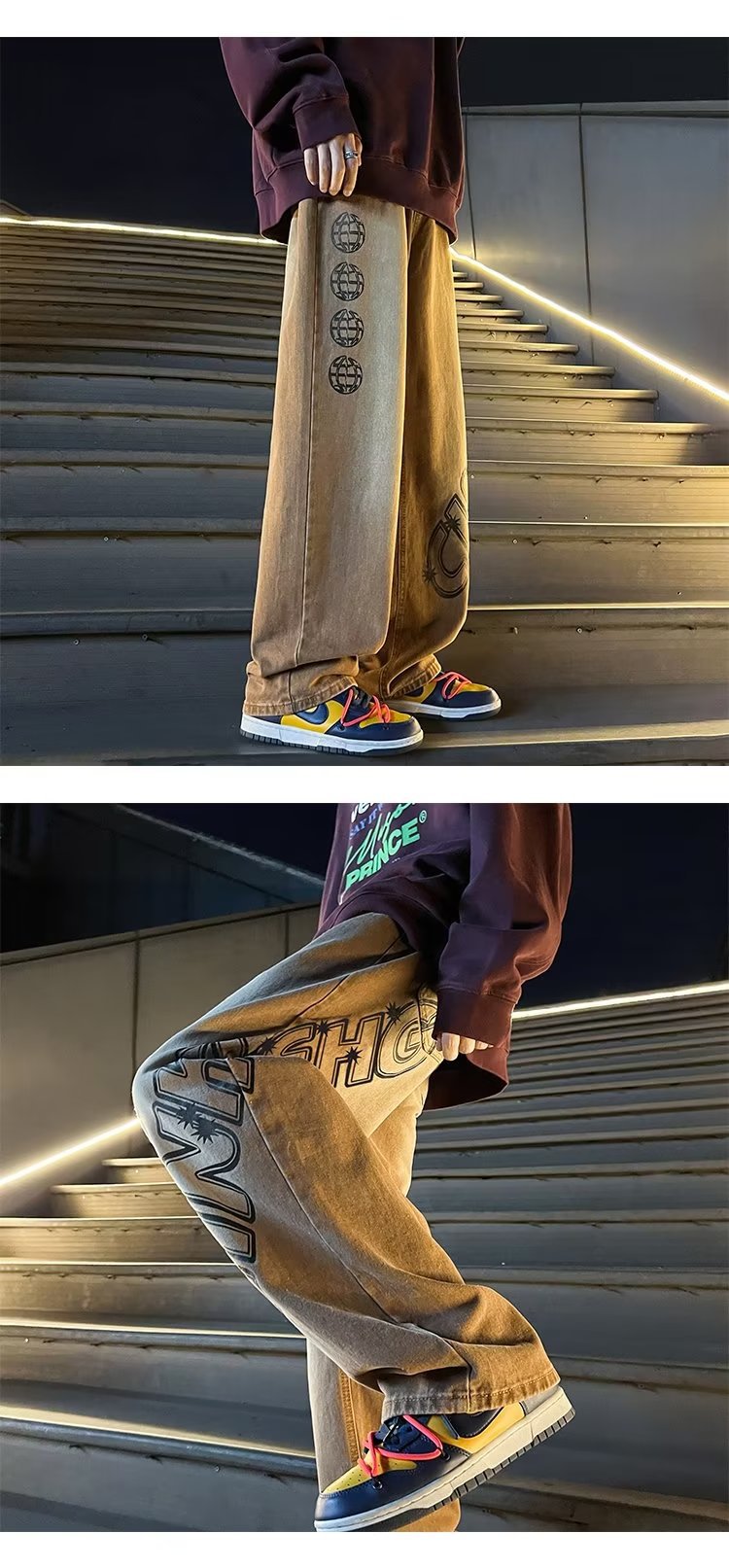 유럽 아메리칸 스타일 하이 스트리트 분위기 청바지 남자의 가을과 겨울 스트레이트 느슨한 워싱 빈티지 롱 캐주얼 바지