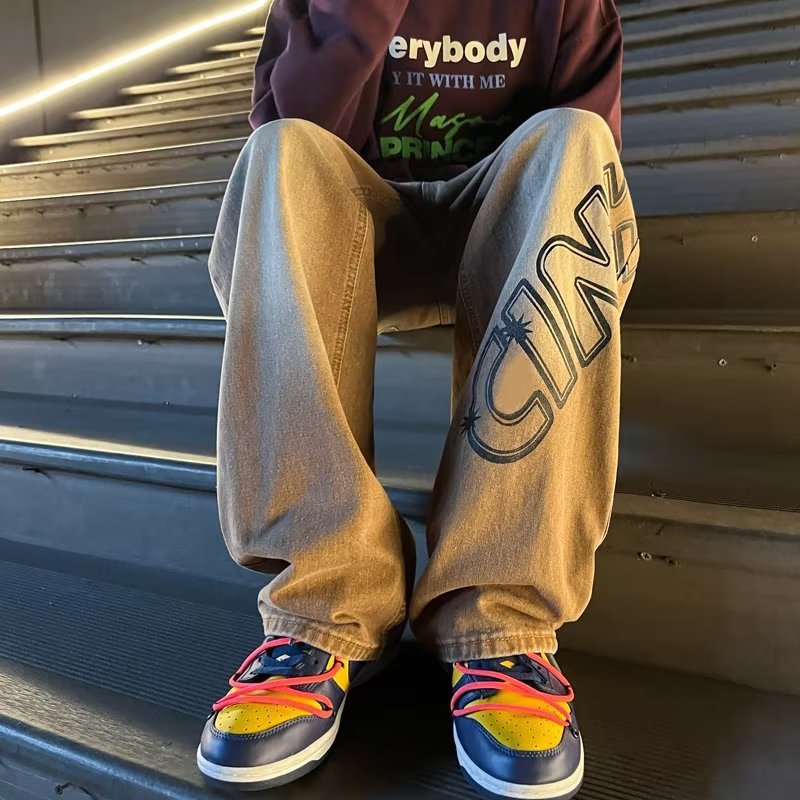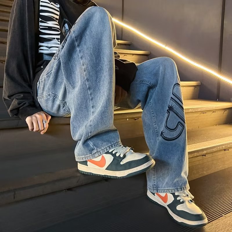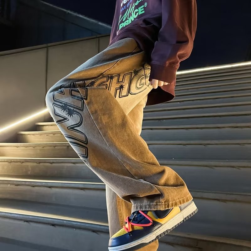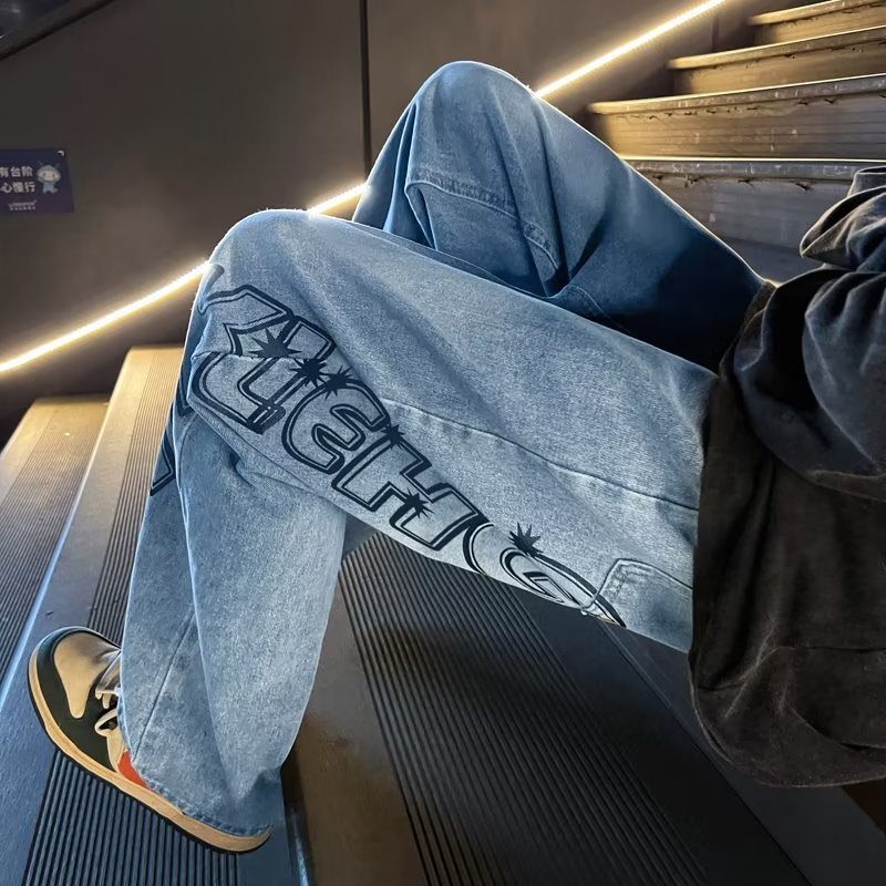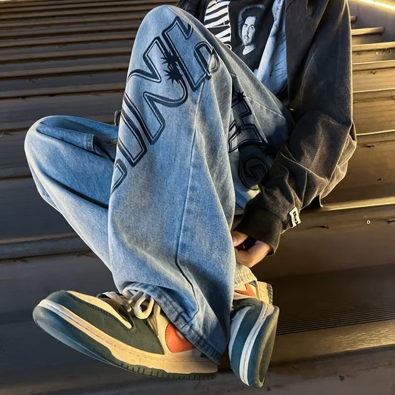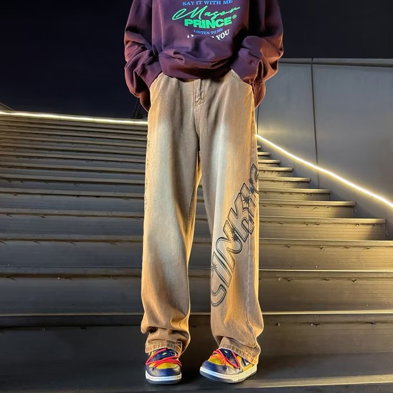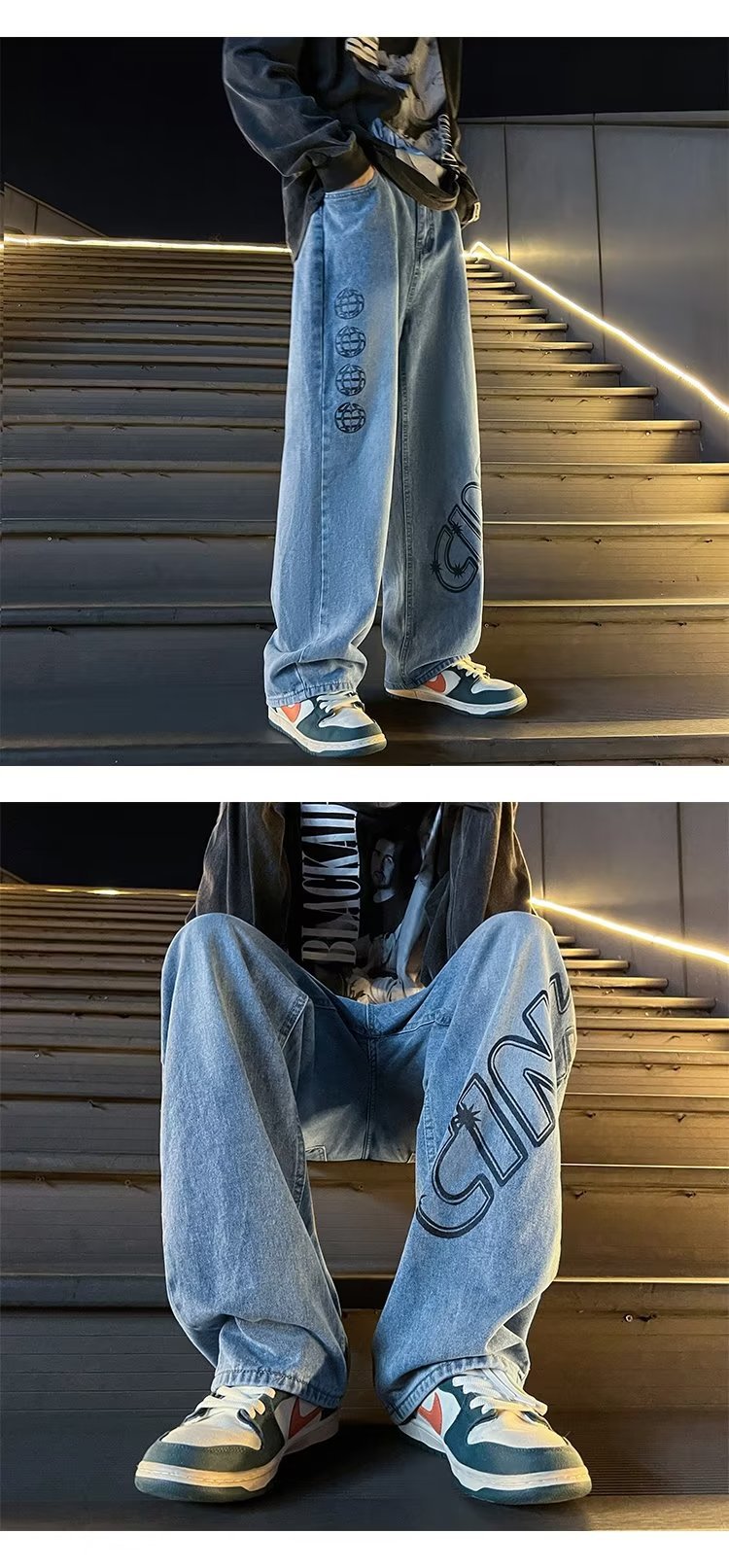 유럽 아메리칸 스타일 하이 스트리트 분위기 청바지 남자의 가을과 겨울 스트레이트 느슨한 워싱 빈티지 롱 캐주얼 바지