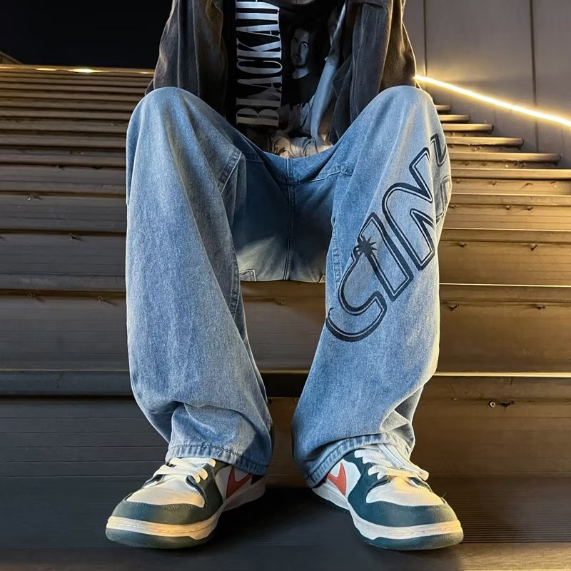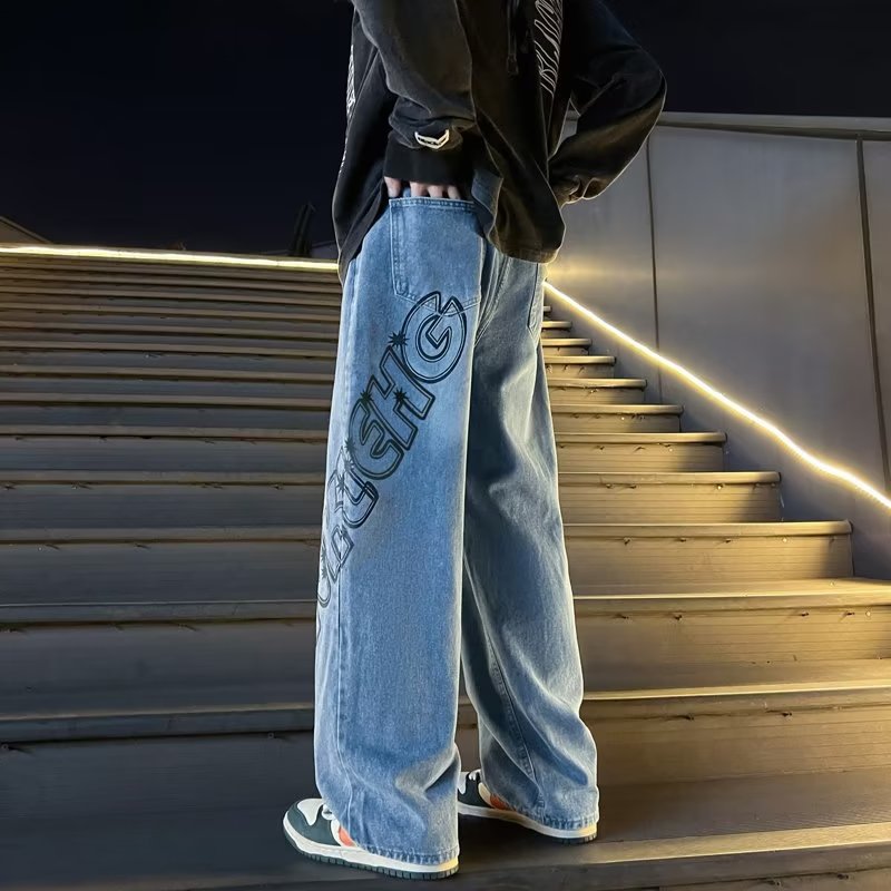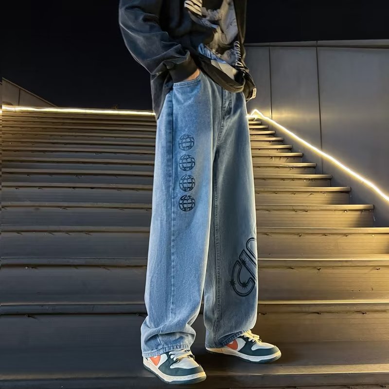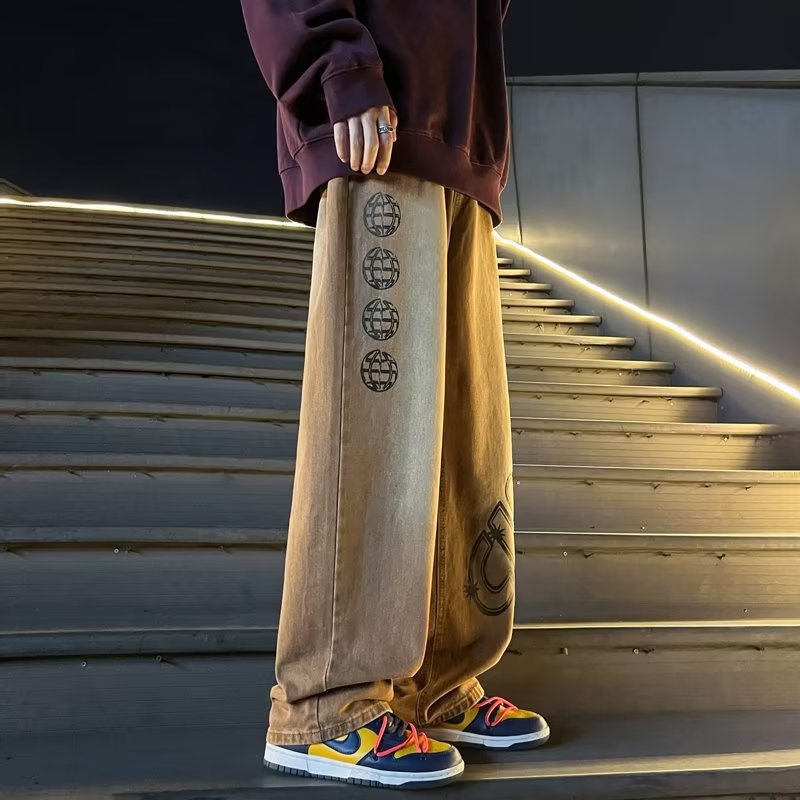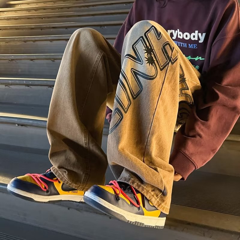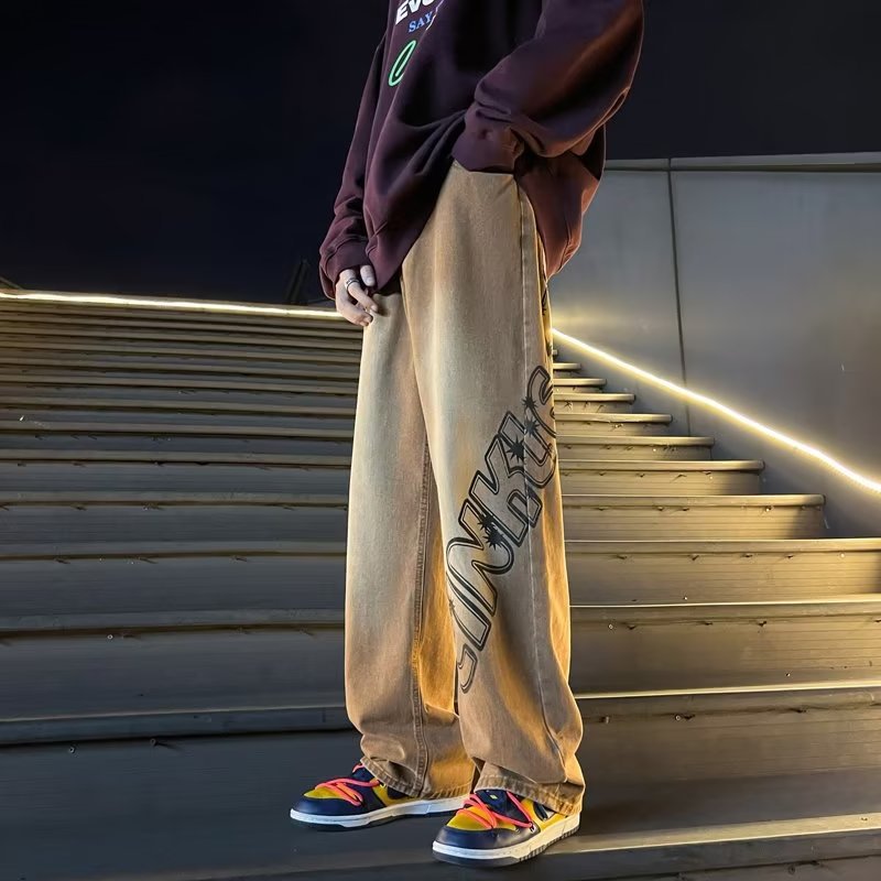 유럽 아메리칸 스타일 하이 스트리트 분위기 청바지 남자의 가을과 겨울 스트레이트 느슨한 워싱 빈티지 롱 캐주얼 바지