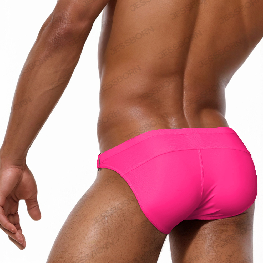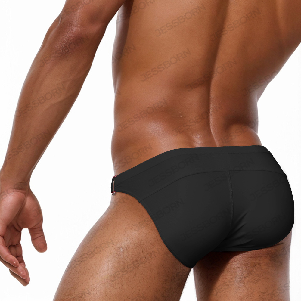 JESSBORN 남성용 더블 링 삼각형 수영 트렁크 패션 섹시한 낮은 벨트 컵 당황 방지 수영 폭발 수영 트렁크