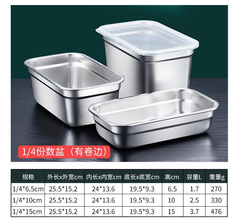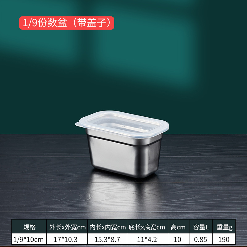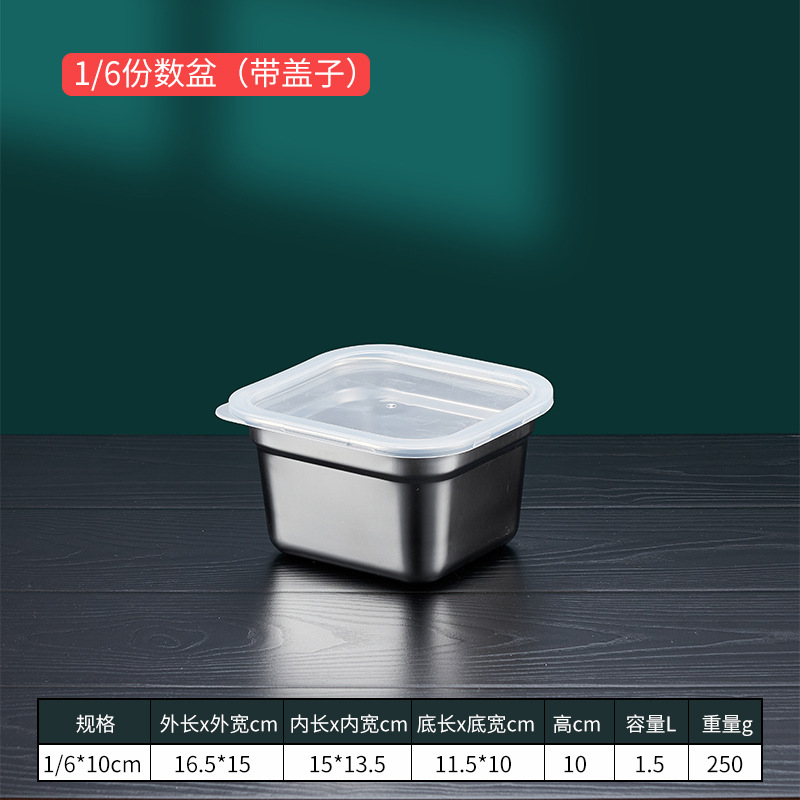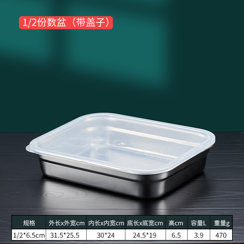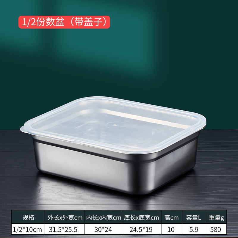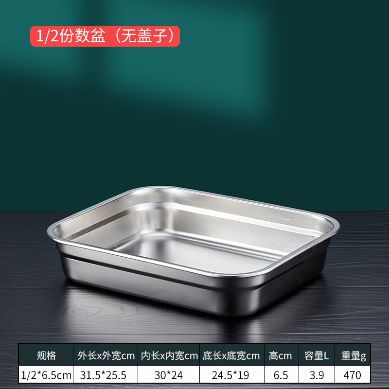 304 스테인레스 사각 대야 직사각형 사각 접시 뷔페 부분 대야 깊은 트레이 패스트 푸드 대야 뚜껑 사각 상자스토어 가기