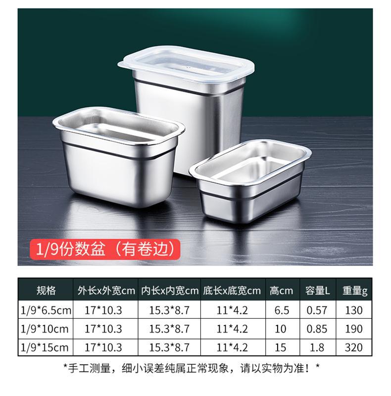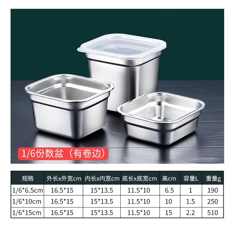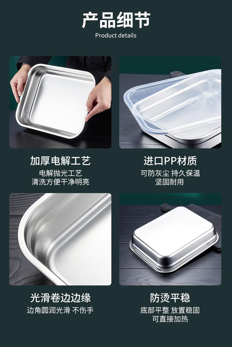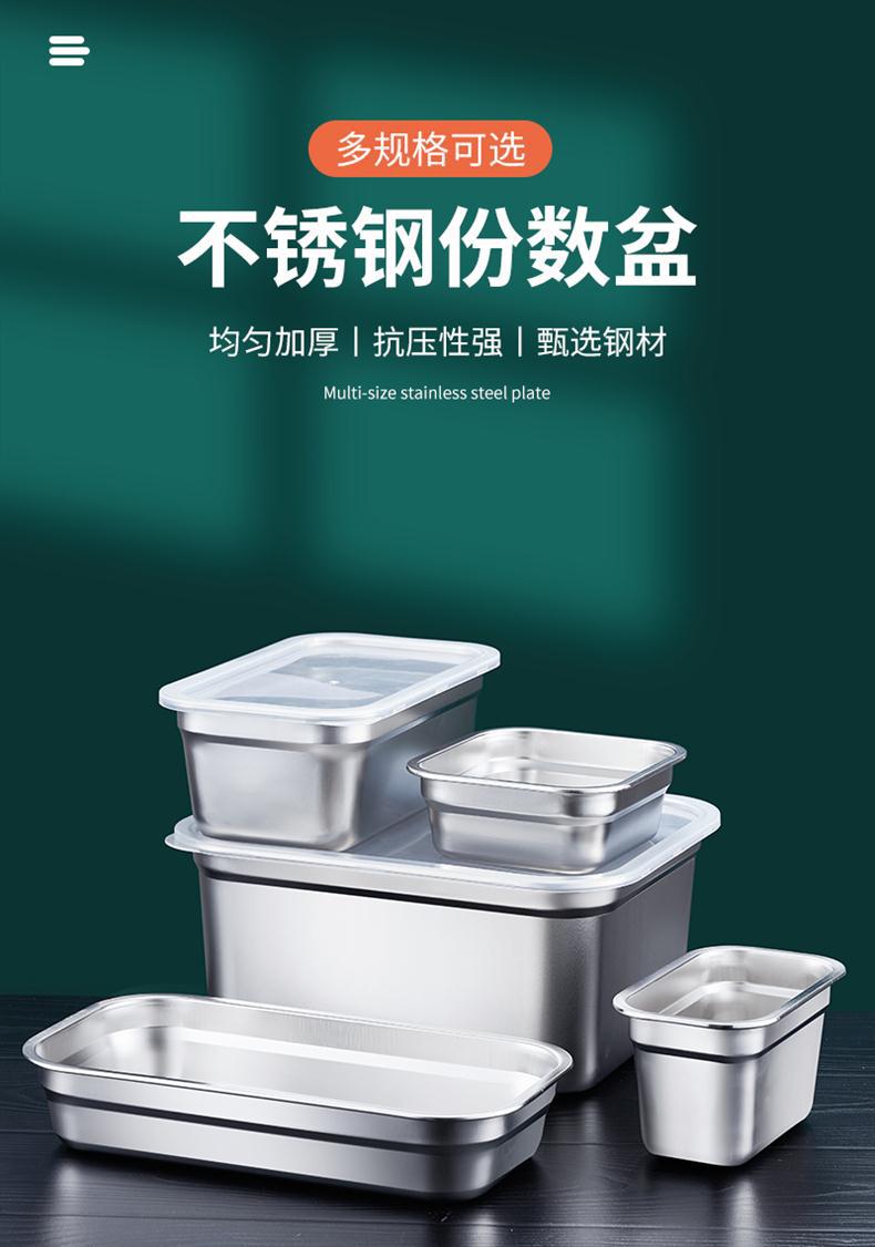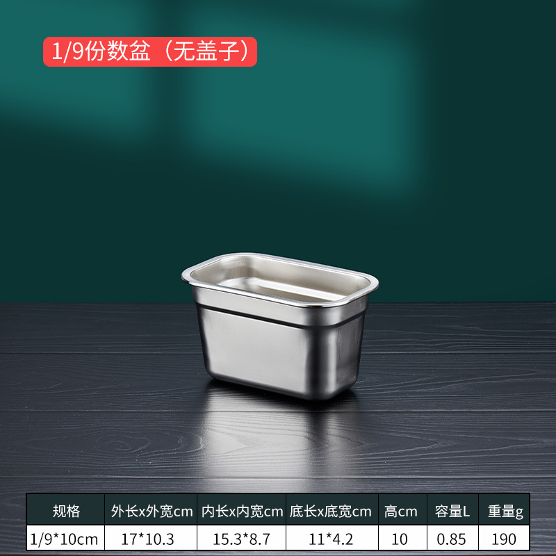 304 스테인레스 사각 대야 직사각형 사각 접시 뷔페 부분 대야 깊은 트레이 패스트 푸드 대야 뚜껑 사각 상자스토어 가기