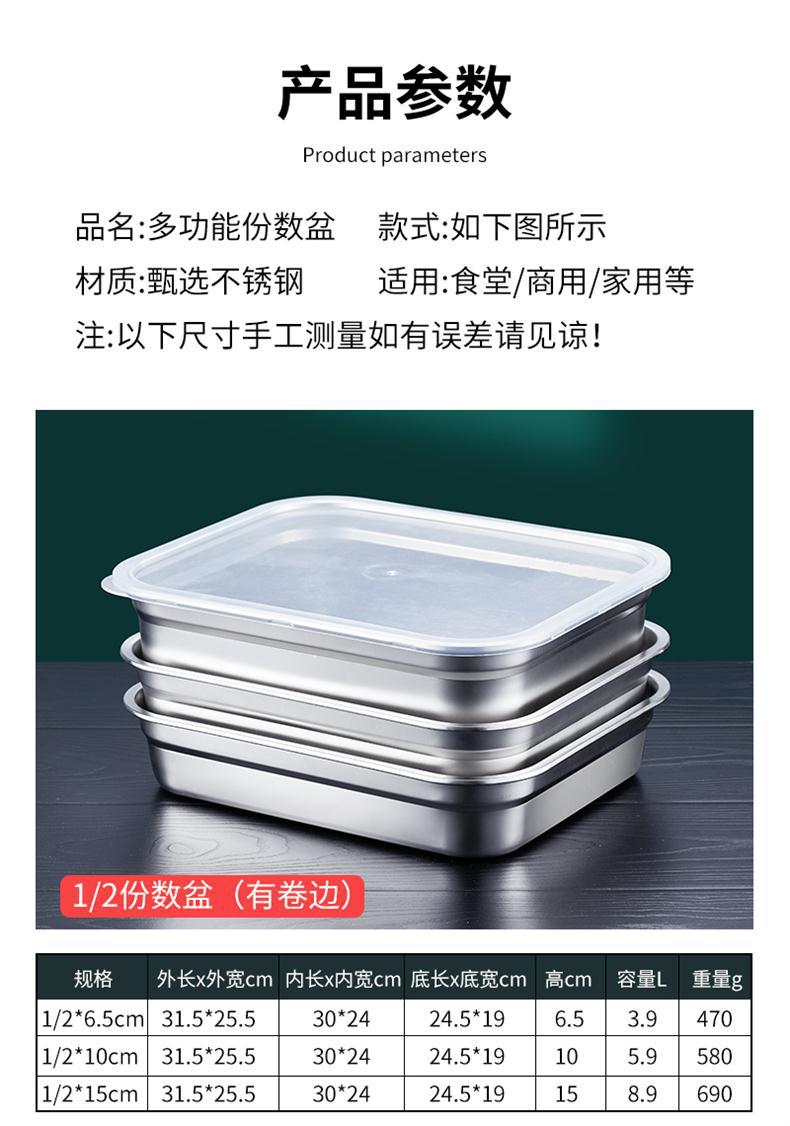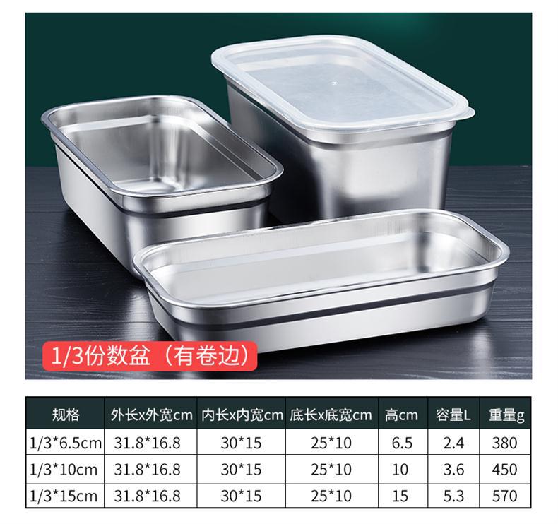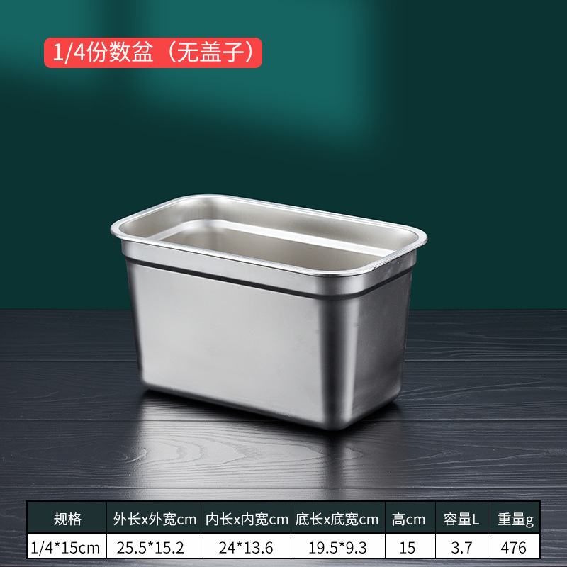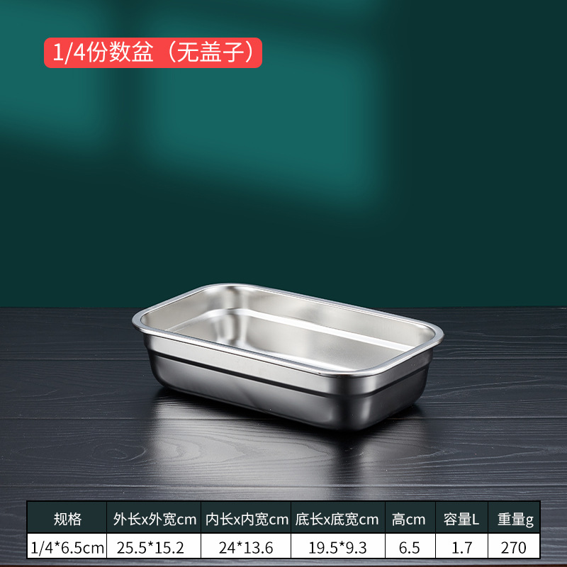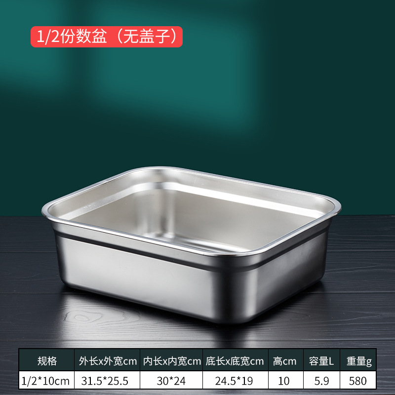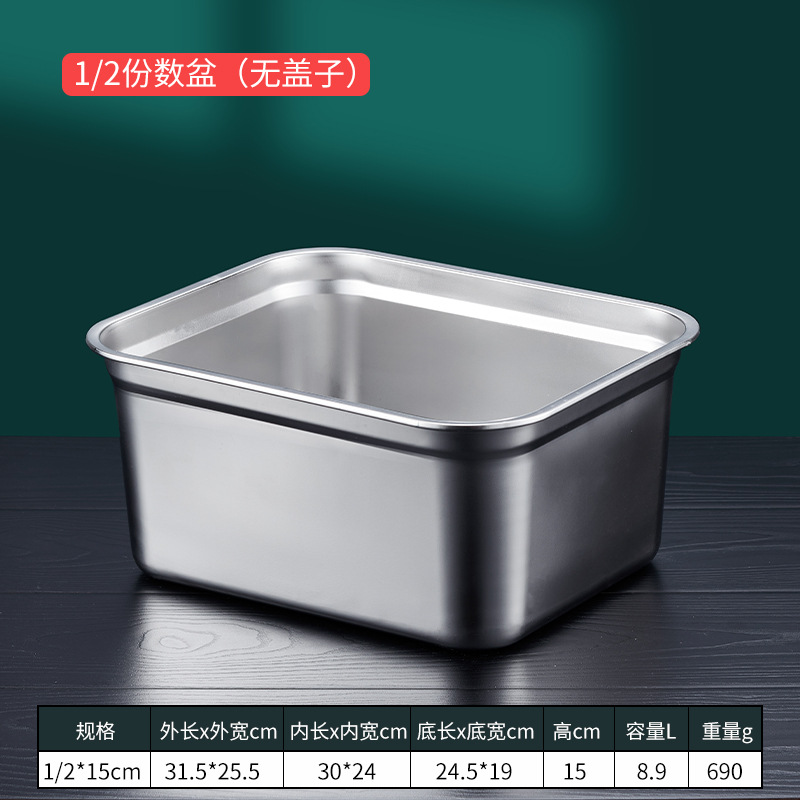 304 스테인레스 사각 대야 직사각형 사각 접시 뷔페 부분 대야 깊은 트레이 패스트 푸드 대야 뚜껑 사각 상자