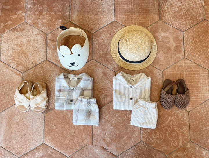 아기 소년 소녀 스포츠 레저 여름 모든 경기 멋진 통기성 세트 새로운 격자 무늬 세로 스트립스토어 가기