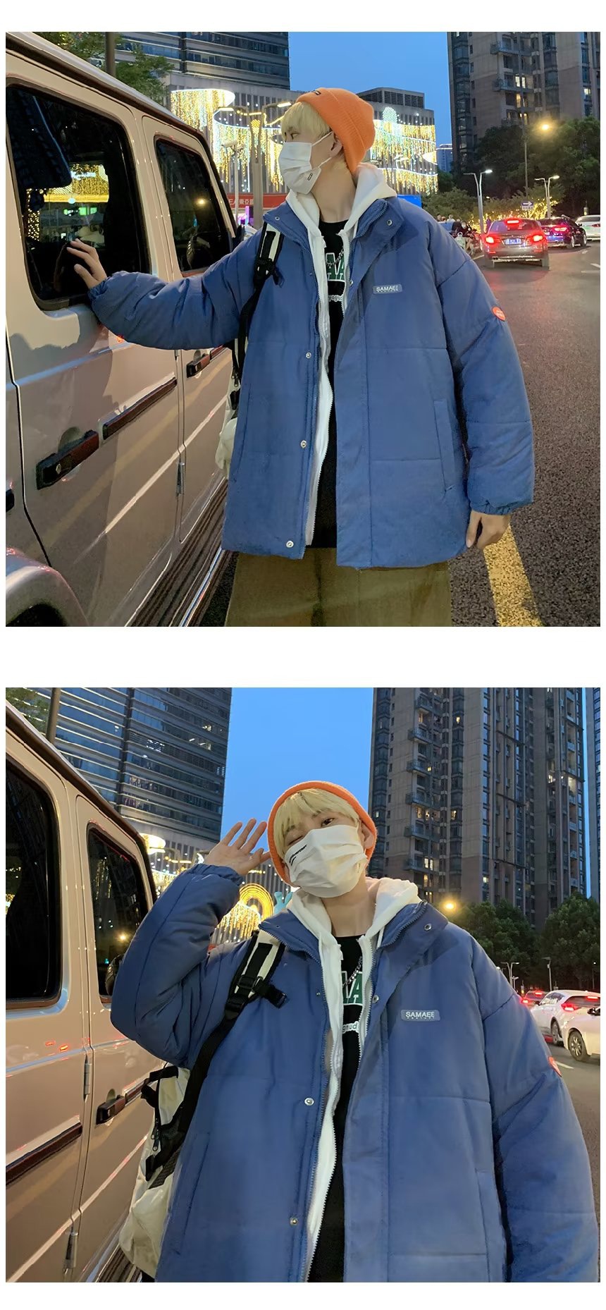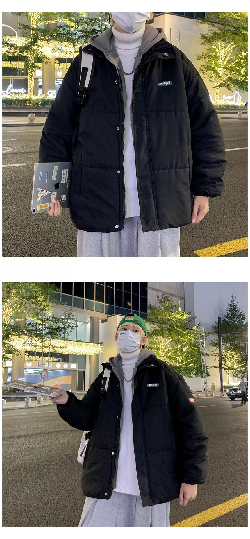 冬装热销款假两件情侣羽绒服韩版ins潮学生外套宽松加厚面包服男