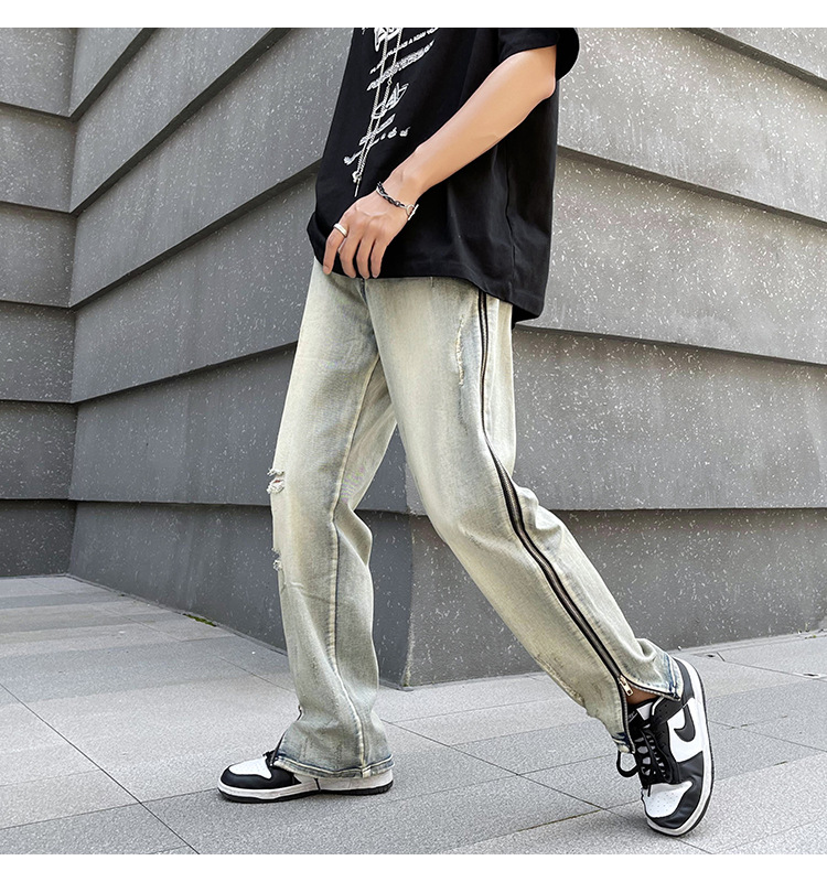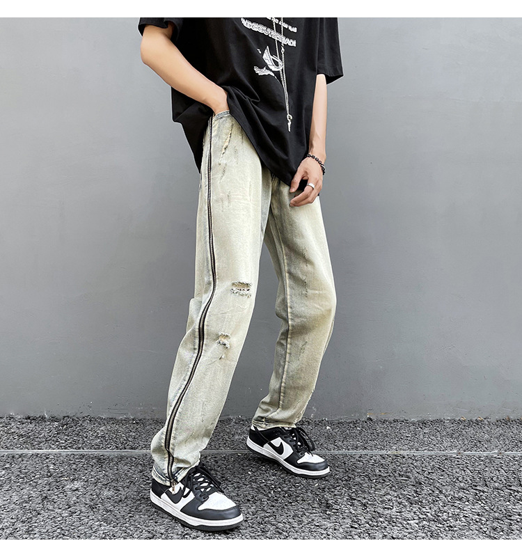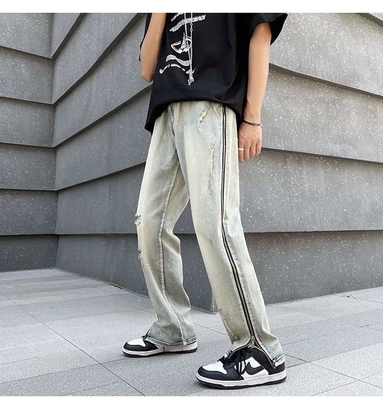 사이드 지퍼 스플릿 청바지 바지 남성용 트렌디 브랜드 Plumpkin 잘생긴 여름 바지 하이 스트리트 인 트렌디 모든 매치 스트레이트 팬츠스토어 가기