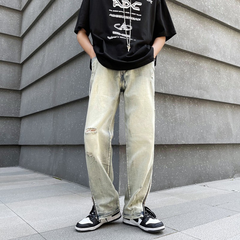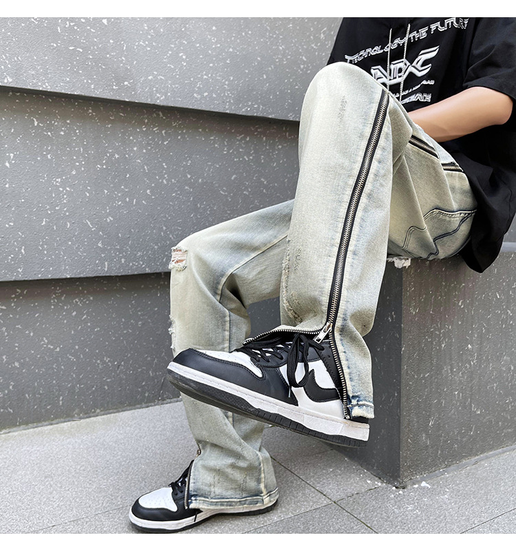 사이드 지퍼 스플릿 청바지 바지 남성용 트렌디 브랜드 Plumpkin 잘생긴 여름 바지 하이 스트리트 인 트렌디 모든 매치 스트레이트 팬츠