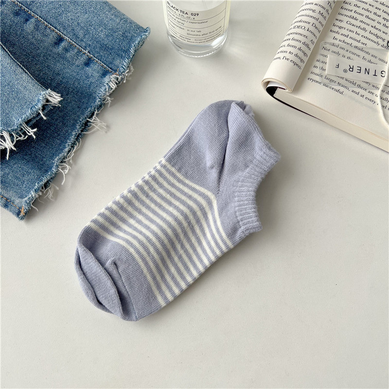 양말 여성용 봄과 여름 핀 스트라이프 보트 양말 일본 마카롱 면 양말 만능 크림 얕은 양말