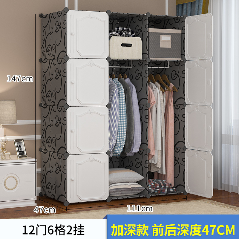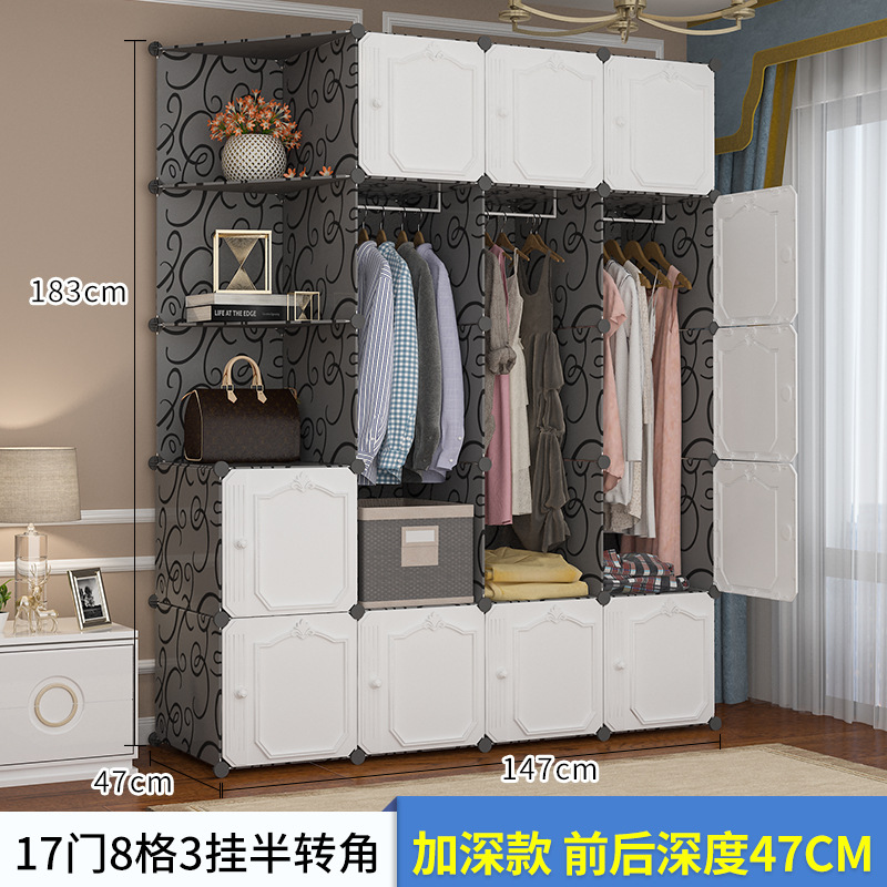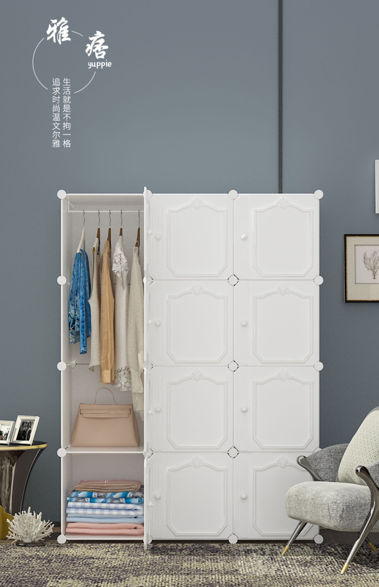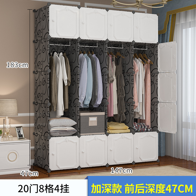 간단한 옷장 현대 간단한 천 조립 플라스틱 보관 보관 캐비닛 가정용 침실 옷장 교수형 임대 룸
