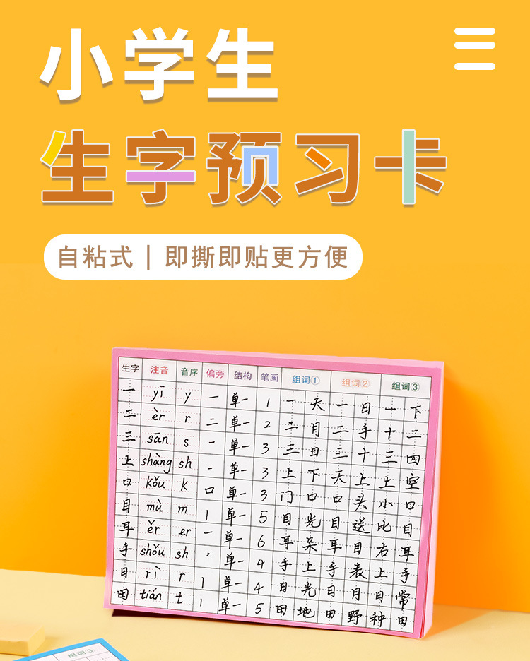 새 단어 미리보기 카드 중국어 자체 접착 초등학교 학생 1 권 2 권 새 단어 표 단어 그룹 단어 수업 전 새 단어 카드