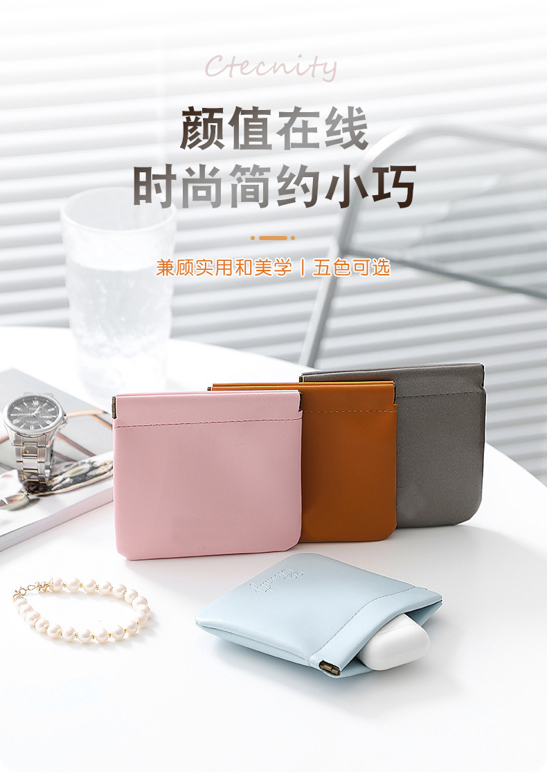 Ins 슈퍼 핫 휴대용 가죽 미니 화장품 가방 작은 립스틱 가방 에어 쿠션 보관 가방 airpod 헤드폰 가방 잡화