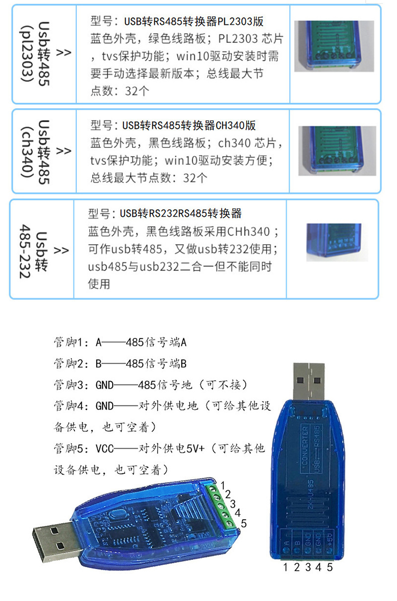 • USB에서 RS485(CH340 칩)