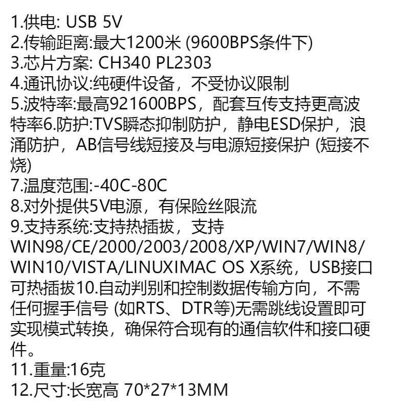 • USB에서 RS232 RS485(CH340 칩)