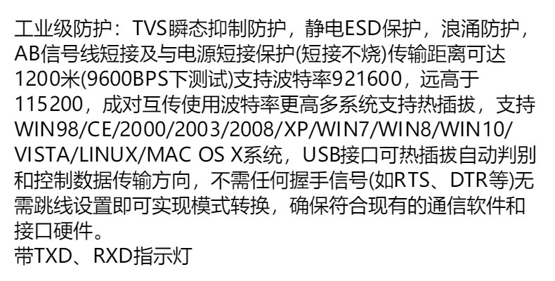 USB에서 RS485 통신 모드 양방향 블록 변환기 반이중 직렬 회선 산업 보호스토어 가기