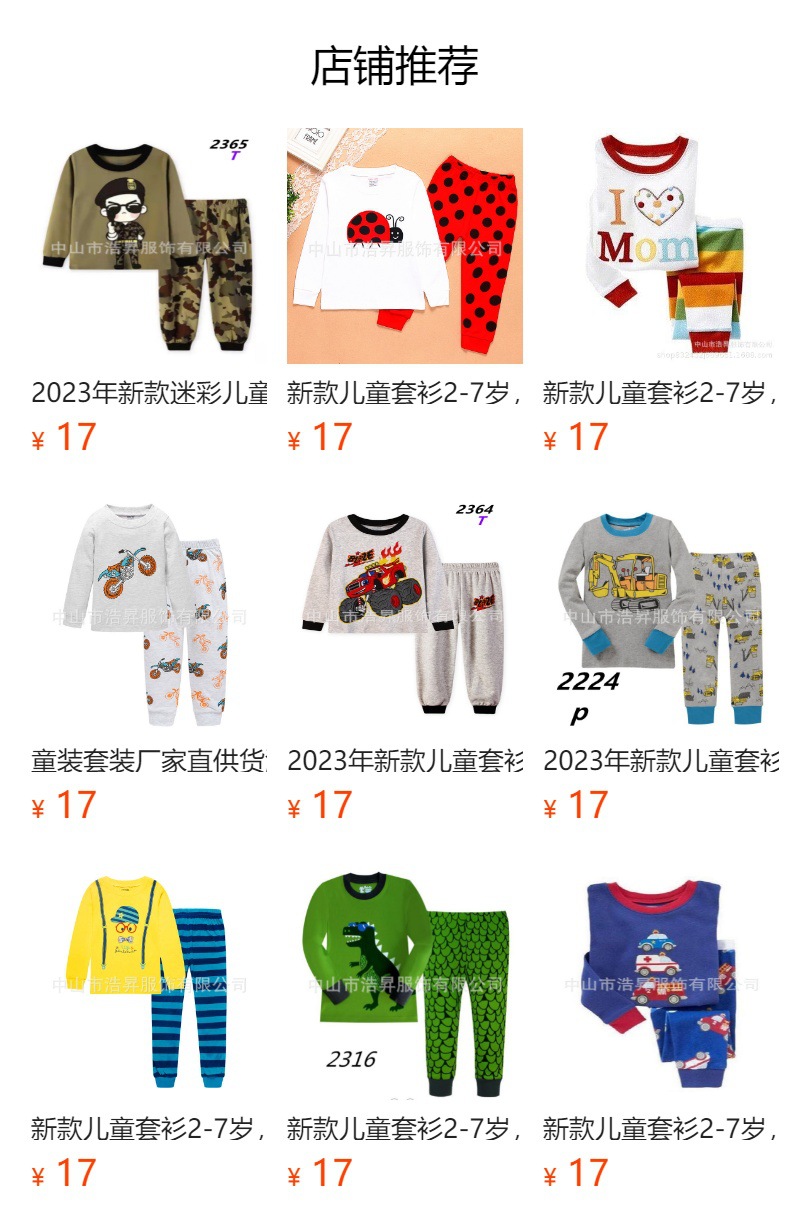 2023 새로운 아동 세트 공장 직공급 남성 및 여성 아동 의류 세트 아동 가정 의류 2-7 세스토어 가기