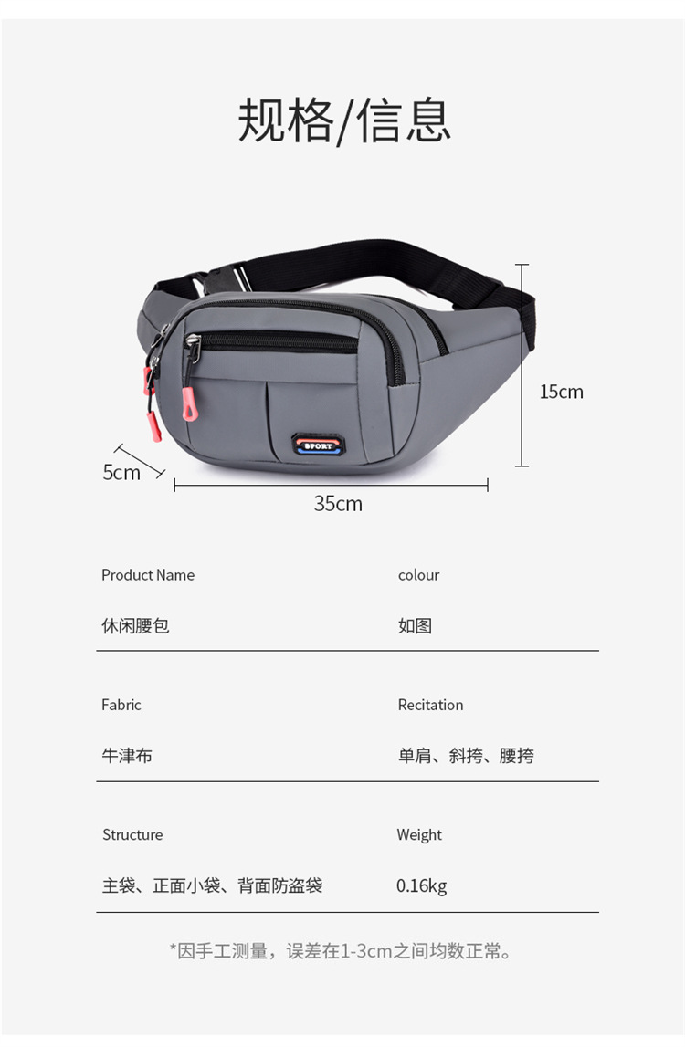 새로운 국경 간 달리기 남성 및 여성용 허리 가방 대용량 방수 및 내마모성 8inch 레저 여행스토어 가기