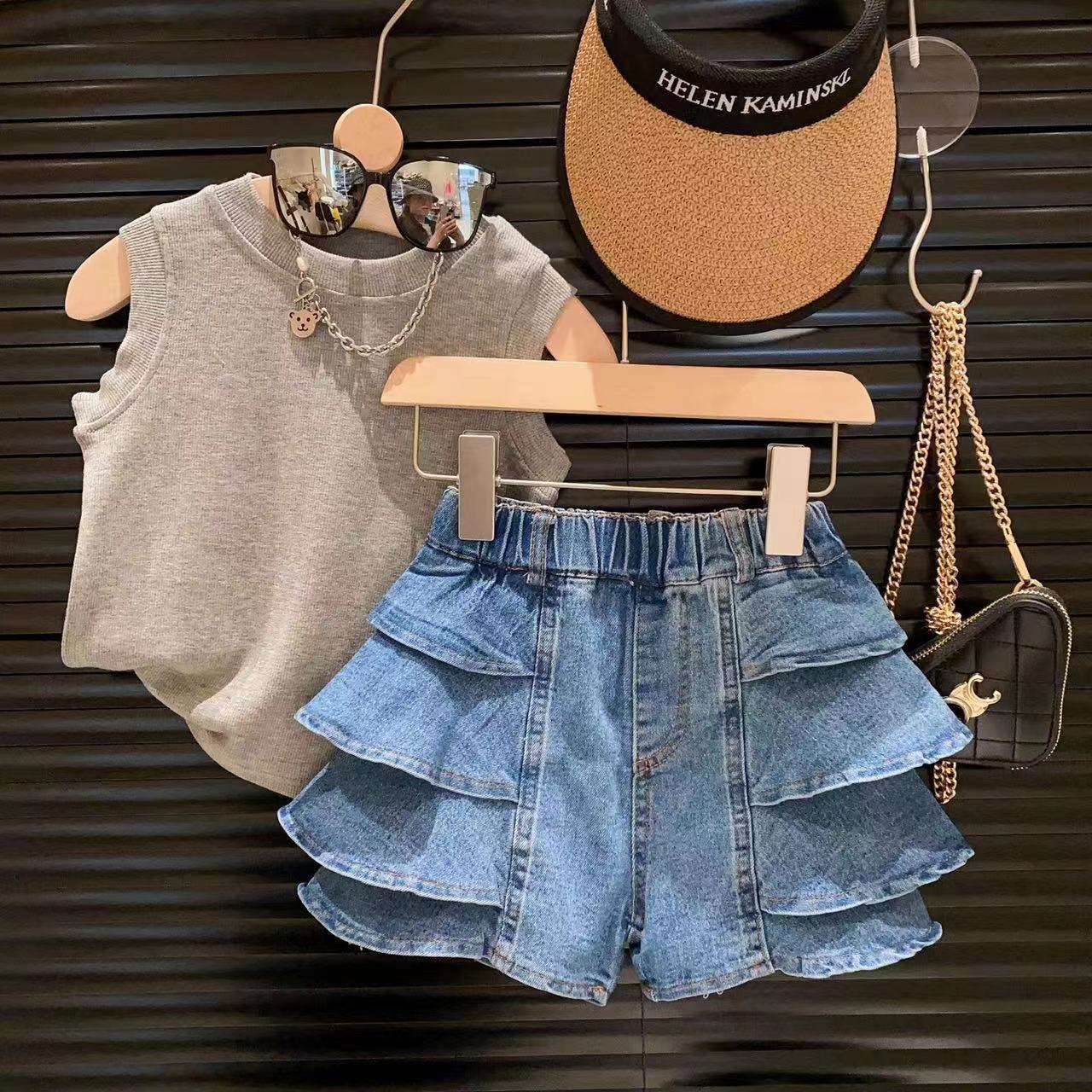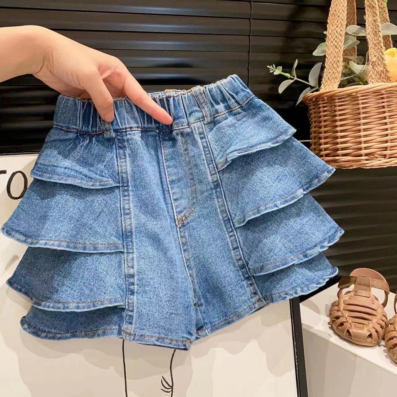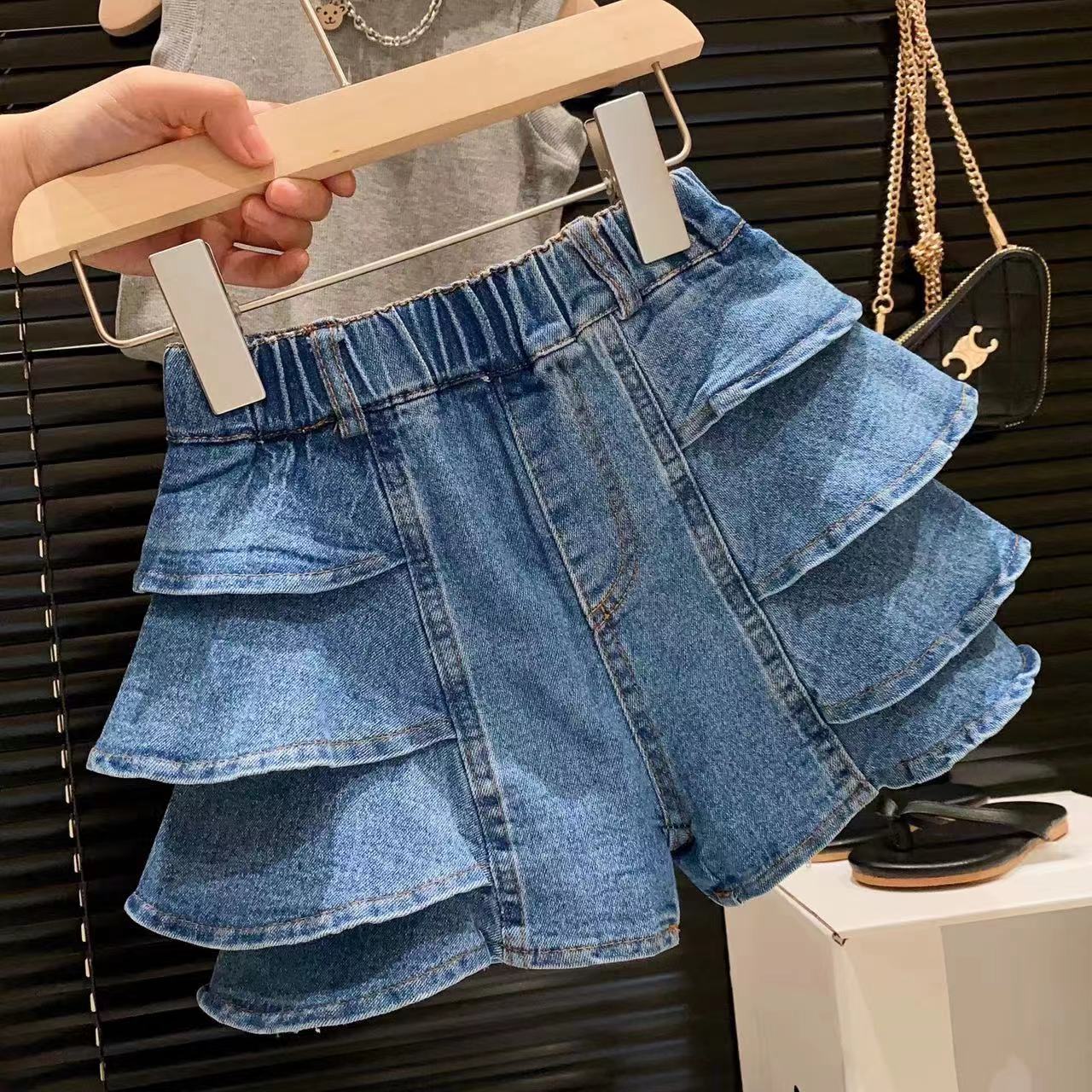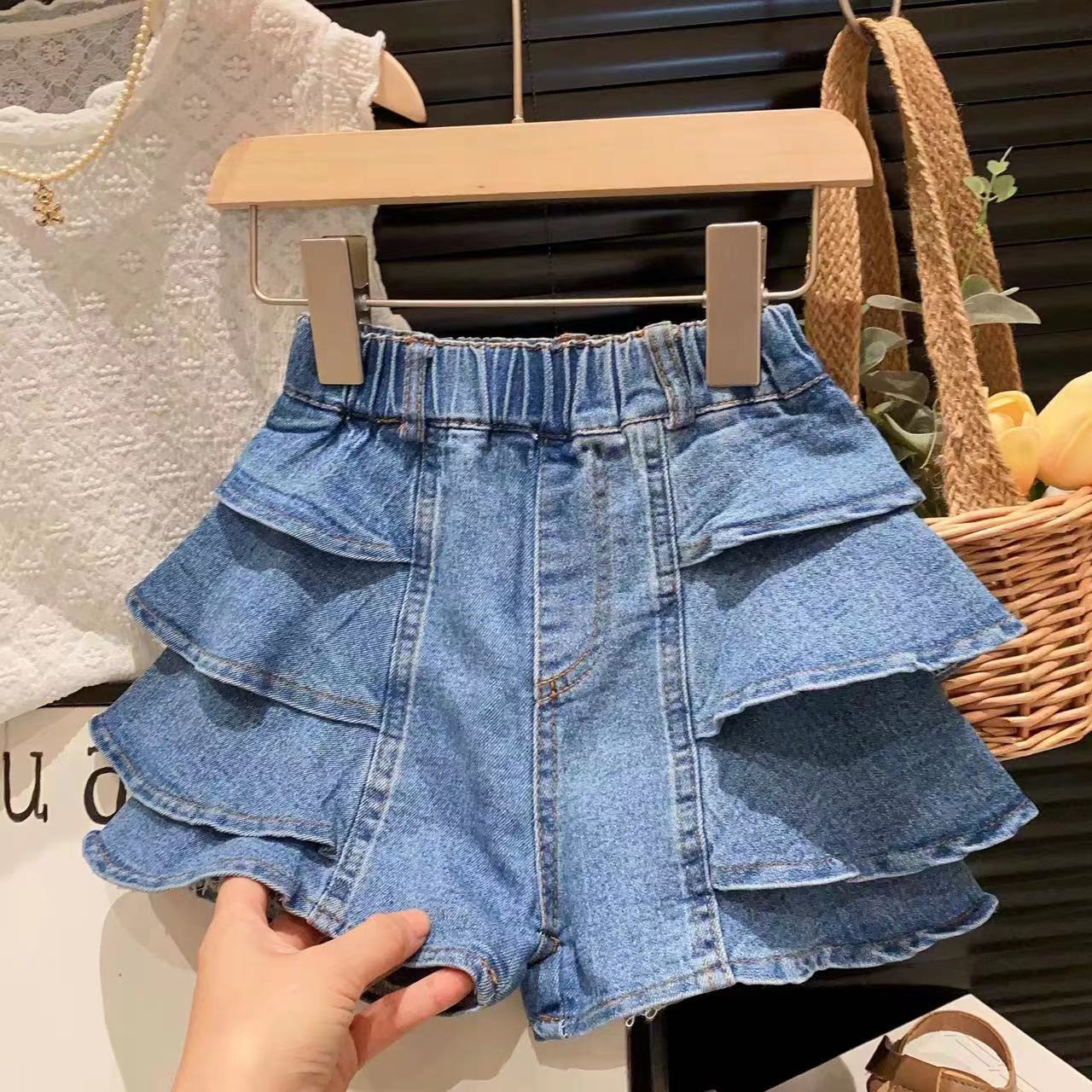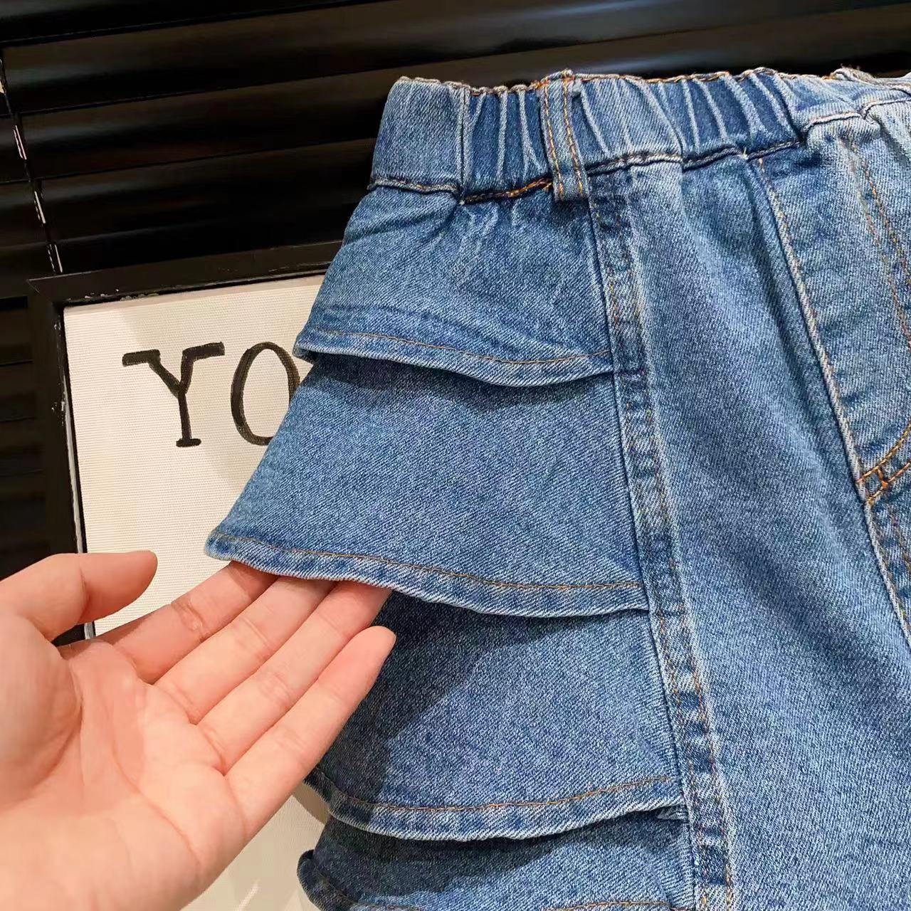 신상품 여아 맞춤형 스트리트 스타일 다용도 워싱 데님 반바지 및 핫팬츠 2025 아동 여름옷스토어 가기