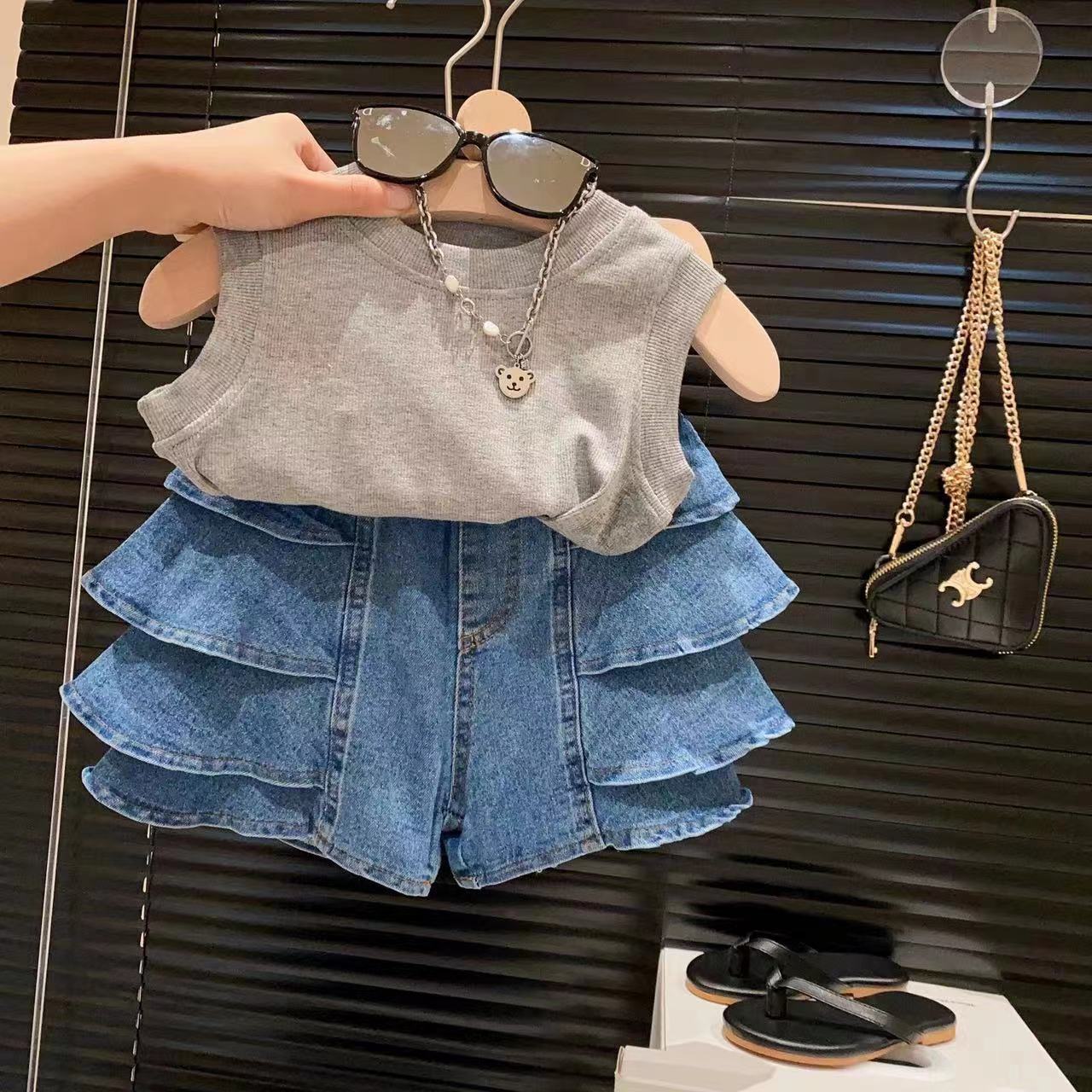 신상품 여아 맞춤형 스트리트 스타일 다용도 워싱 데님 반바지 및 핫팬츠 2025 아동 여름옷