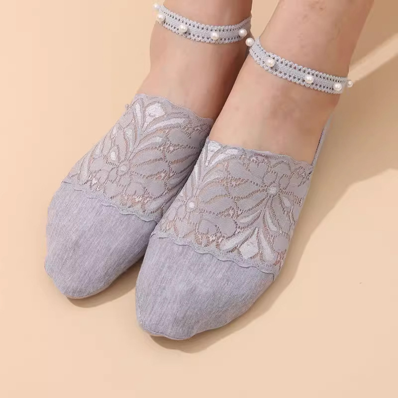 보트 양말 여성용 깊은 입 진주 양말 진주 보트 양말 여름 얇은 모든 경기 레이스 면화 여자 보트 양말 보이지 않는 양말