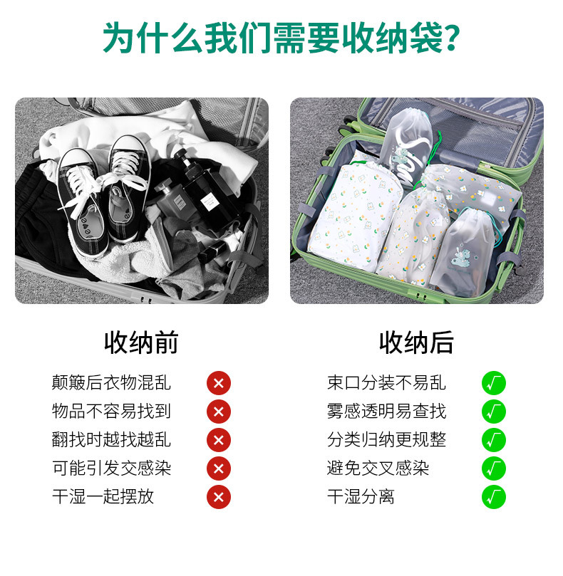 더블 레이어 두꺼운 플라스틱 졸라매는 끈 가방 여행 보관 가방 방수 옷 양말 보관 가방 졸라매는 끈 가방