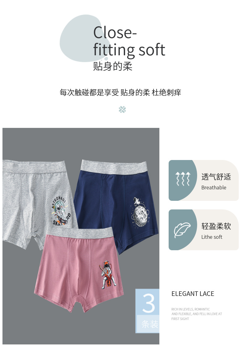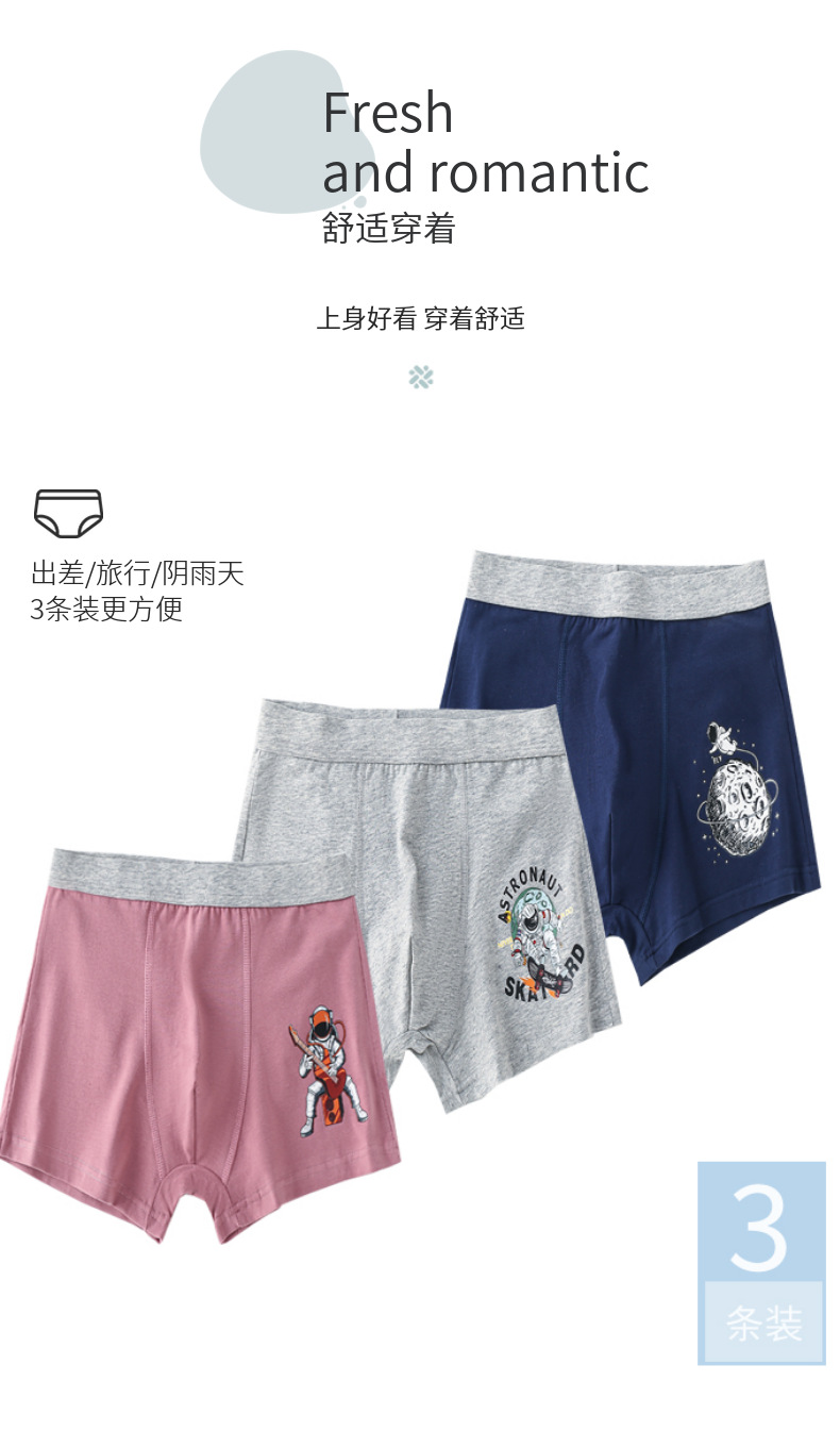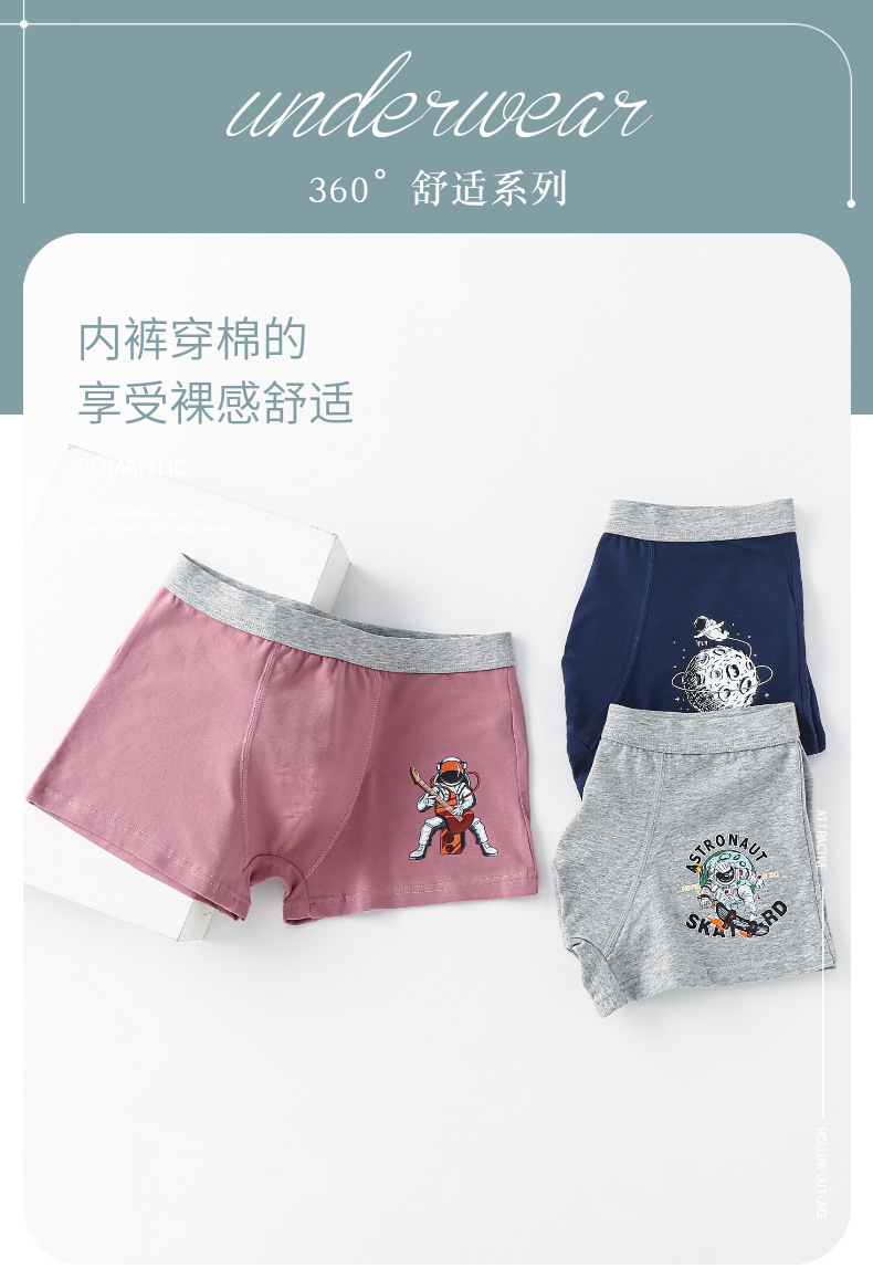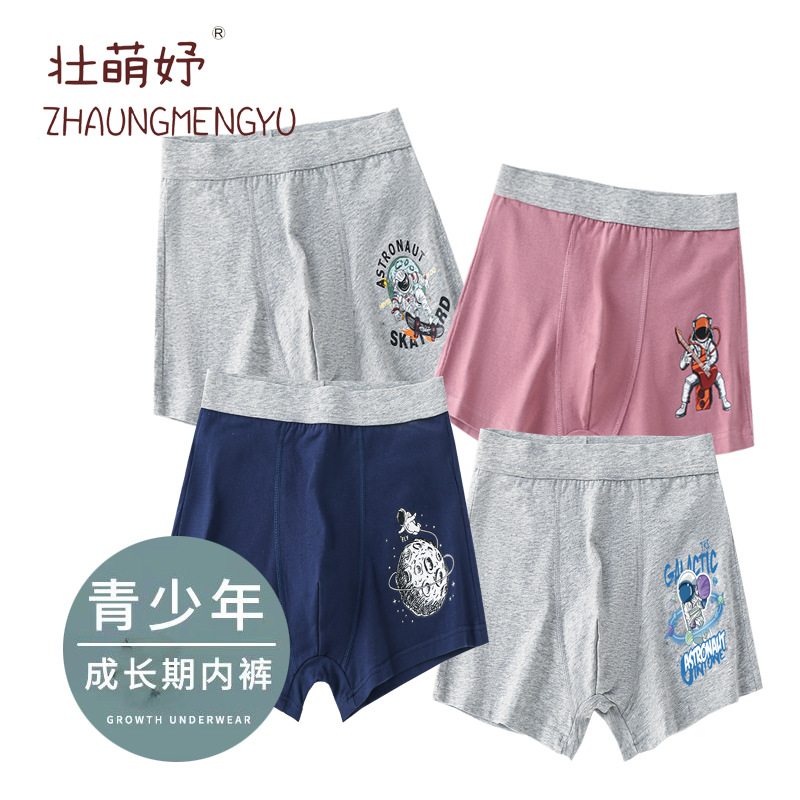 중대형 어린이 및 비만 아동용 속옷, 남학생 발달기 순면 사각팬티, 고등학생, 중학생, 우주비행사 스타일 순면스토어 가기