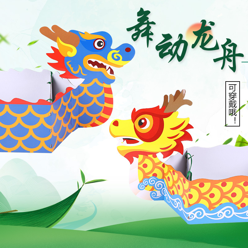 드래곤 보트 축제 춤추는 드래곤 보트 중국 스타일 수제 DIY 유치원 어린이 재료 가방 창조적 인 페이스트 만들기 장난감