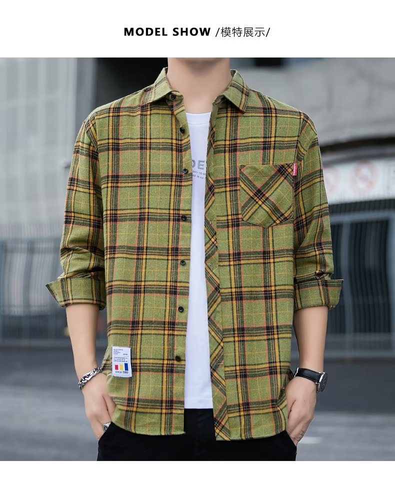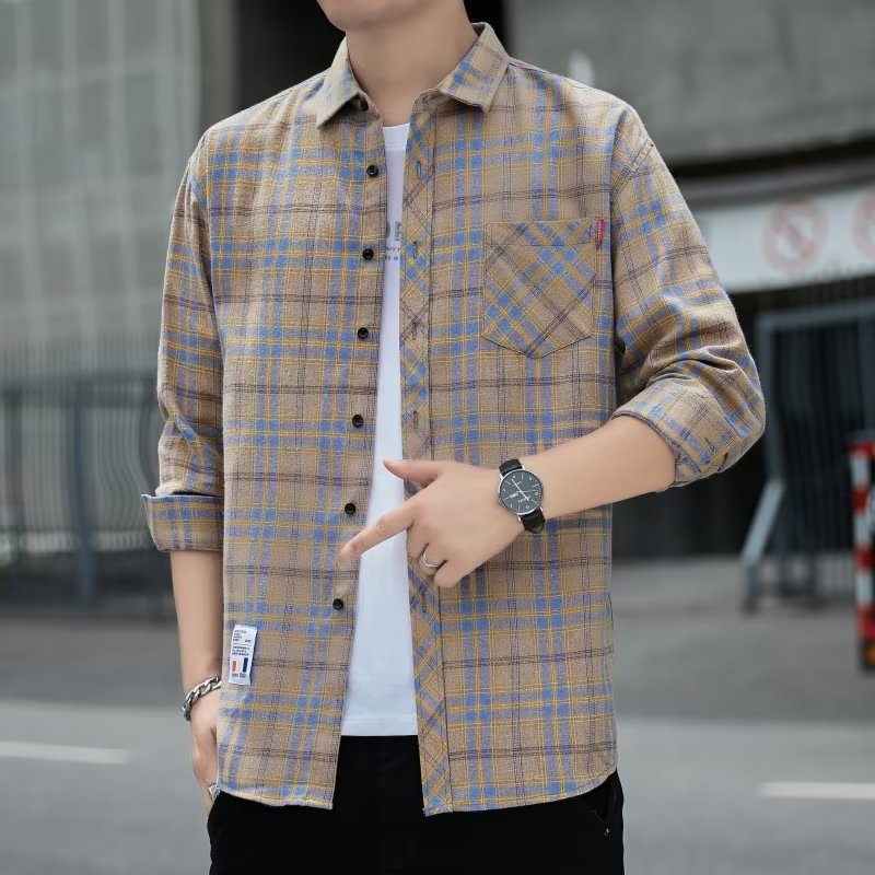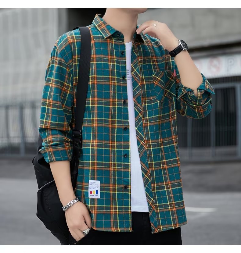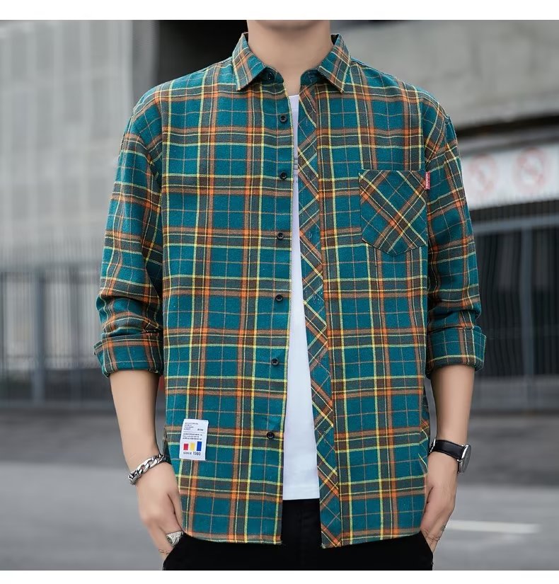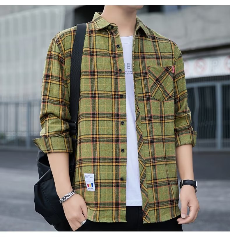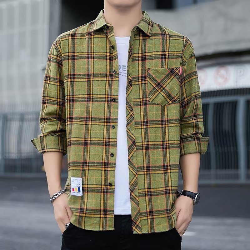 일본 격자 무늬 긴 소매 셔츠 남자의 봄과 가을 새로운 느슨한 캐주얼 유행 브랜드 홍콩 스타일 셔츠 남성 재킷