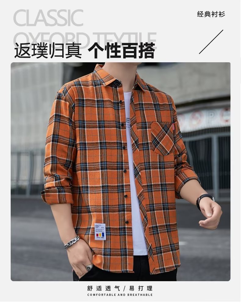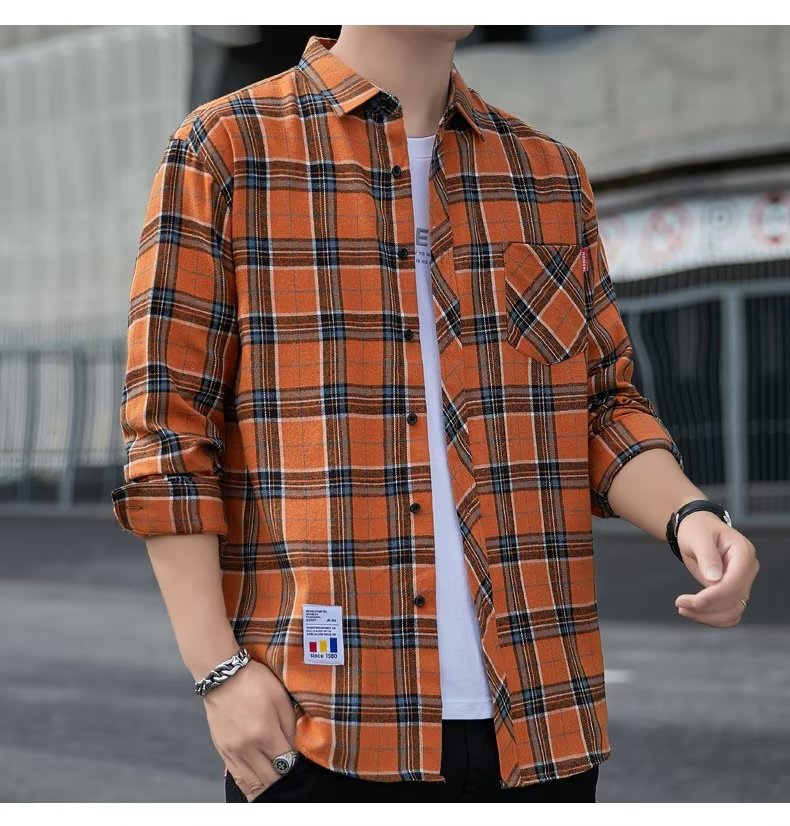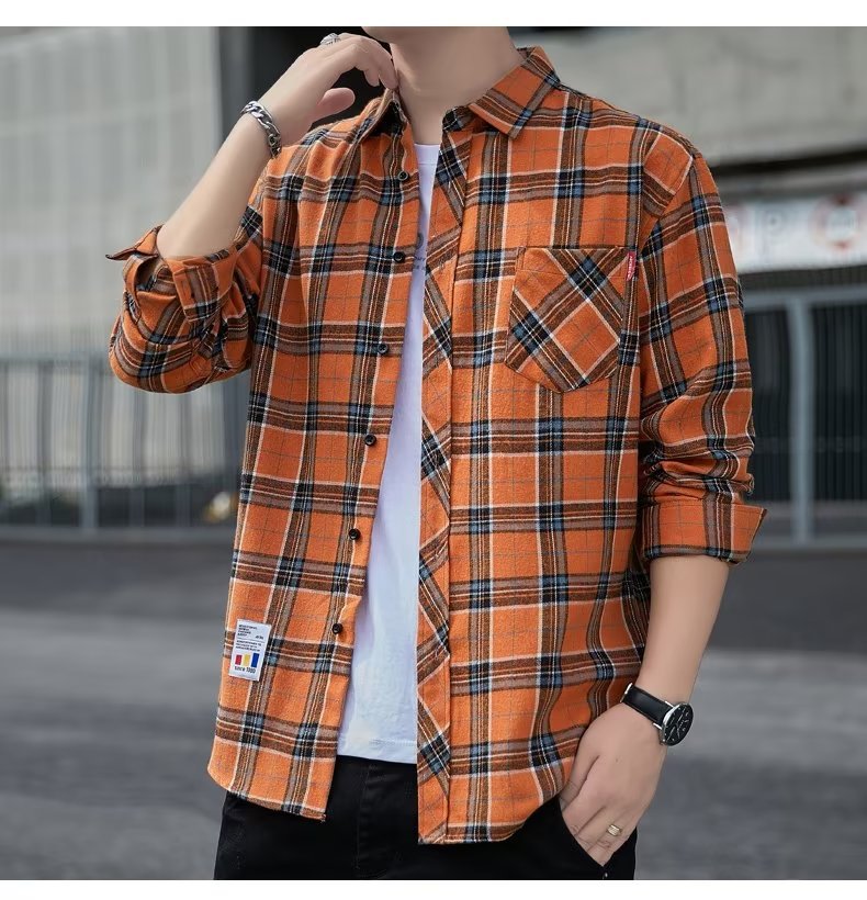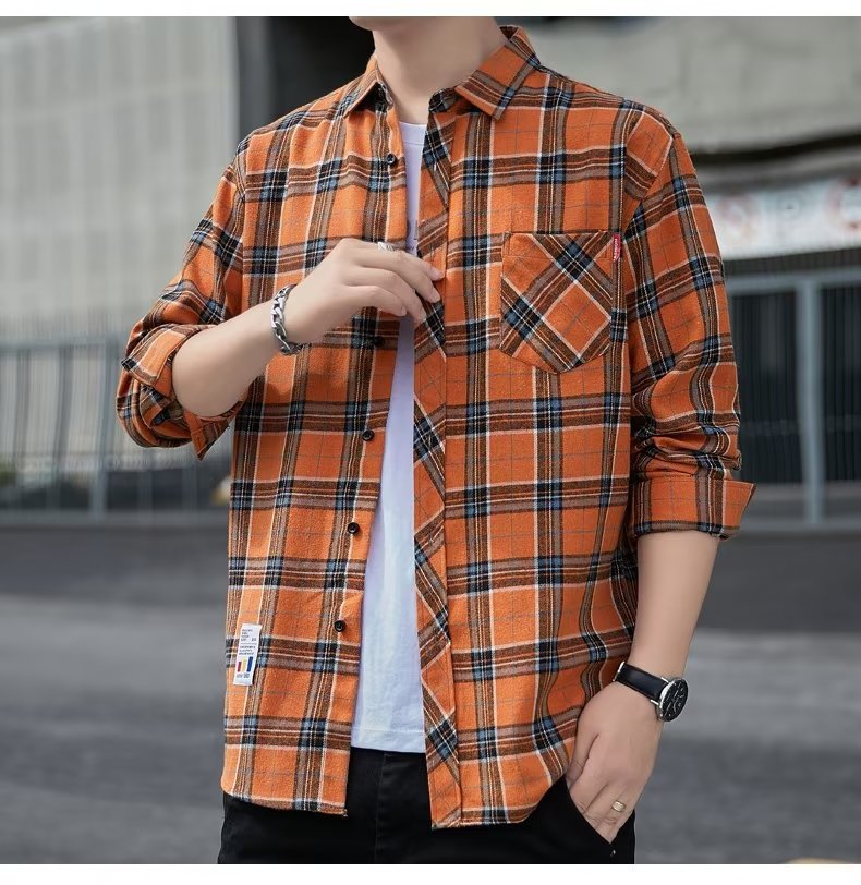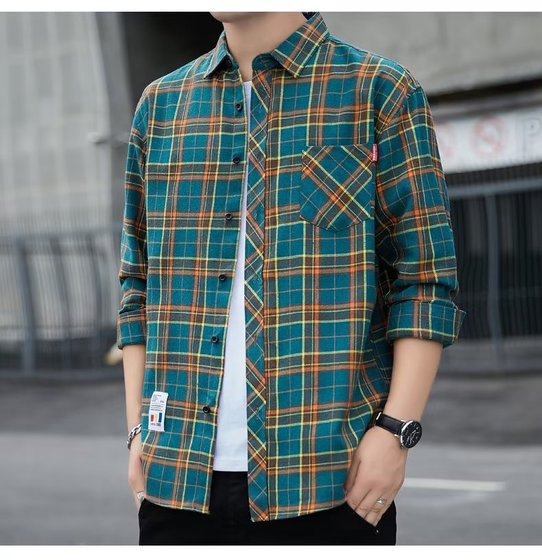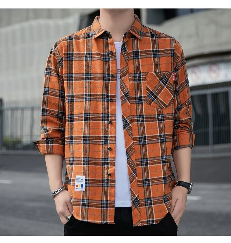 일본 격자 무늬 긴 소매 셔츠 남자의 봄과 가을 새로운 느슨한 캐주얼 유행 브랜드 홍콩 스타일 셔츠 남성 재킷