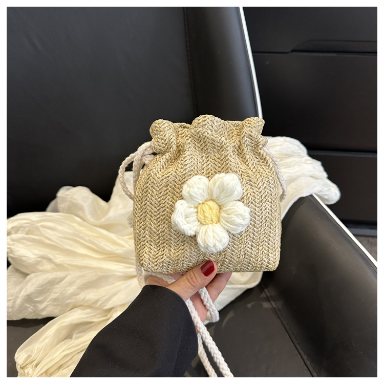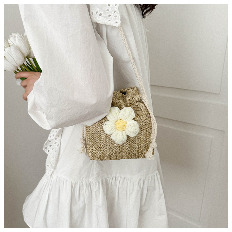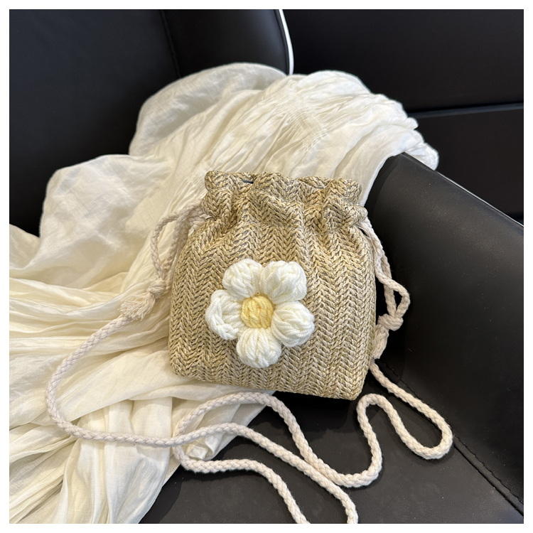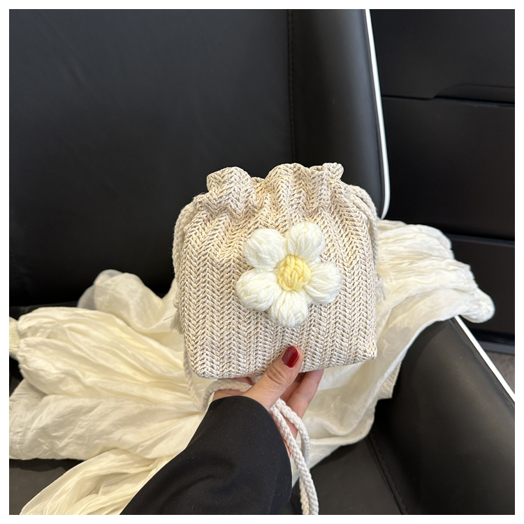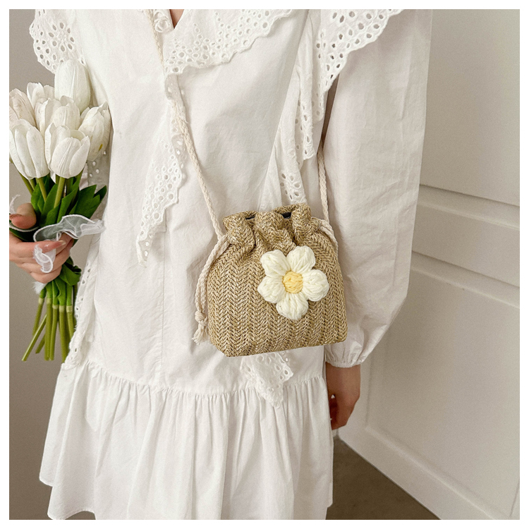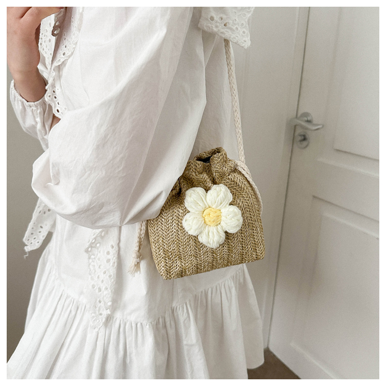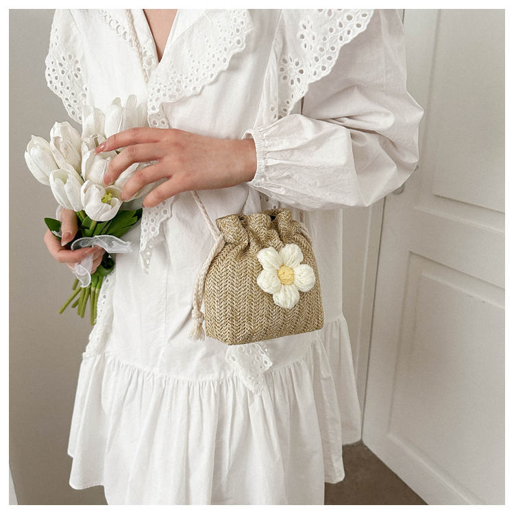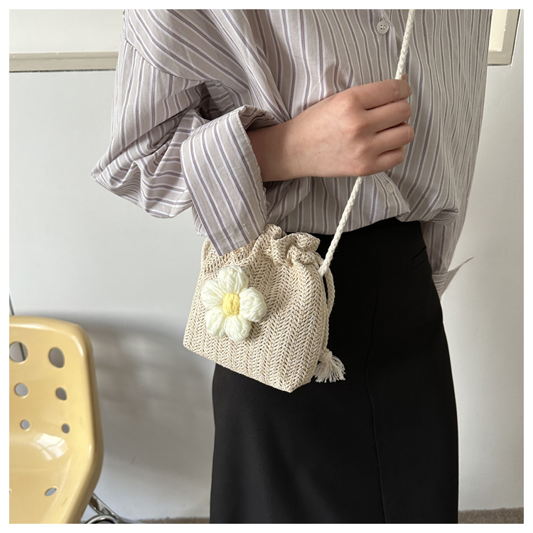 짠 가방 여성 가방 새로운 유행 2024 여름 밀짚 짠 귀여운 Ins 버킷 가방 독특한 소녀의 어깨 크로스 바디 가방스토어 가기