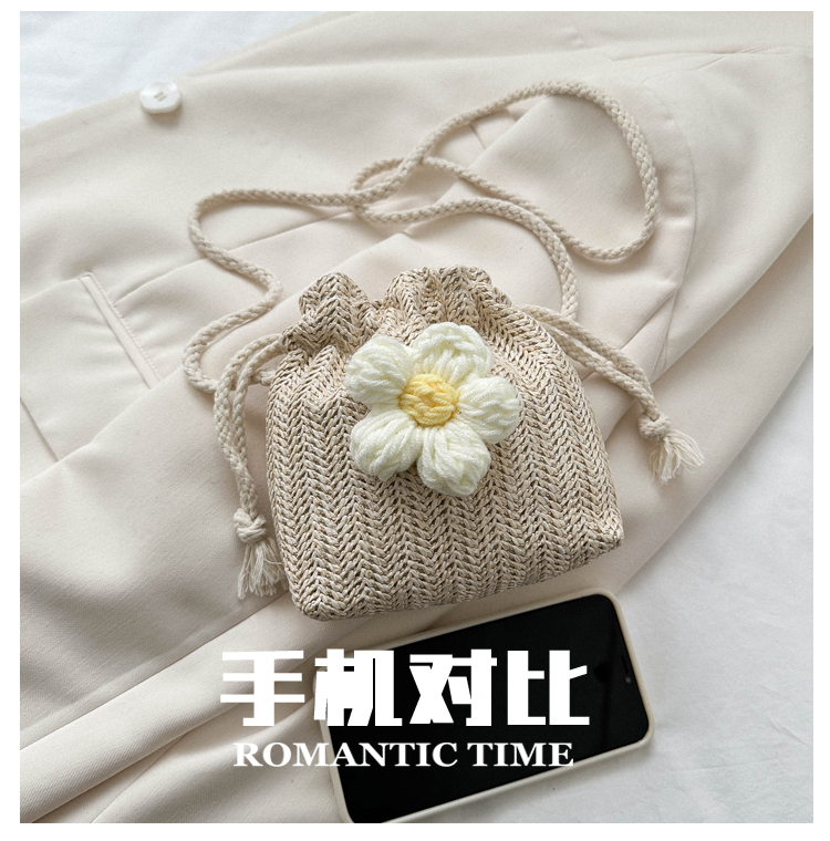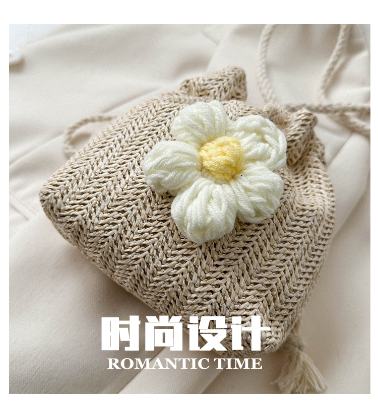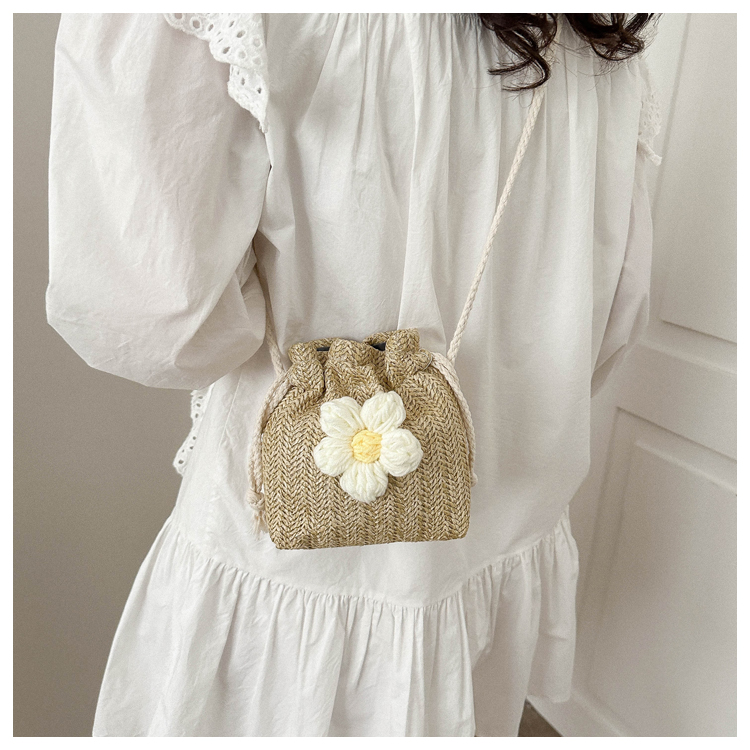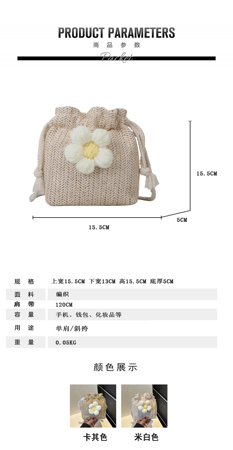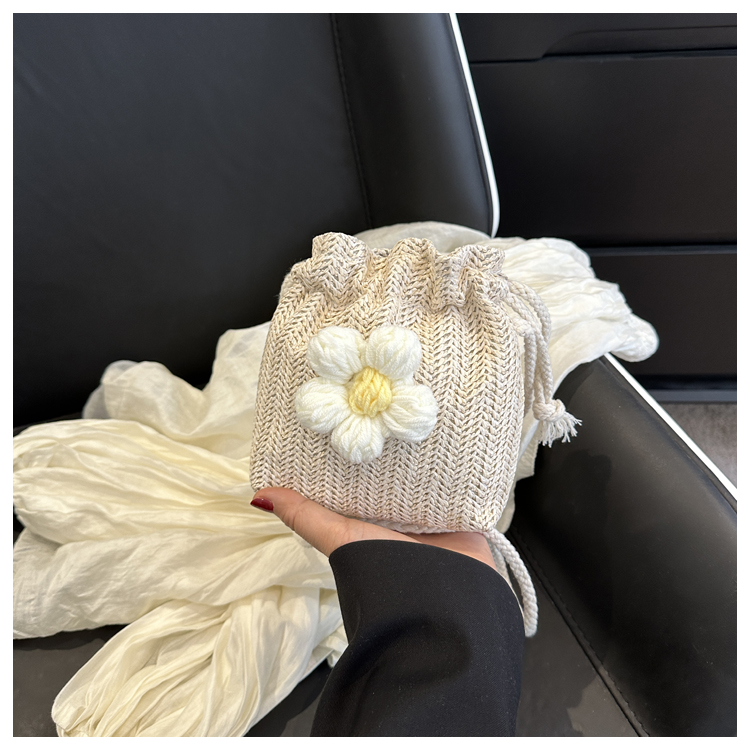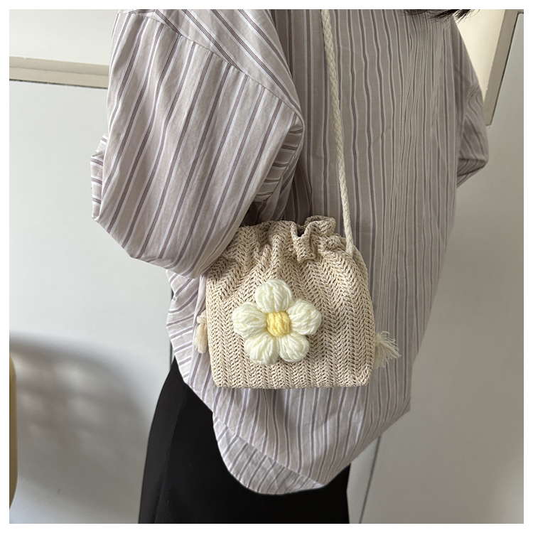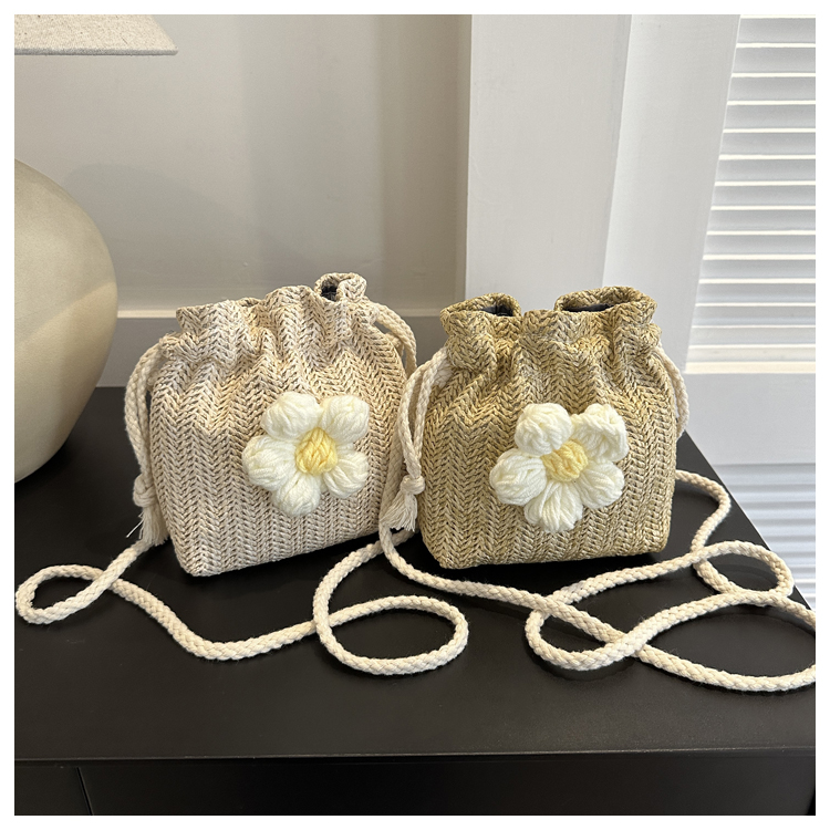 짠 가방 여성 가방 새로운 유행 2024 여름 밀짚 짠 귀여운 Ins 버킷 가방 독특한 소녀의 어깨 크로스 바디 가방스토어 가기