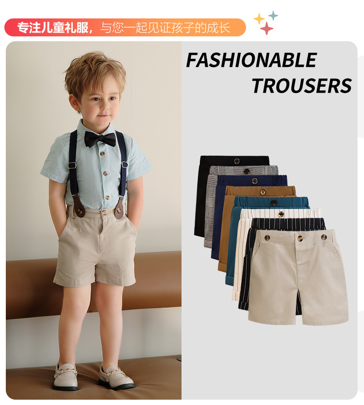 어린이 반바지 여름 세트 바지 소년 캐주얼 어린이 바지 턱받이 바지 초등 및 중등 학생 공연 학교 바지스토어 가기