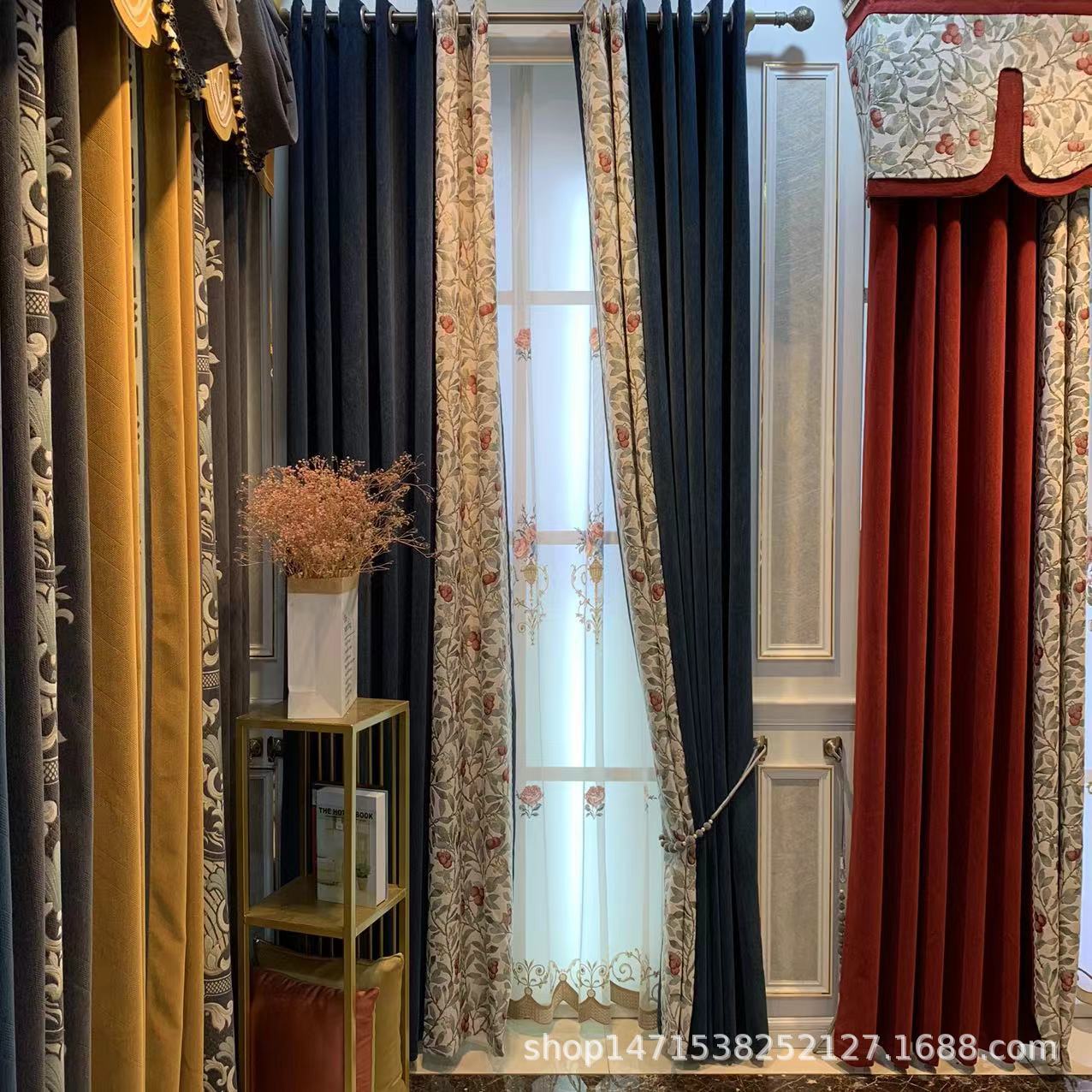 유럽식 커튼 거실 침실 럭셔리 암막 베이 창 바닥에서 천장까지 창 수 놓은 빌라 커튼 천 창 화면 고급스러운 분위기스토어 가기