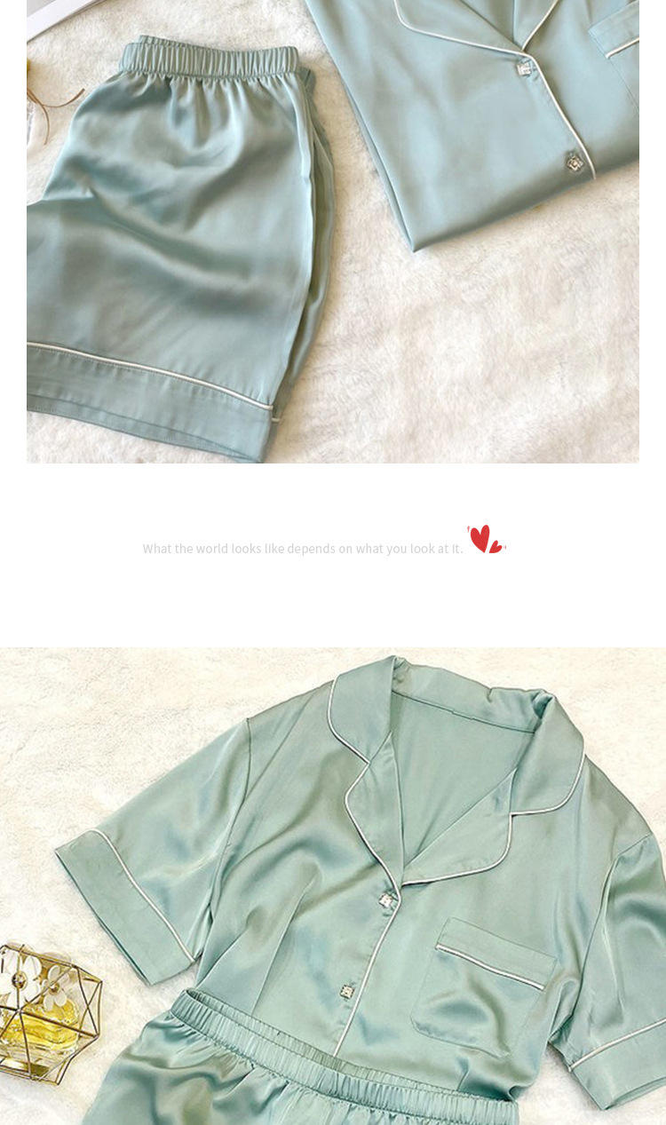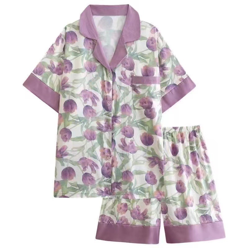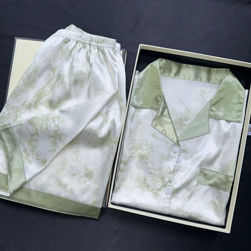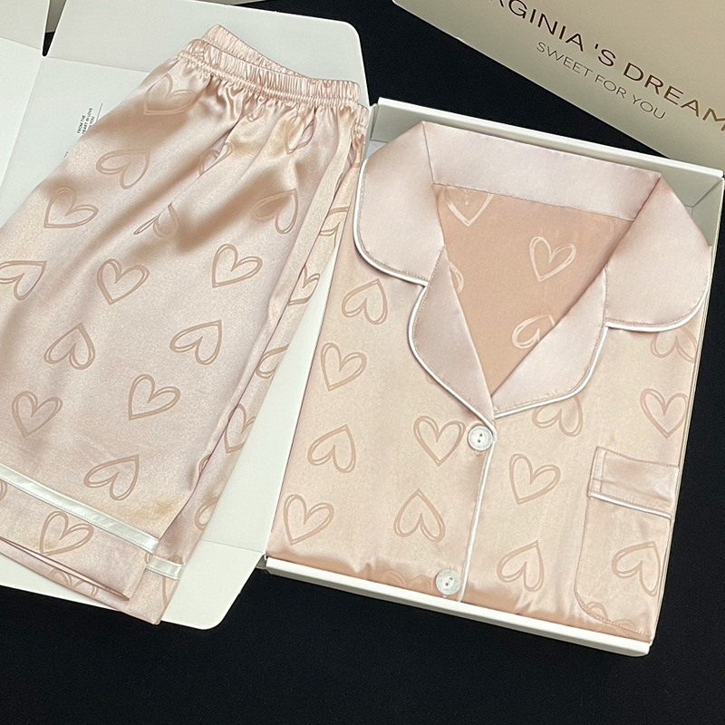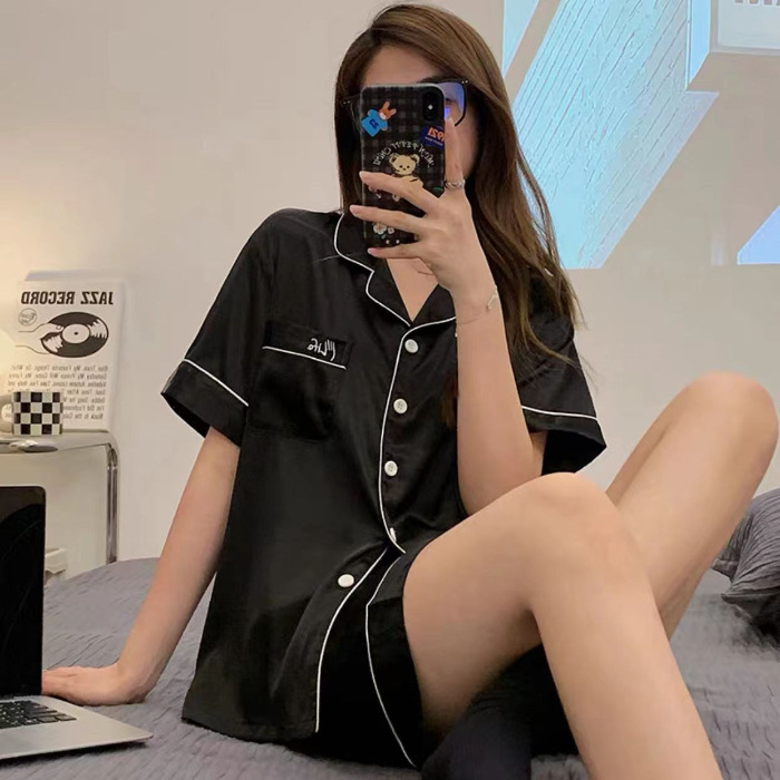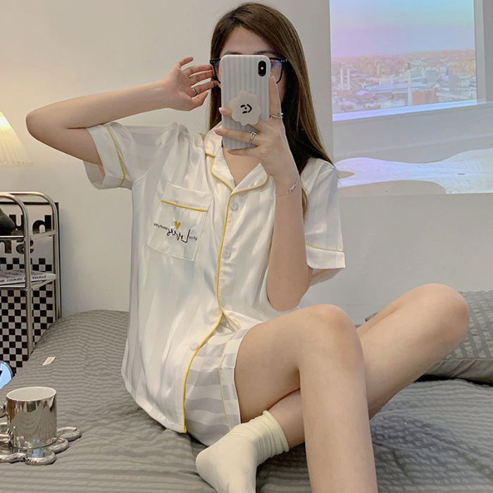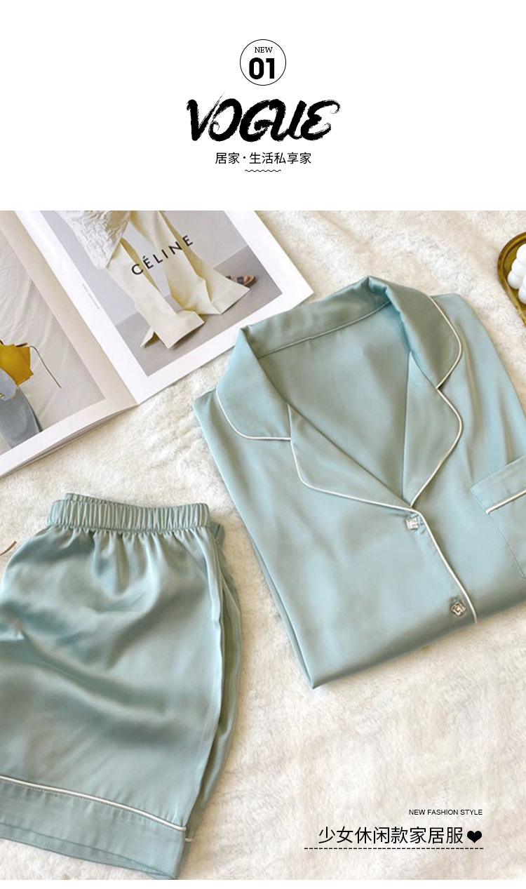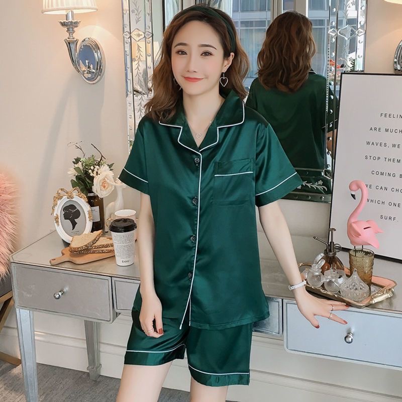 여름 새로운 얼음 실크 잠옷 여자의 반팔 얇은 느슨한 여자의 실크 만화 가정 옷 라이브 세트스토어 가기