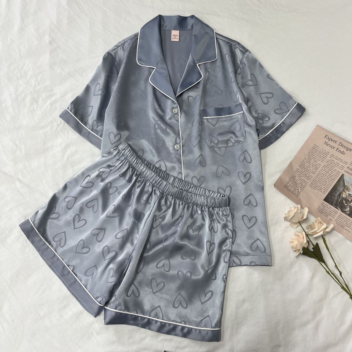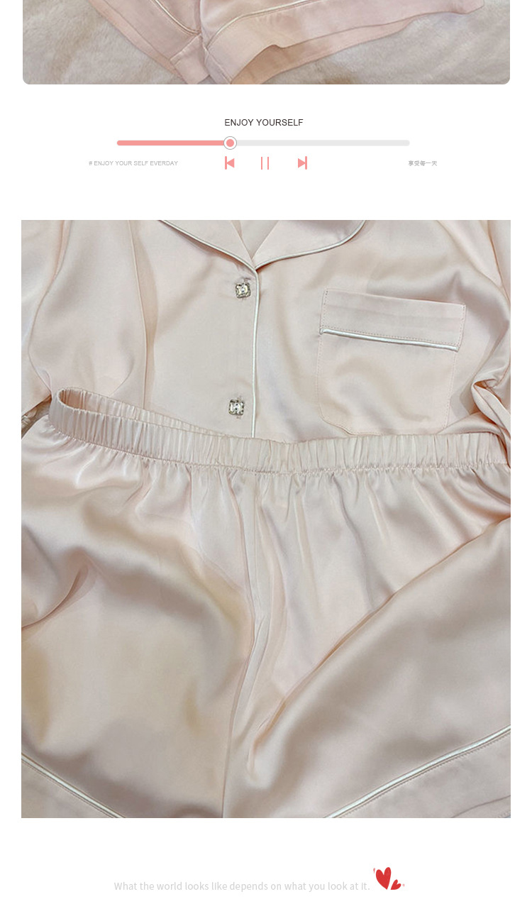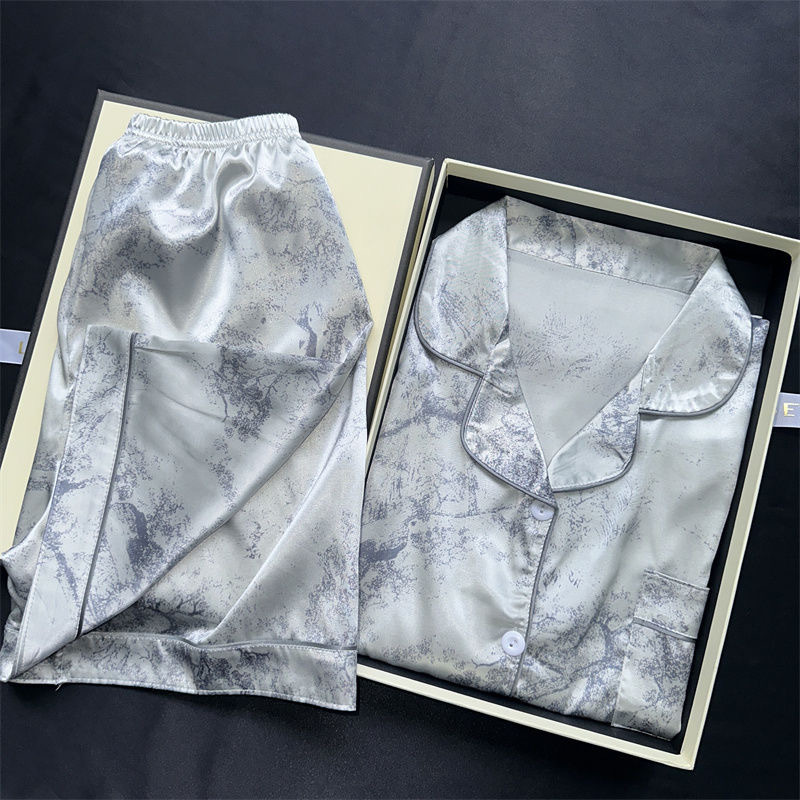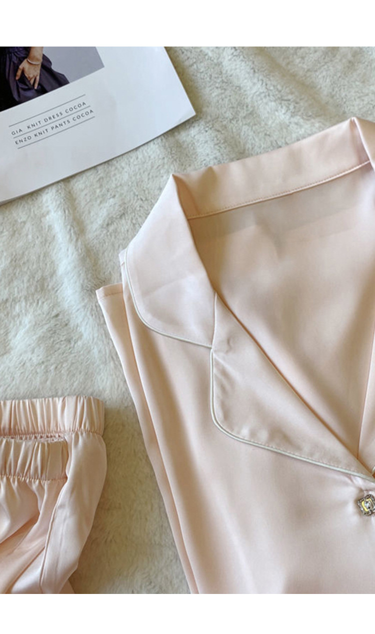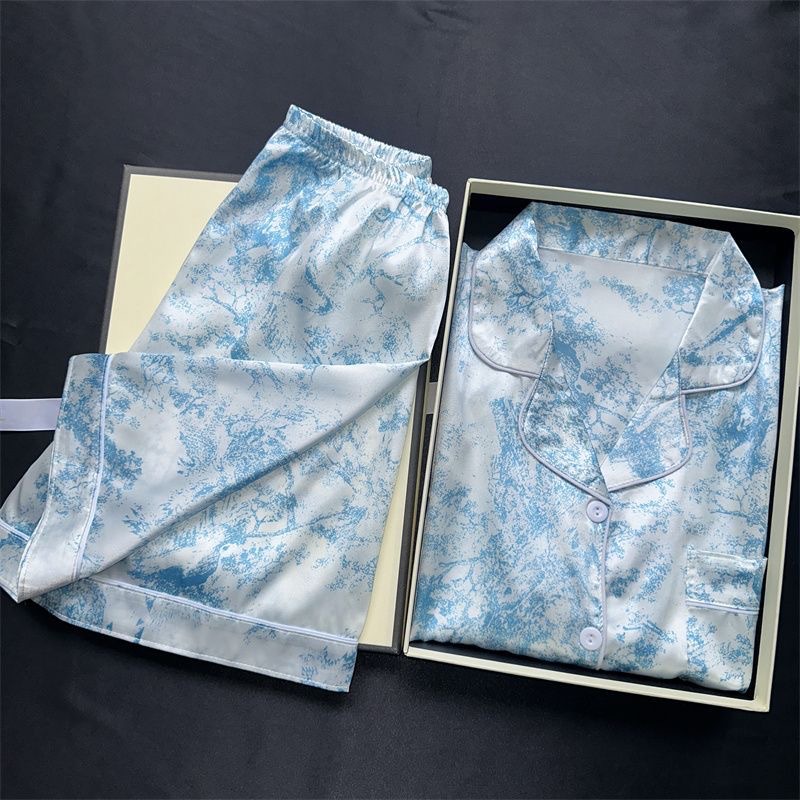 여름 새로운 얼음 실크 잠옷 여자의 반팔 얇은 느슨한 여자의 실크 만화 가정 옷 라이브 세트스토어 가기