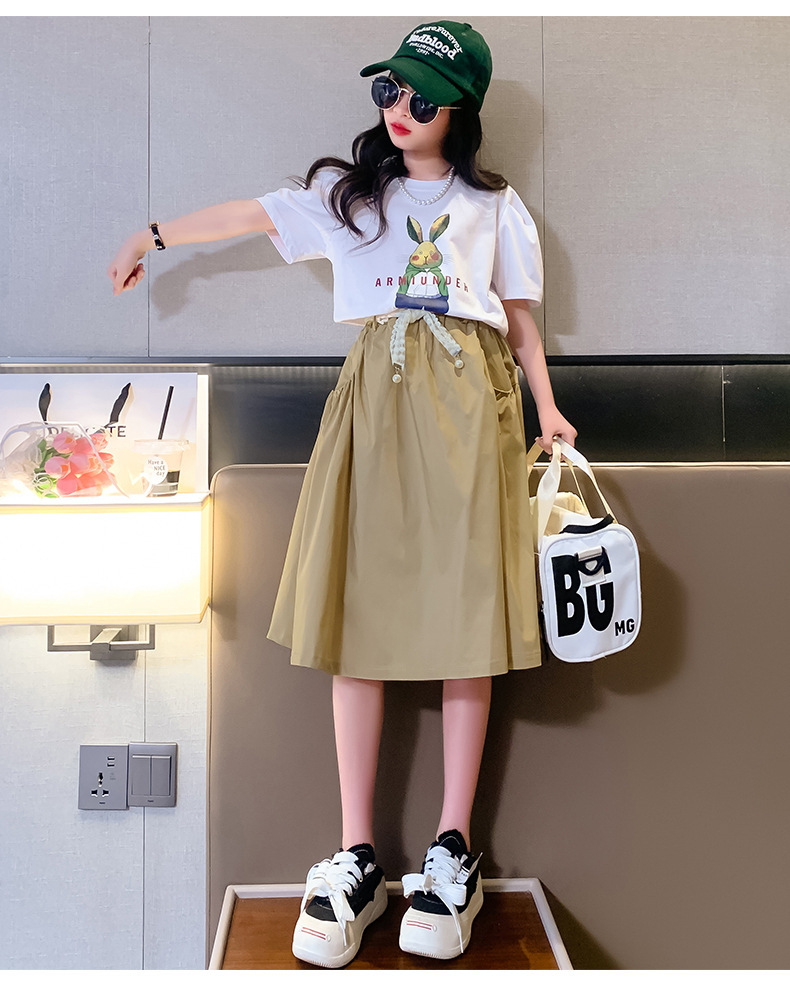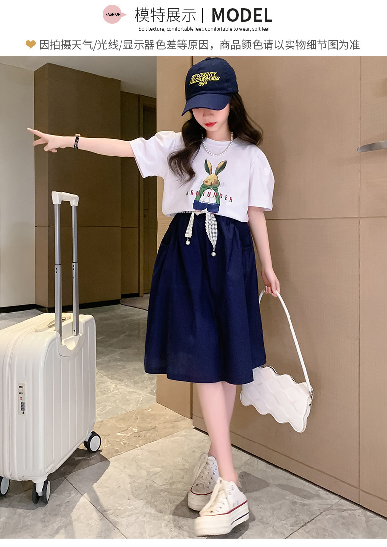 여아 원피스 여름 2023 새로운 스타일 어린이 토끼 티셔츠 스커트 세트 여아 유행 치마