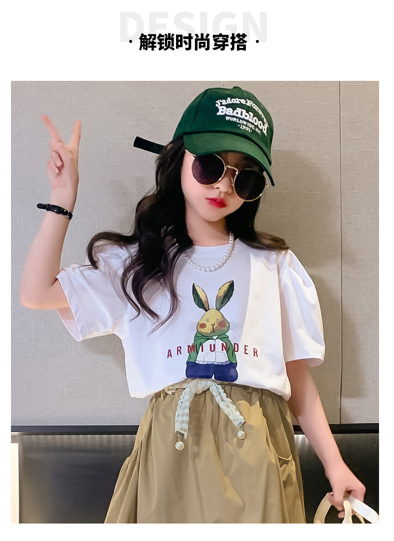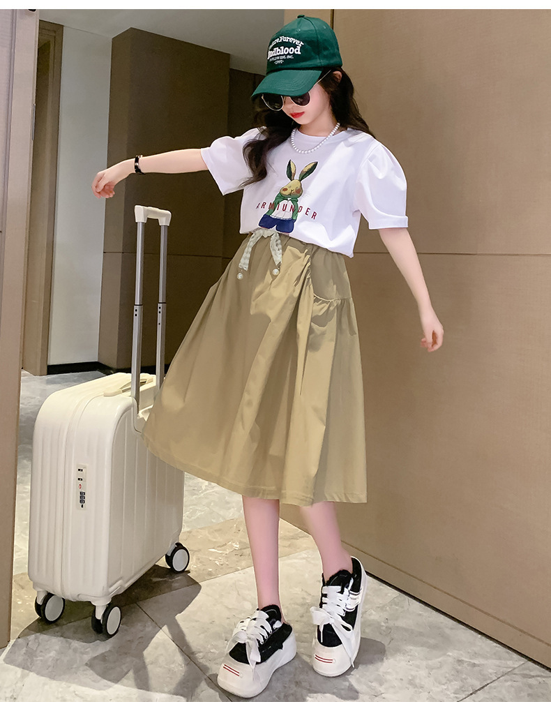 여아 원피스 여름 2023 새로운 스타일 어린이 토끼 티셔츠 스커트 세트 여아 유행 치마스토어 가기