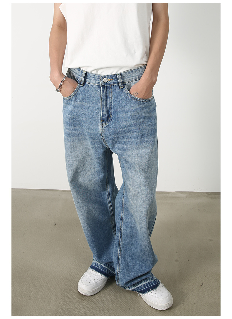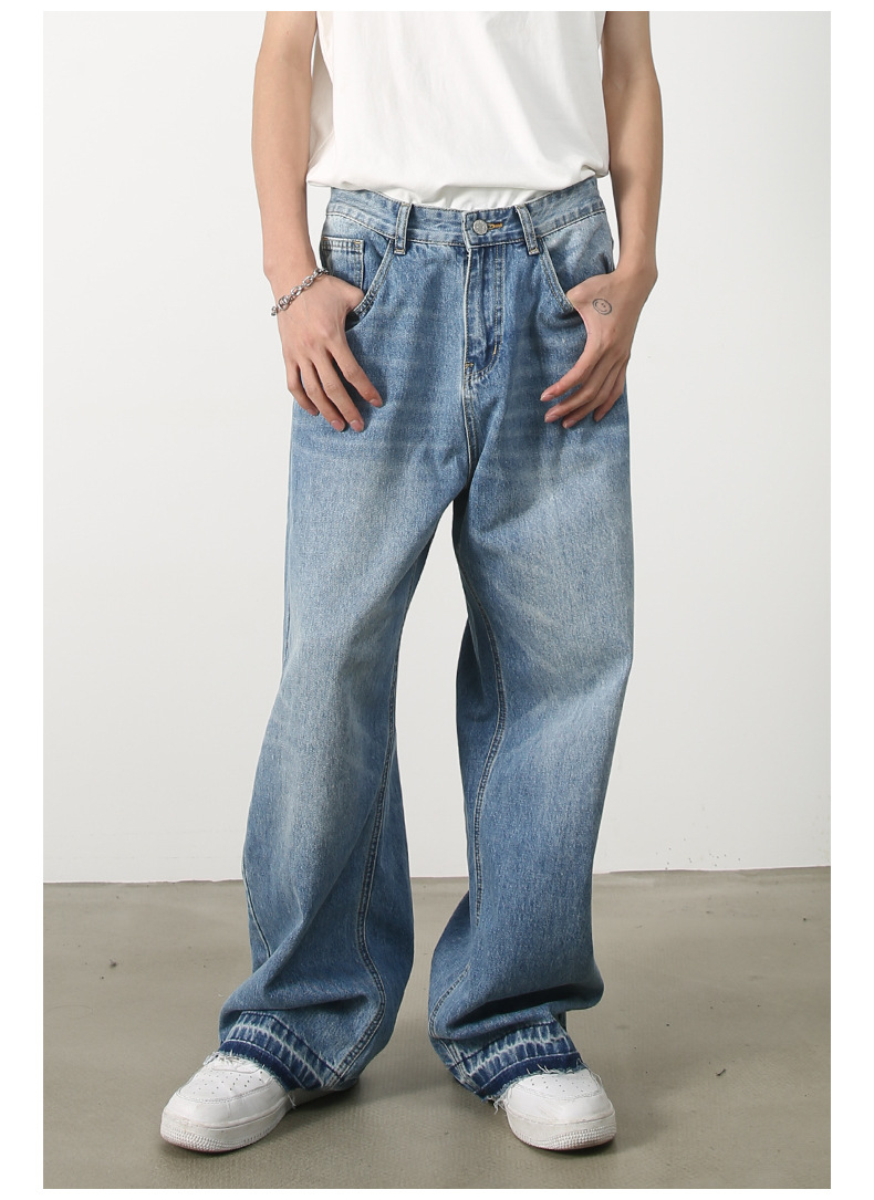 Nirben 데님 | 새로운 복고풍 청바지 남자의 스트레이트 느슨한 유행 브랜드 와이드 레그 아메리칸 스타일 개성 컷 디자인스토어 가기