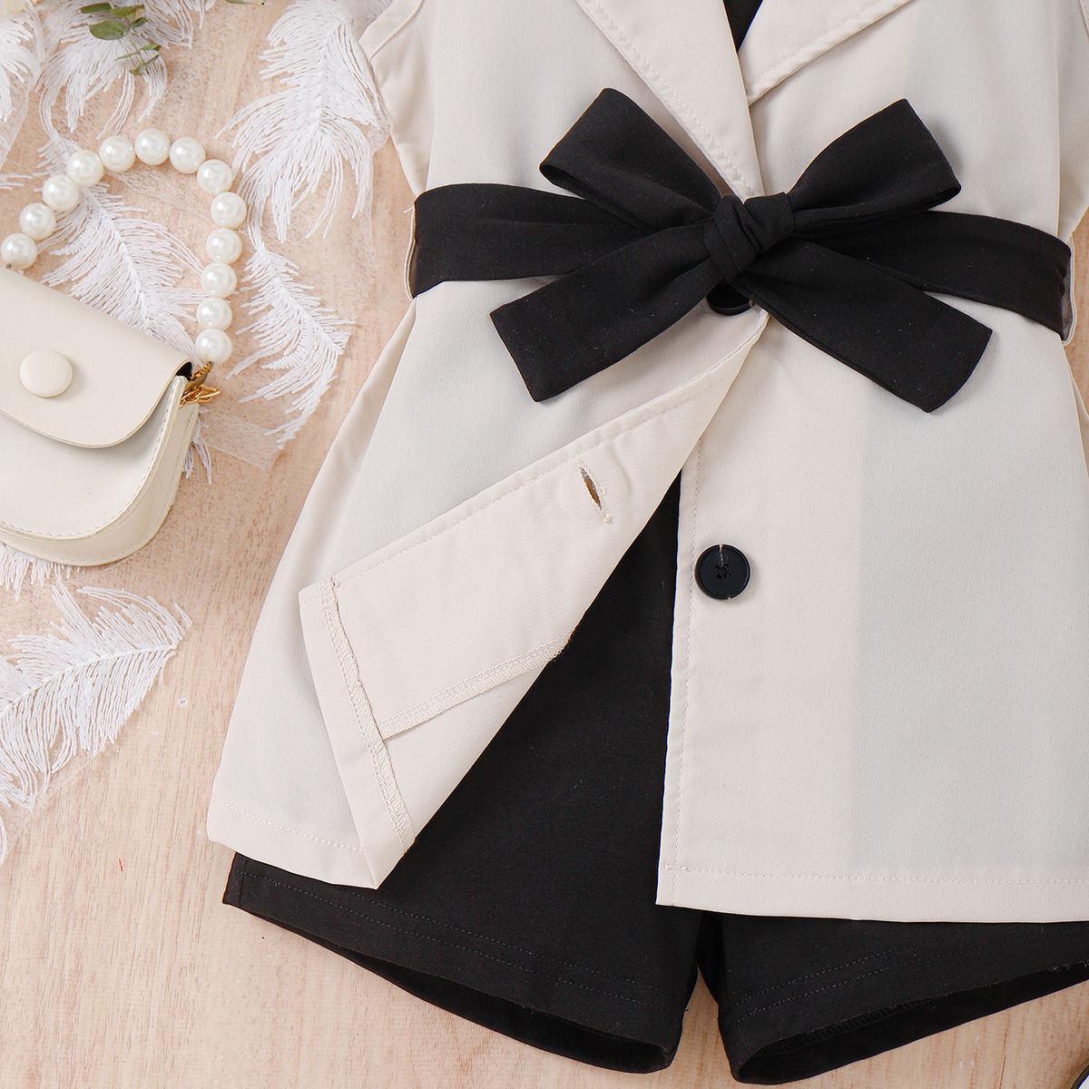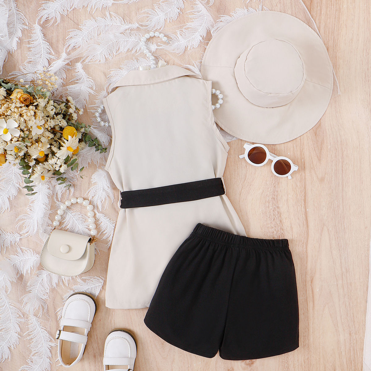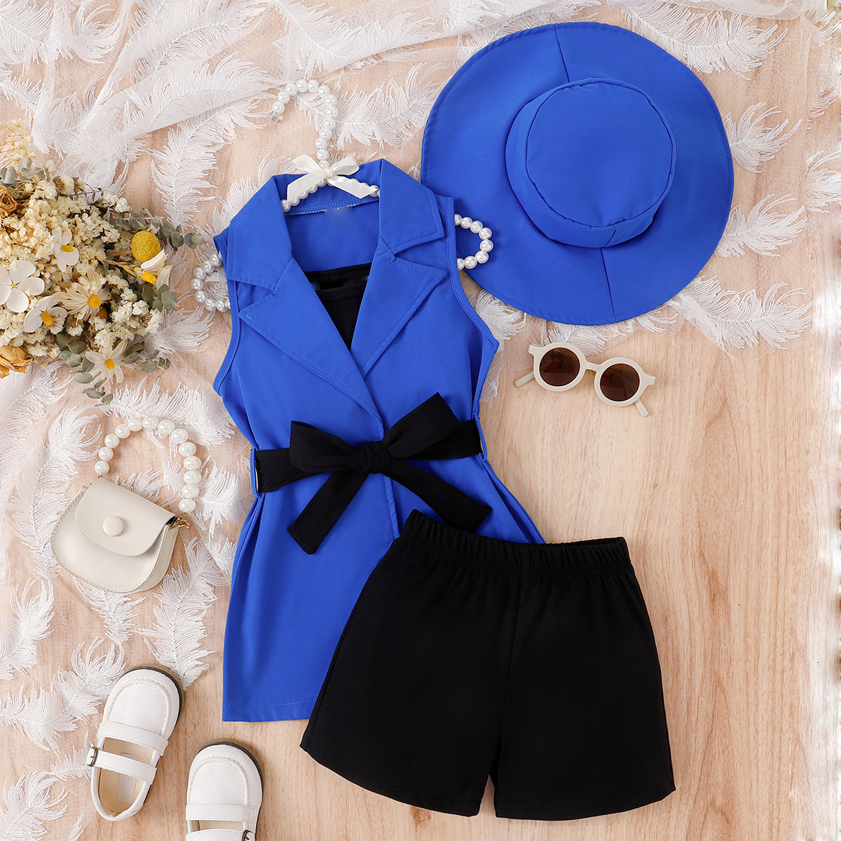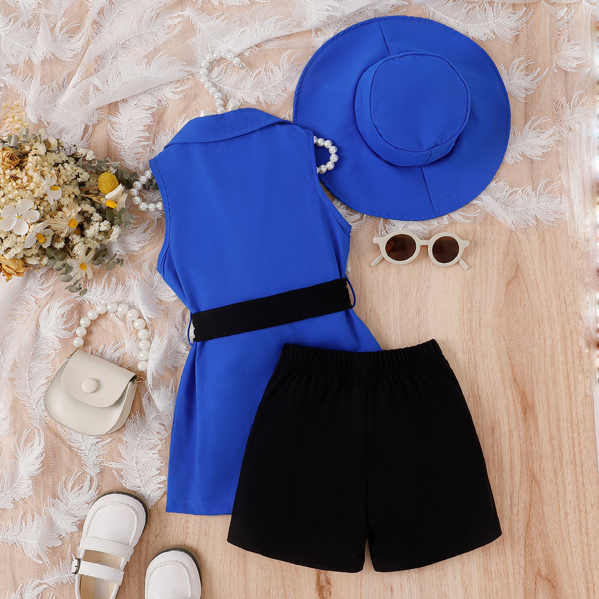 유럽과 미국 여름 소녀 세트 어린이 콘돌 베이스 + 반바지 + 민소매 세트 재킷 + 모자 4 피스 세트