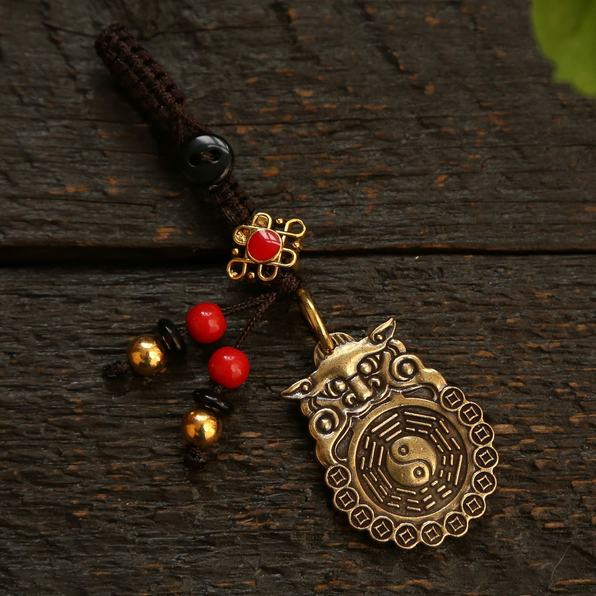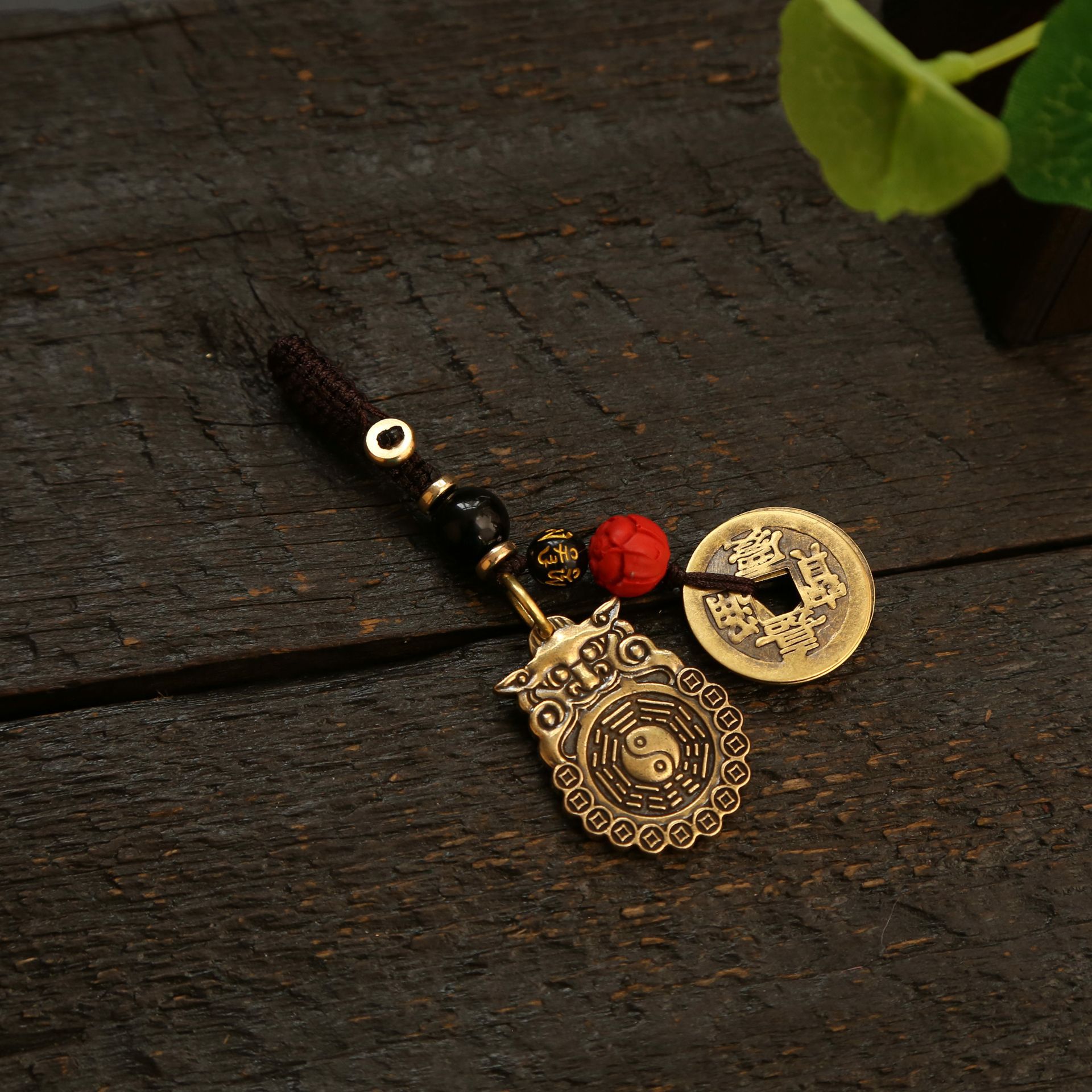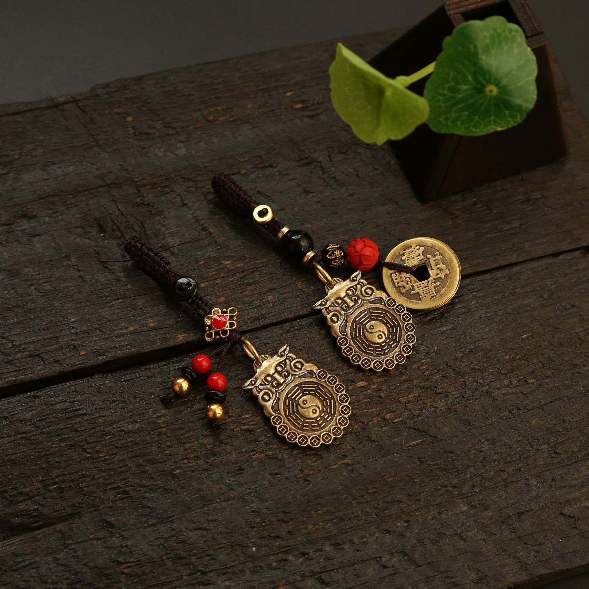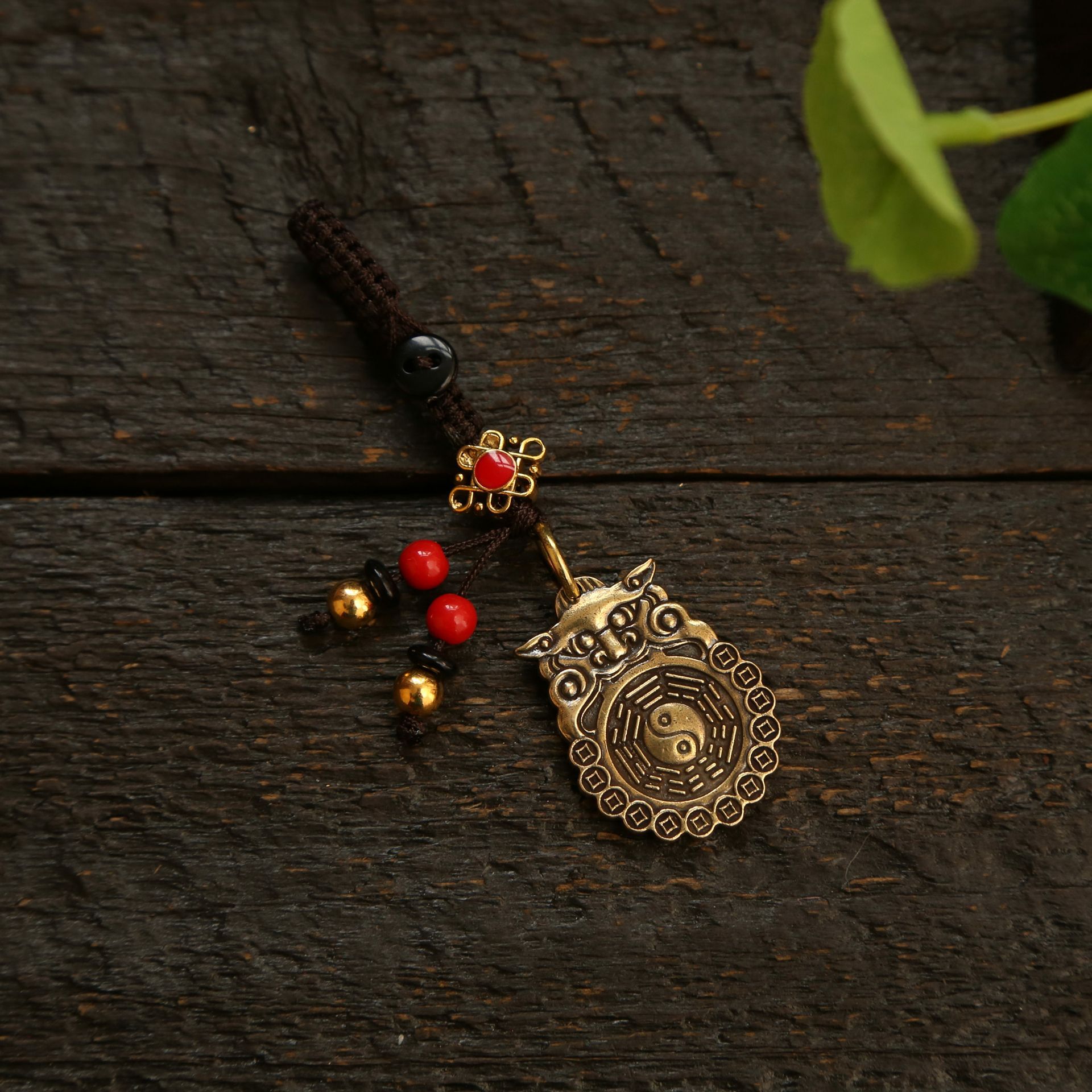 황동 액세스 Ping an Bagua 브랜드 키 체인 펜던트 자동차 키 남성 및 여성용 가방 펜던트 장식품 에스닉 스타일