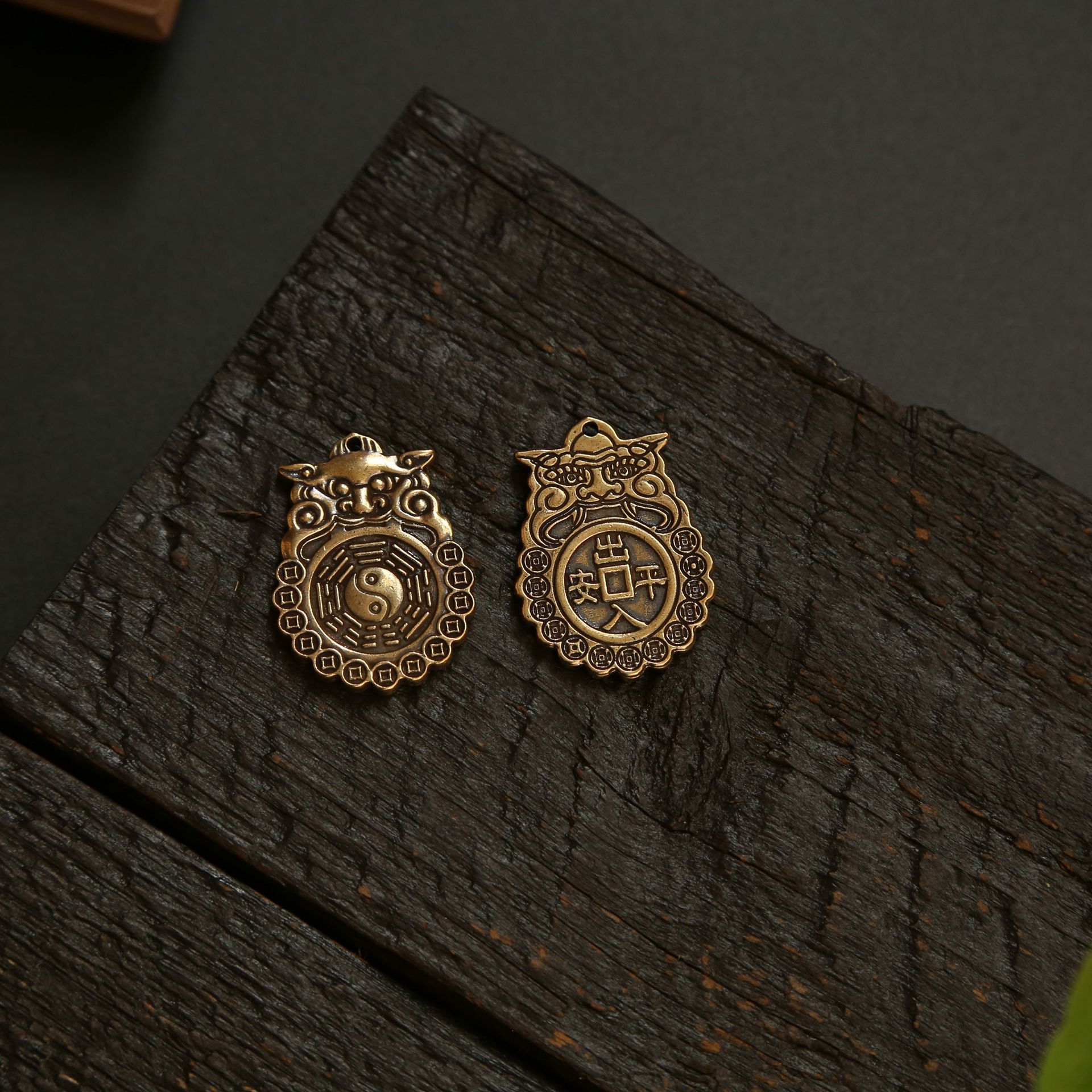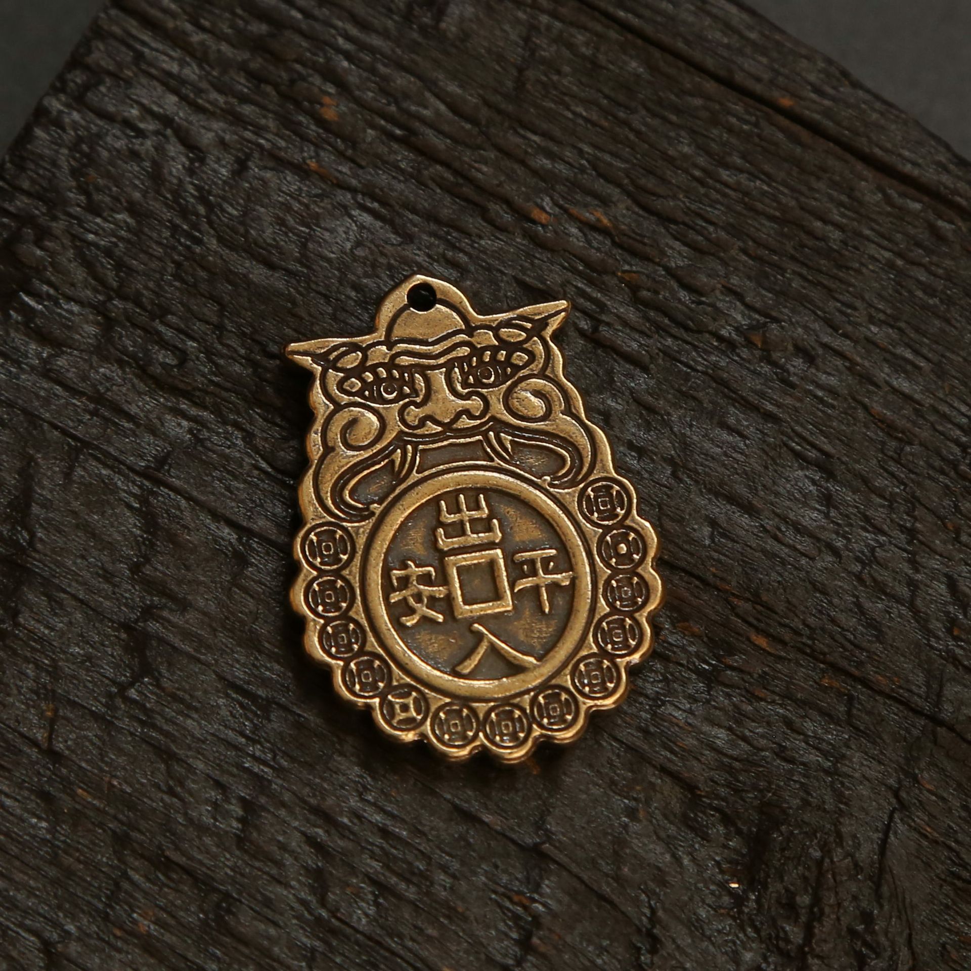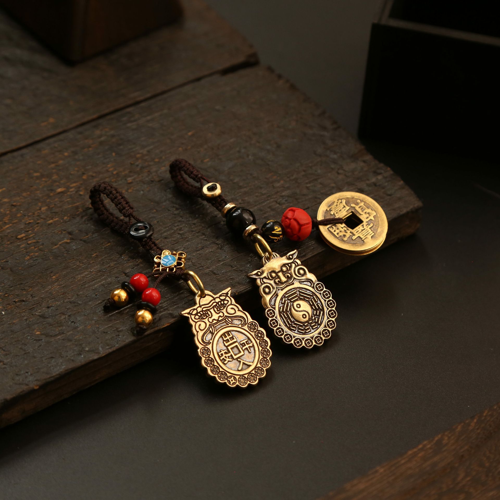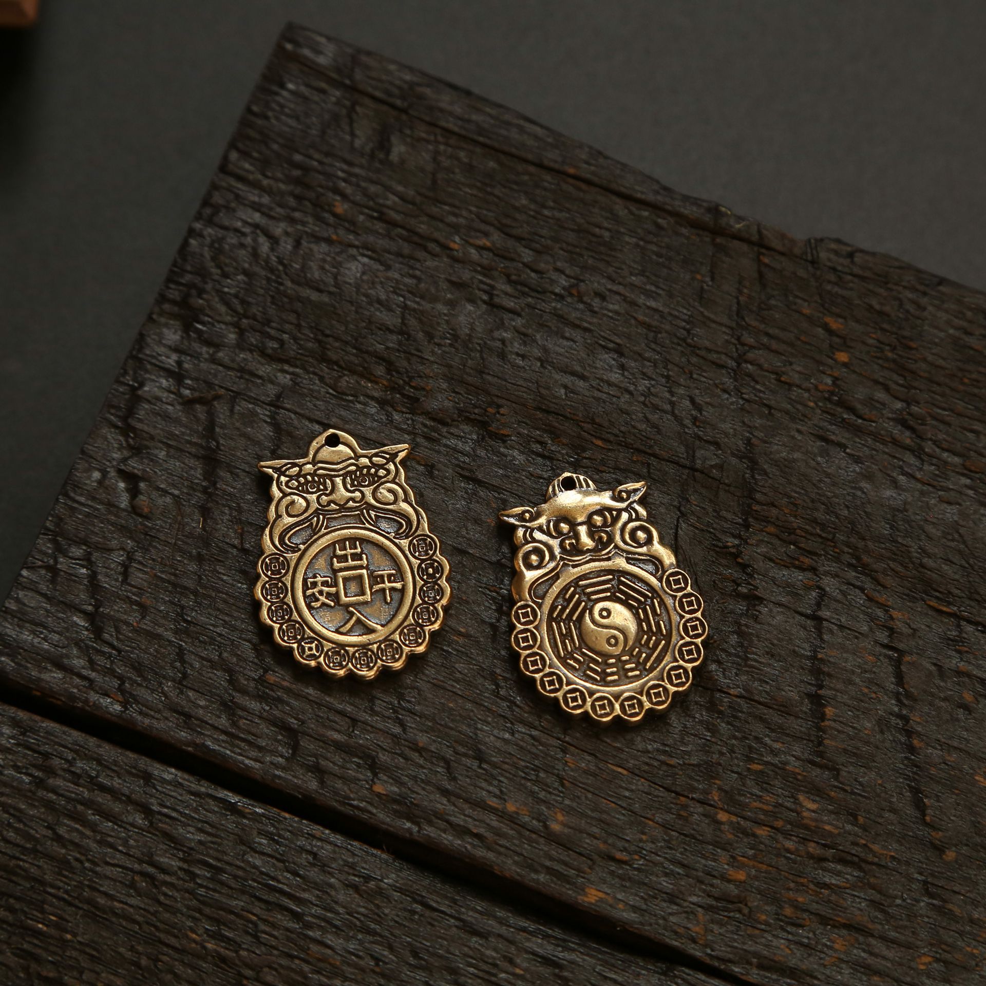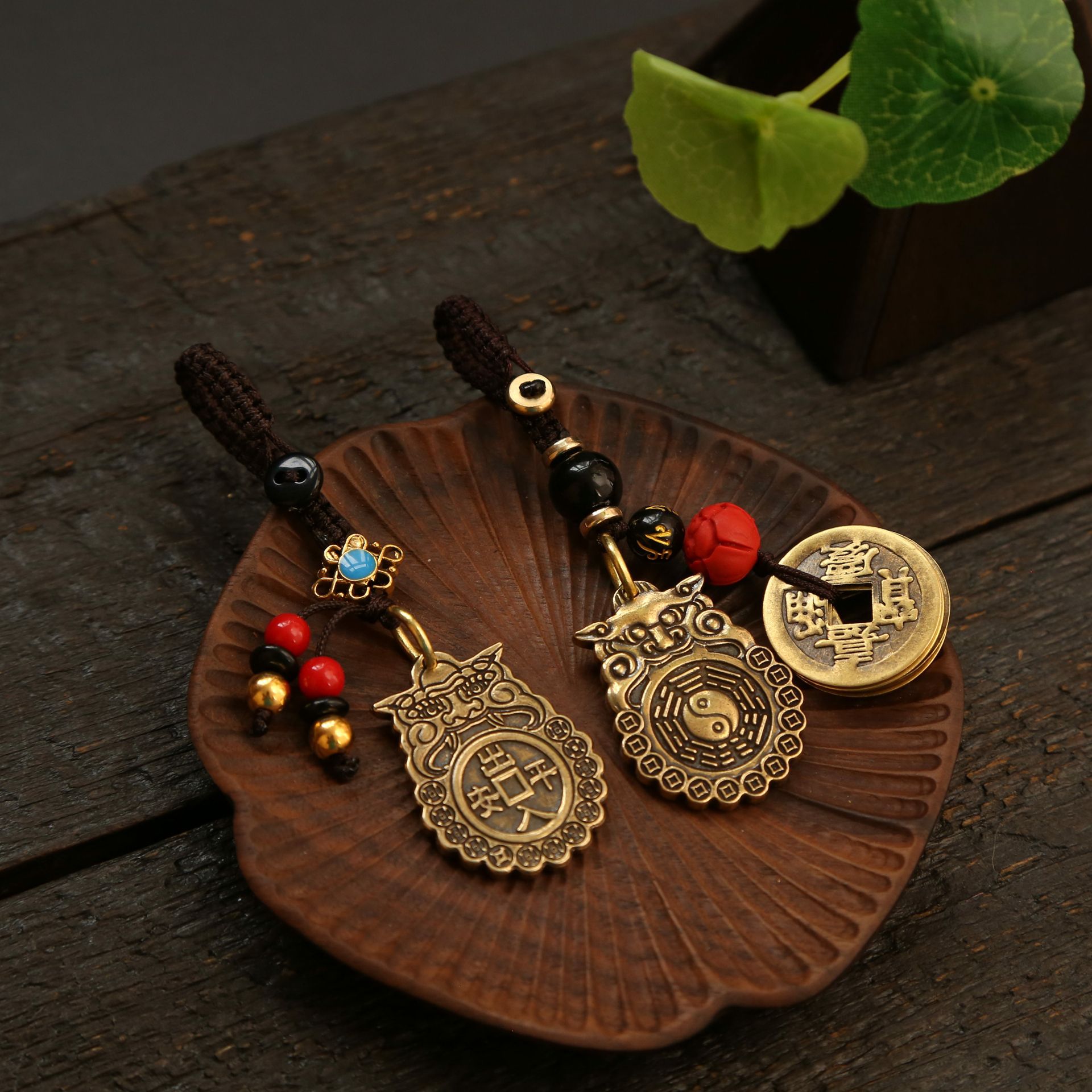 황동 액세스 Ping an Bagua 브랜드 키 체인 펜던트 자동차 키 남성 및 여성용 가방 펜던트 장식품 에스닉 스타일