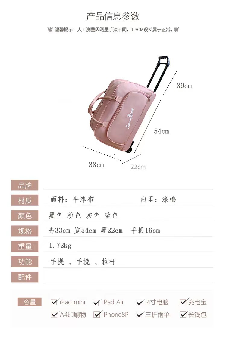 대용량 트롤리 백 단거리 탑승 가방 남성 및 여성용 여행 접이식 보관 가방 바퀴 트롤리 소프트 핸드백