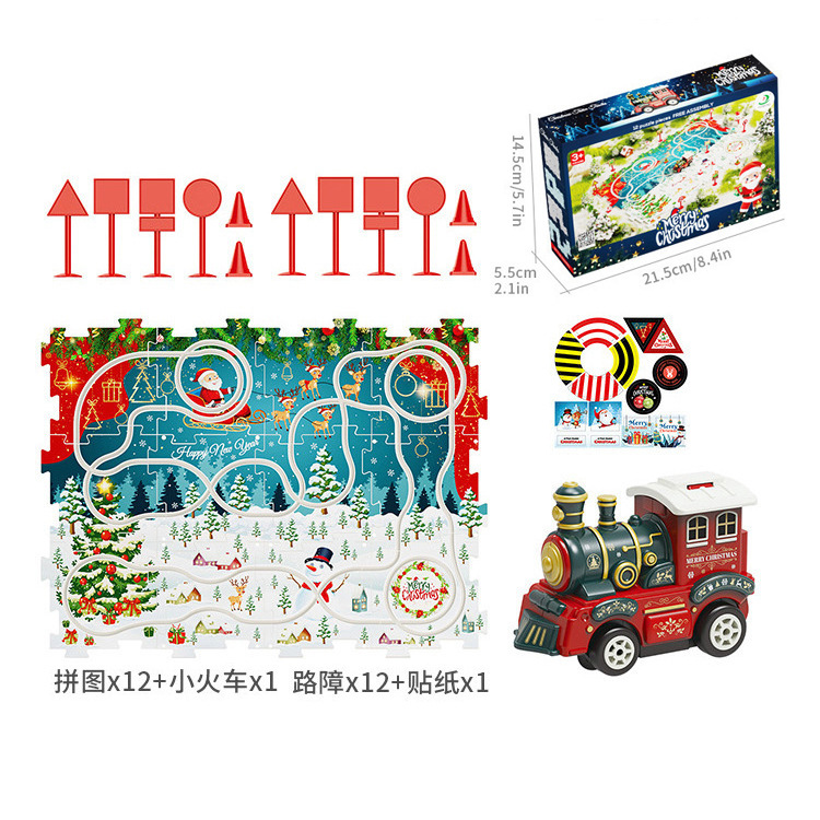 • 13PCS 크리스마스 세트 + 6조각 퍼즐 + 기차 1대 + 도로 표지판 6개 (AAA 건전지 * 1개 미포함) MT921878