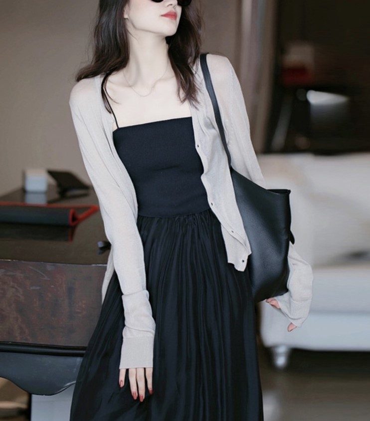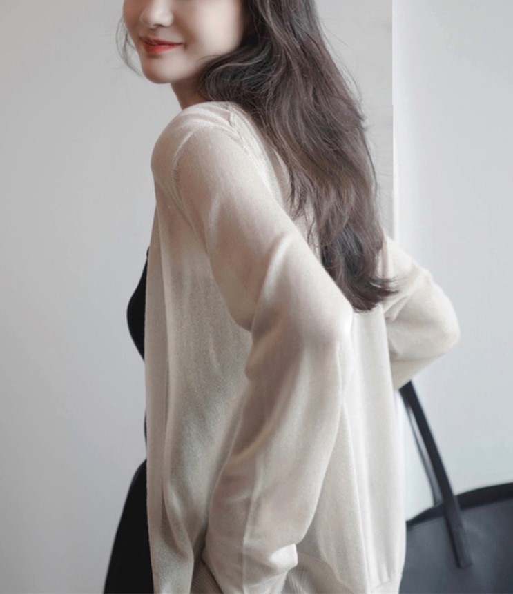 MZOMXL 외부 배치 스커트 선 스크린 카디건 여성용 여름 느슨한 얇은 숄 긴 소매 아이스 실크 니트 블라우스 탑