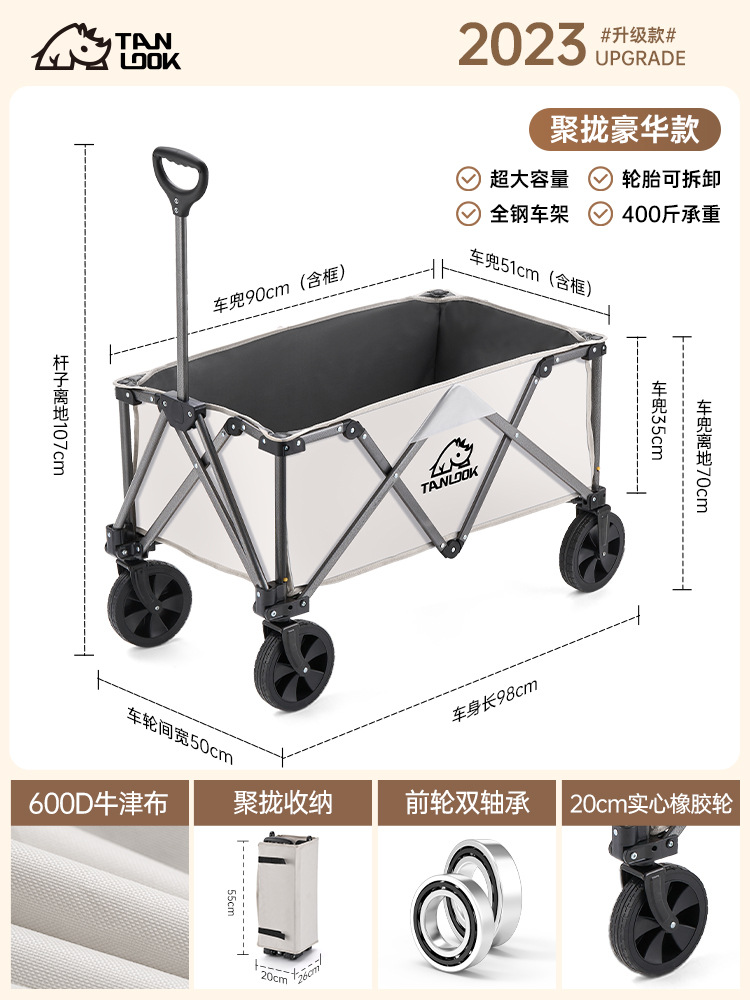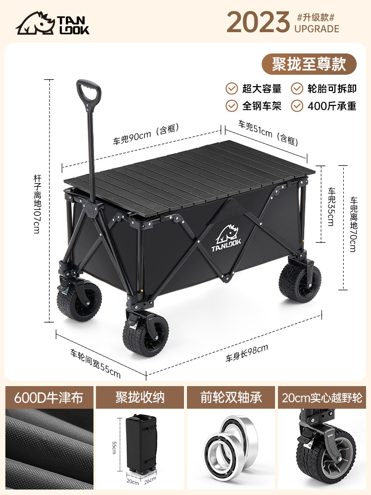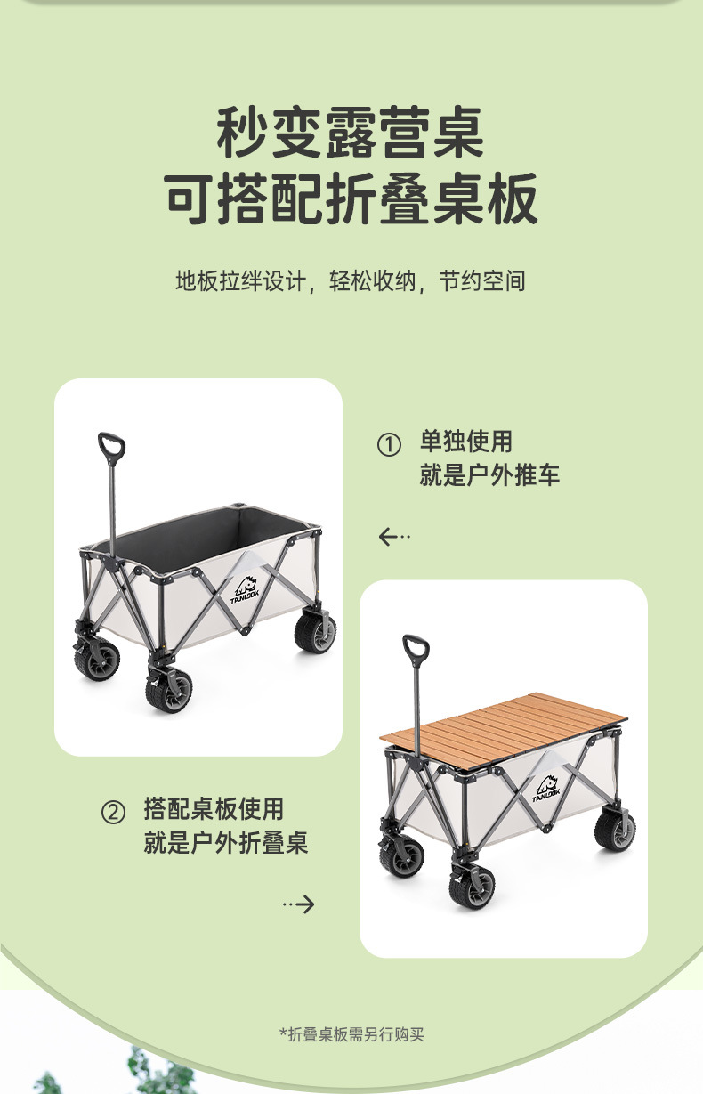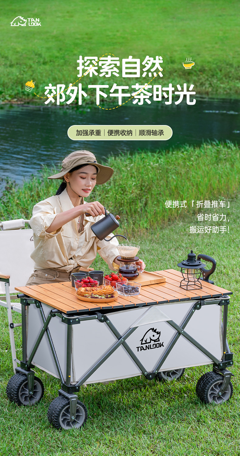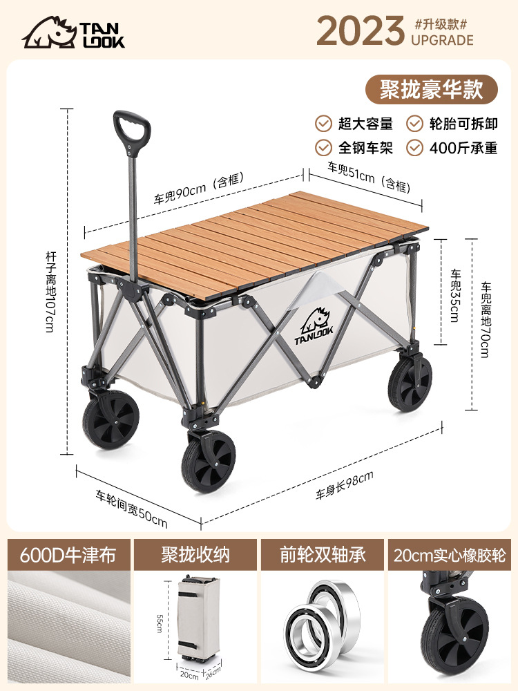 TANLU 푸시 캠핑 카트 접이식 야외 핸드 푸시 피크닉 카트 캠프 트레일러 트롤리 트롤리 테이블 보드스토어 가기