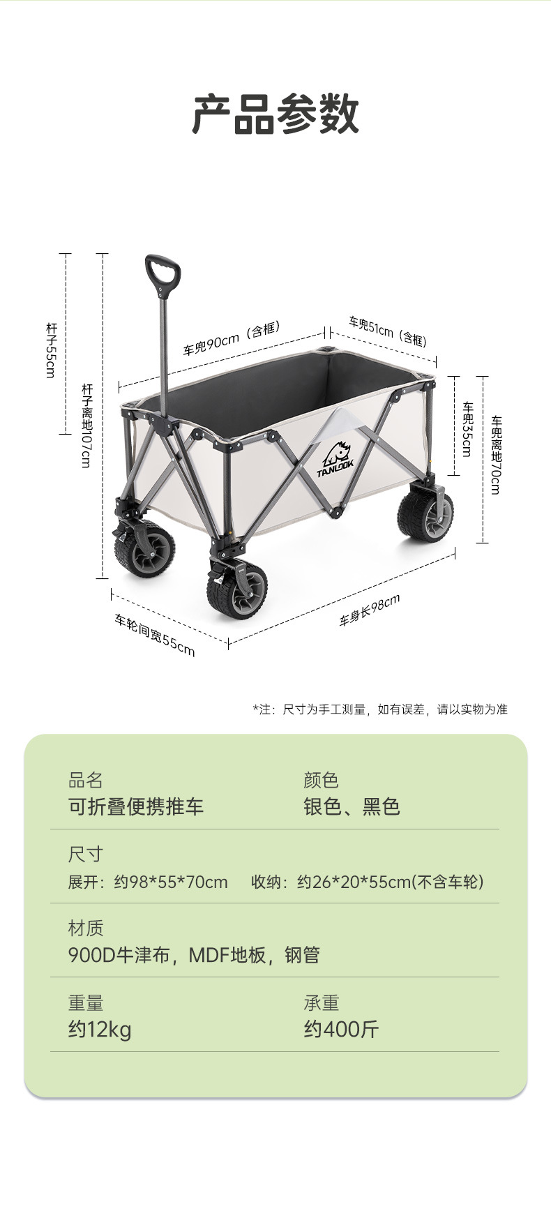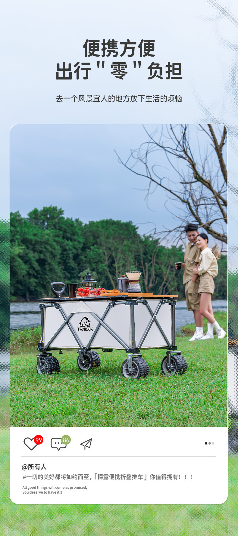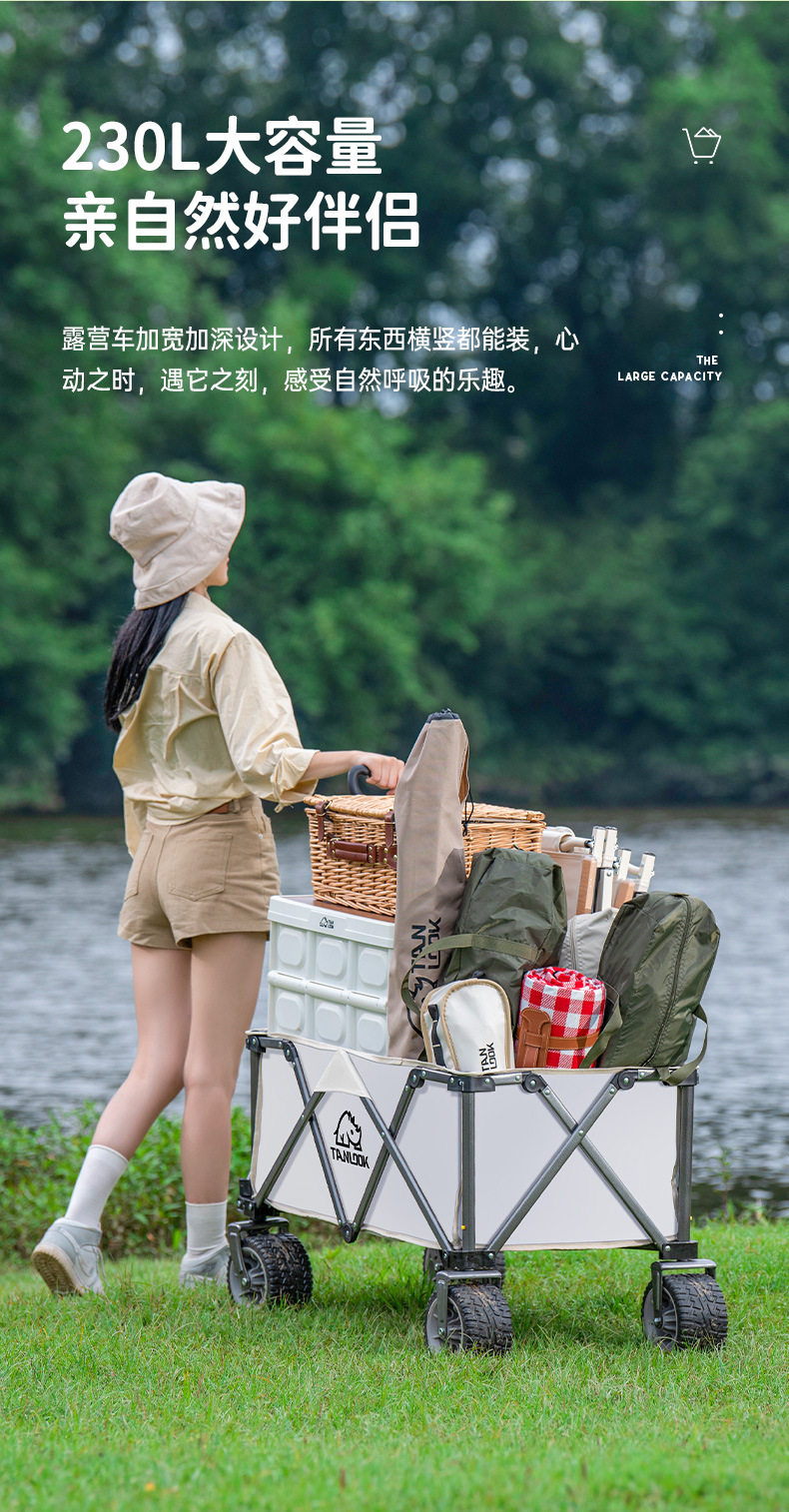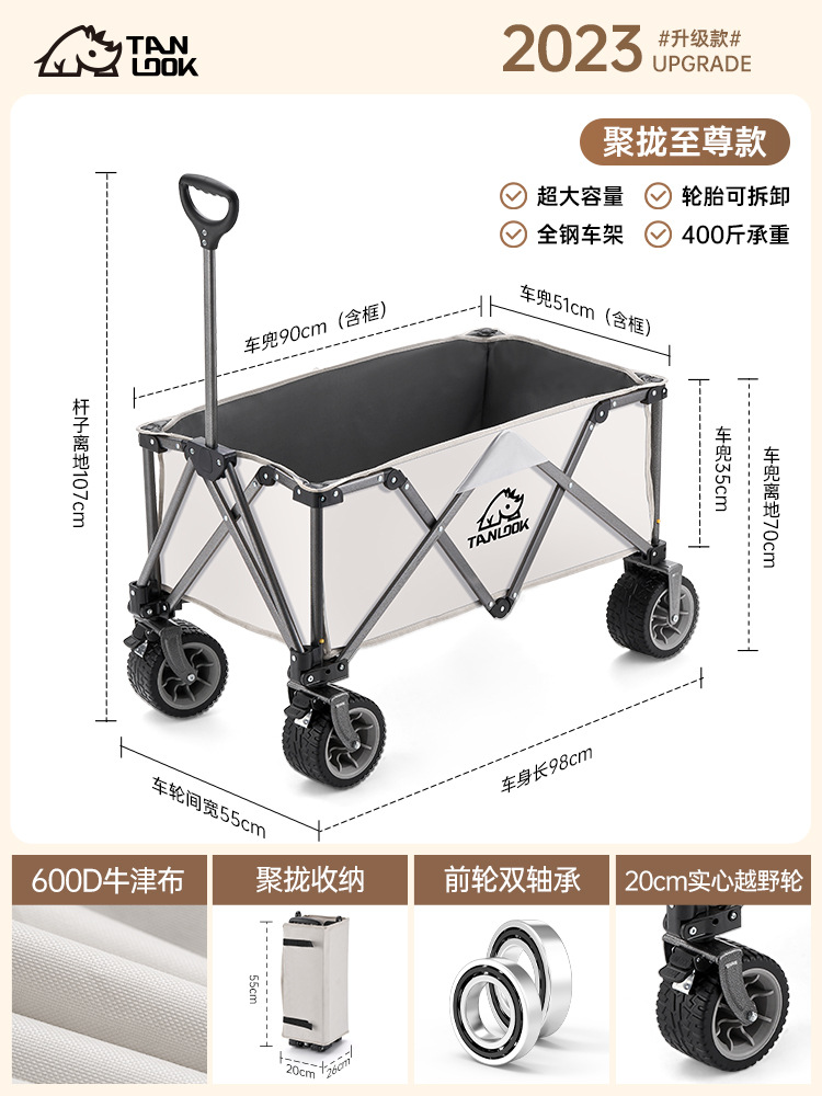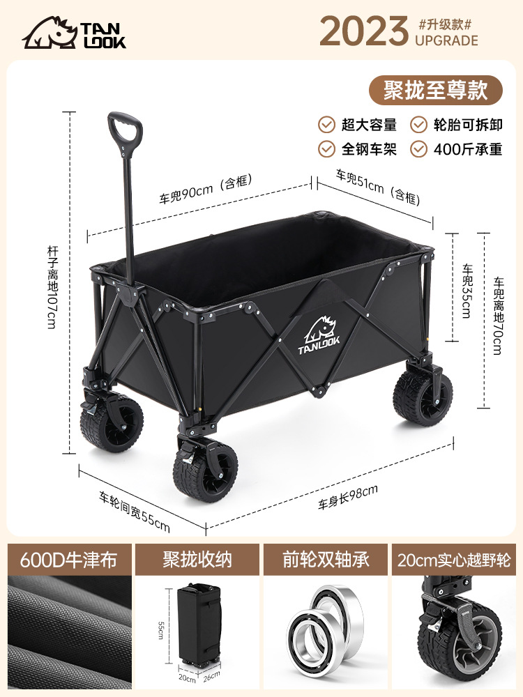 TANLU 푸시 캠핑 카트 접이식 야외 핸드 푸시 피크닉 카트 캠프 트레일러 트롤리 트롤리 테이블 보드스토어 가기