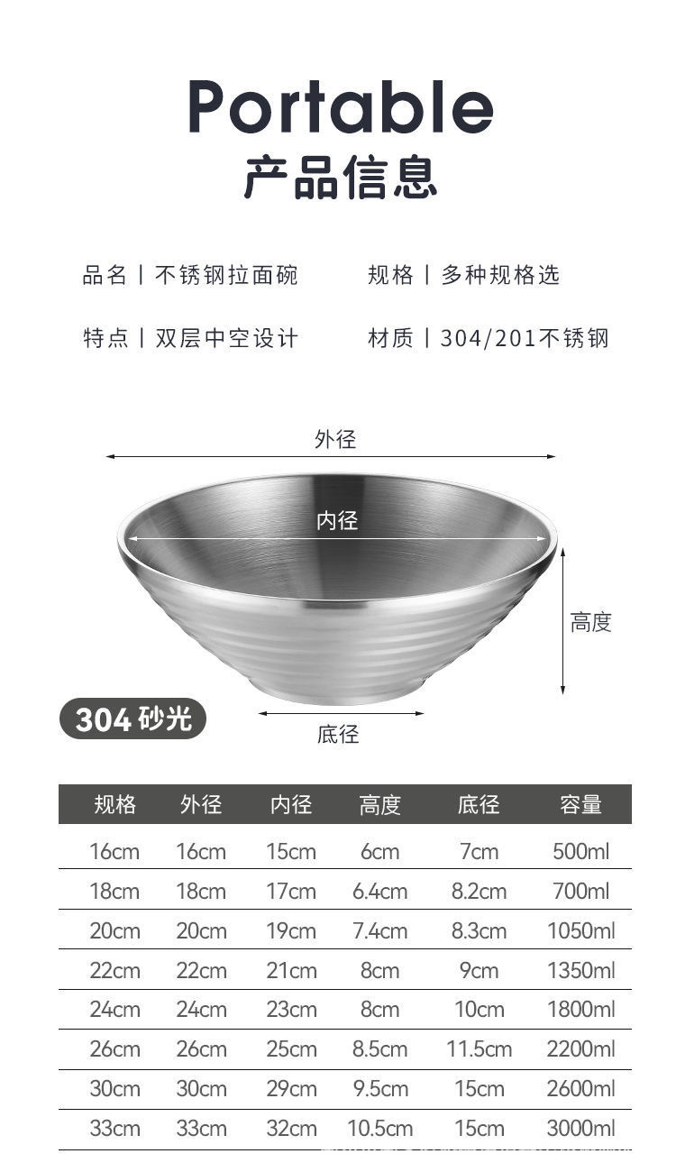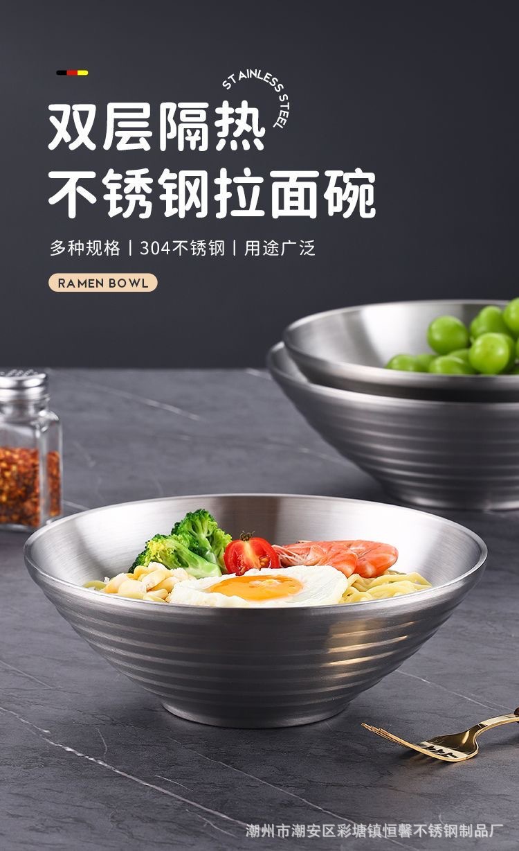 304 스테인레스 스틸 대형 일본식 국수 그릇 나사산 말라탕 그릇 두꺼운 화상 방지 비빔밥 그릇 양동이 그릇 라미안 국수 그릇